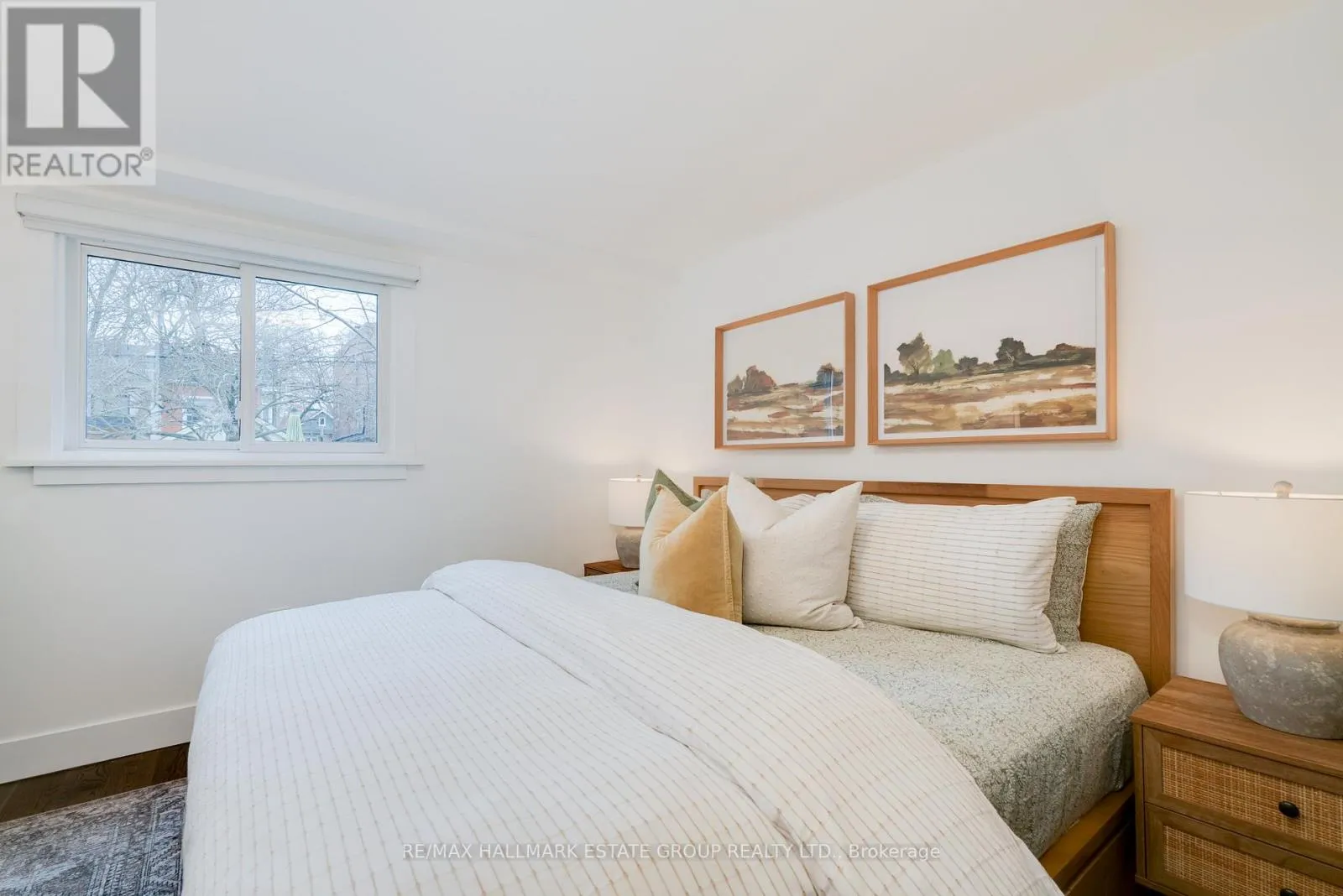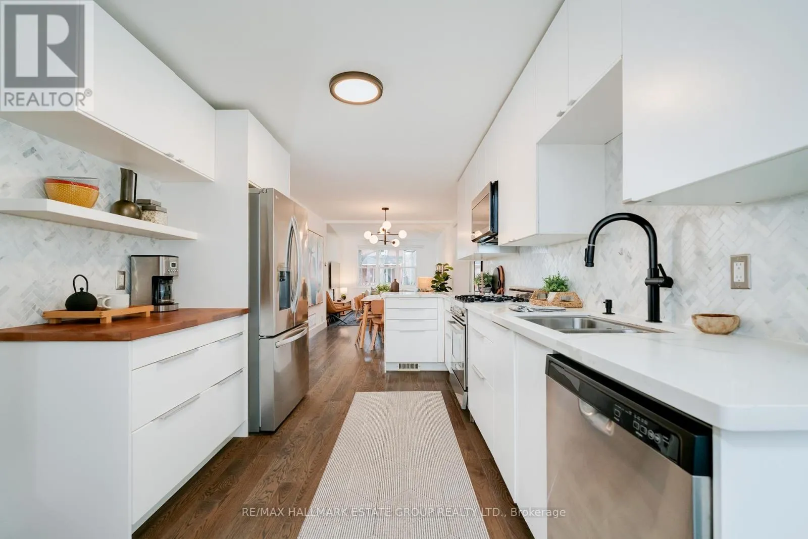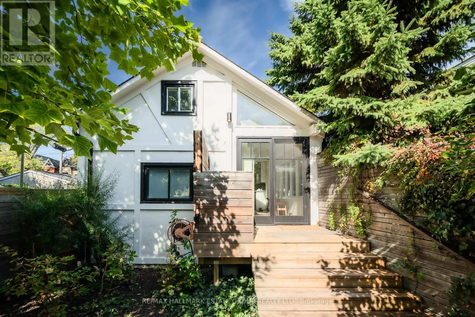 Cross Streets: Gerrard St E & Pape Ave. ** Directions: South of Gerrard St E. This deceptively spacious and beautifully renovated 3-bedroom bungaloft offers far more than meets the eye, featuring a glorious 2-bedroom in-law suite, a dream-worthy double-car garage, and a magnificent L-shaped lot that widens to 44 feet, with exciting laneway potential (see report). A practical separate foyer with an entrance closet and built-in desk leads into a fantastic open-concept living, dining, and kitchen area, all finished with hardwood floors. The living room easily accommodates a 10-foot sectional and a big-screen TV, while the chef's kitchen impresses with modern flat-front cabinetry, Caesarstone counters, a breakfast bar, a herringbone backsplash, and a gas range. A stunning sunroom addition-with vaulted ceilings, warm slate floors, a skylight, a wall of windows, double closets and a sliding door-overlooks the fully fenced, south-facing, landscaped backyard, creating the perfect spot for a home office, mudroom, or extra pantry space. The king-size primary bedroom includes a double closet, and the charming loft-style second bedroom offers a large walk-in closet. The renovated, spa-inspired main bathroom & laundry area completes the upper level with style. The bright, finished basement features high ceilings, blonde laminate floors, a separate entrance, a second laundry set, a renovated bathroom, and incredible flexibility: use it as a 2-bedroom nanny suite, or an expansive rec room, or a combination of living, working, and entertaining spaces, complete with a great bar area. With its rare double-car garage, generous lot, with an option for extra parking by way of the gate at the side of the yard, this exceptional detached home sits in the heart of beloved Leslieville and truly stands out as a remarkable opportunity. (id:27476)