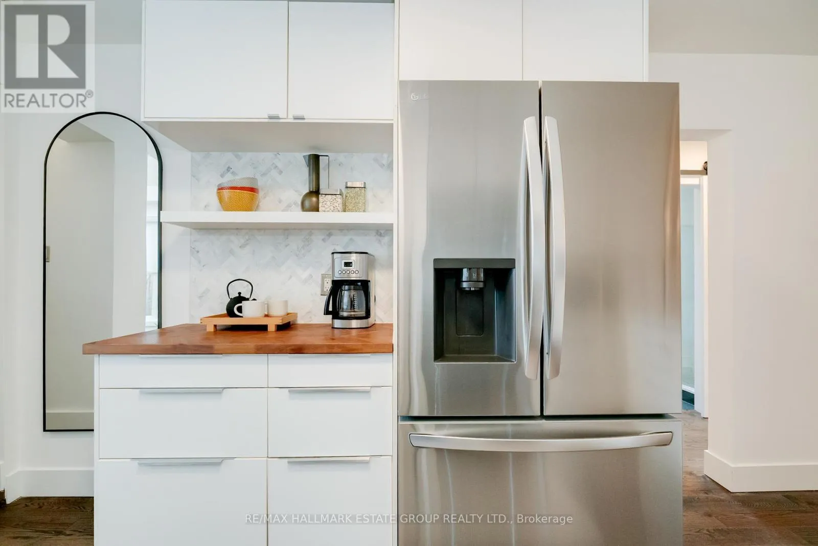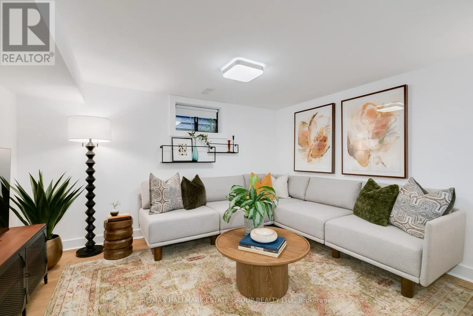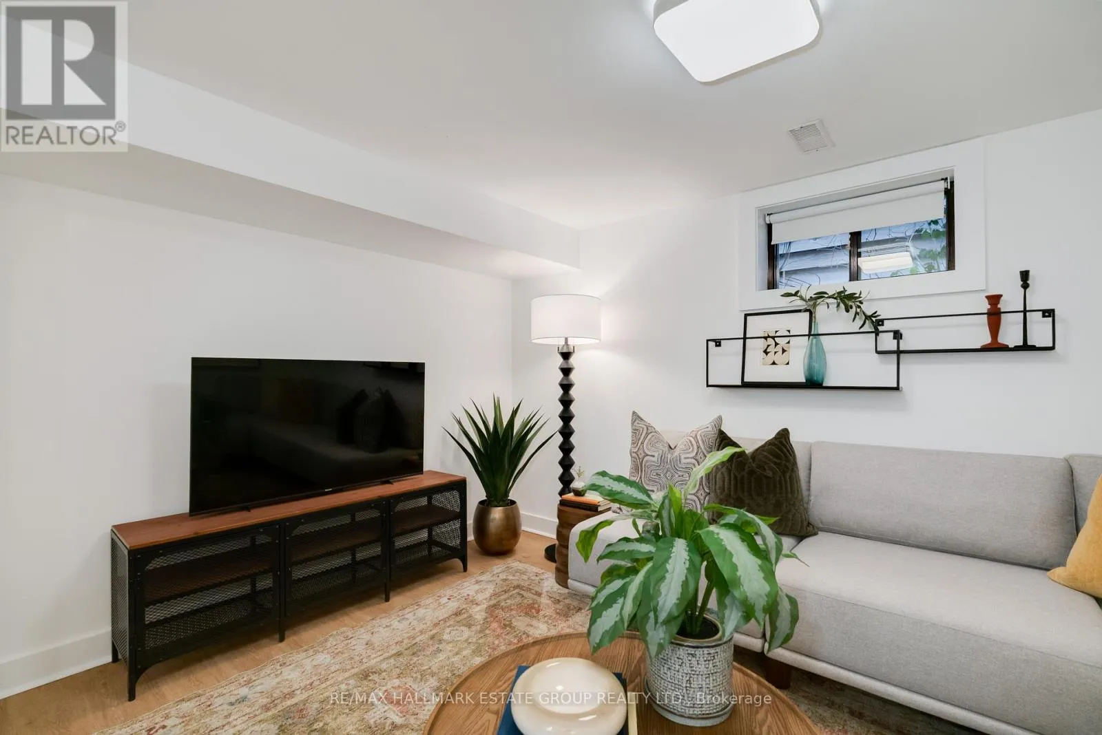 Cross Streets: Gerrard St E & Pape Ave. ** Directions: South of Gerrard St E. This deceptively spacious and beautifully renovated 3-bedroom bungaloft offers far more than meets the eye, featuring a glorious 2-bedroom in-law suite, a dream-worthy double-car garage, and a magnificent L-shaped lot that widens to 44 feet, with exciting laneway potential (see report). A practical separate foyer with an entrance closet and built-in desk leads into a fantastic open-concept living, dining, and kitchen area, all finished with hardwood floors. The living room easily accommodates a 10-foot sectional and a big-screen TV, while the chef's kitchen impresses with modern flat-front cabinetry, Caesarstone counters, a breakfast bar, a herringbone backsplash, and a gas range. A stunning sunroom addition-with vaulted ceilings, warm slate floors, a skylight, a wall of windows, double closets and a sliding door-overlooks the fully fenced, south-facing, landscaped backyard, creating the perfect spot for a home office, mudroom, or extra pantry space. The king-size primary bedroom includes a double closet, and the charming loft-style second bedroom offers a large walk-in closet. The renovated, spa-inspired main bathroom & laundry area completes the upper level with style. The bright, finished basement features high ceilings, blonde laminate floors, a separate entrance, a second laundry set, a renovated bathroom, and incredible flexibility: use it as a 2-bedroom nanny suite, or an expansive rec room, or a combination of living, working, and entertaining spaces, complete with a great bar area. With its rare double-car garage, generous lot, with an option for extra parking by way of the gate at the side of the yard, this exceptional detached home sits in the heart of beloved Leslieville and truly stands out as a remarkable opportunity. (id:27476)