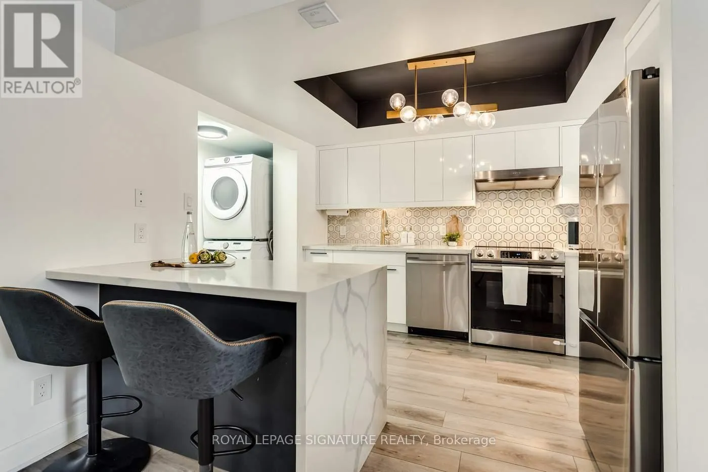 Avenue Rd & Wilson Ave The best of both worlds. The benefits of condo living as well as your own PRIVATE outdoor space. 271 Ridley Blvd #108 is special inside and out. Fully renovated from top to bottom, spacious and bright with almost 900 sf of living space and a 217sf private terrace. The kitchen is absolutely stunning with custom cabinets, quartz countertops, marble backsplash and huge waterfall peninsula with breakfast bar. Great for seating, serving and meal prep. The spacious living and dining room feature large bright windows and patio door with a walkout to your over oversized private terrace. Enjoy the terrace for extra seasonal living space great for everyday life, entertaining and easy loading and unloading. The primary bedroom with large double closet is roomy with a modern accent wall and overlooks the terrace. Quality Tridel built and perfectly located in one of Toronto's most sought-after neighbourhoods. Residents enjoy excellent building amenities and stress-free living with all-inclusive maintenance fees. Enjoy an ensuite locker, one underground parking, the luxury of never waiting for an elevator and shopping on upscale Avenue Road where you will find fabulous eateries, boutiques and grocery stores. The highly convenient location is minutes to Hwy 401 and a short drive to Yorkdale Mall. This suite is one of the few with the private terrace and a special opportunity. (id:27476)