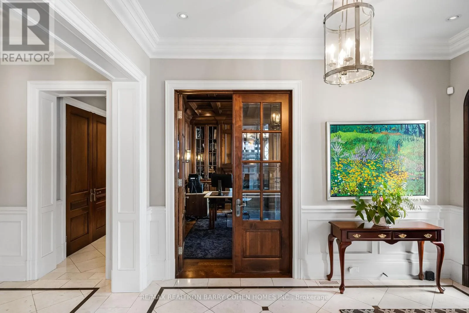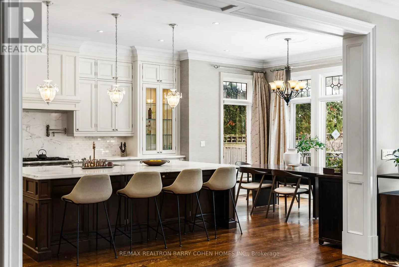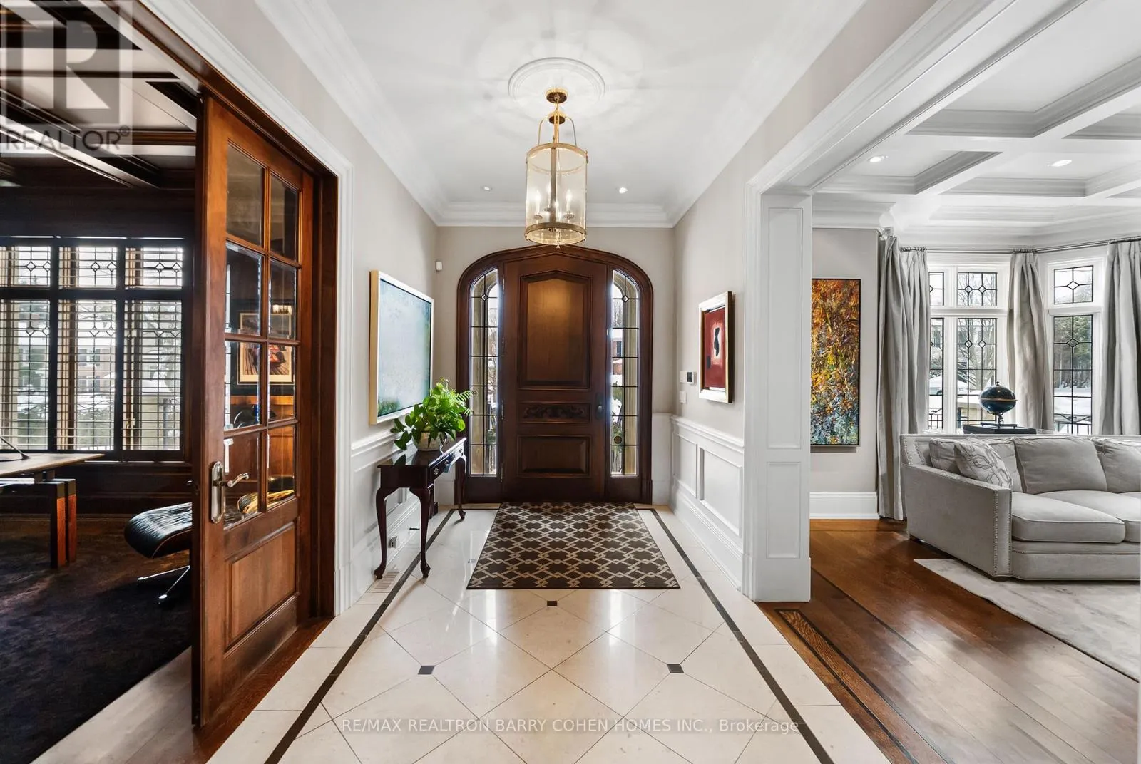 Cross Streets: Bayview Ave/Lawrence Ave E. ** Directions: West of Bayview. A rare offering in prestigious Lawrence Park, this exceptional residence showcases unparalleled craftsmanship, architectural pedigree, and enduring value, offered for the first time since 2012. Designed by renowned architect Lorne Rose, this distinguished Tudor-inspired home sits on a prime 50 x 150 ft lot. Built with superior materials including Indiana limestone, solid brick, cedar shingle roofing, copper detailing, and leaded glass windows, the home reflects a rare level of quality and permanence. A grand hand-crafted stone portico, mahogany entry, and fully heated driveway, steps, and walkways provide both prestige and year-round convenience, complemented by mature landscaping, irrigation, lighting, and integrated security. Inside, refined detailing defines every space, including 10 ft ceilings on the main level, 9 ft ceilings above and below, heated marble floors, custom millwork, coffered ceilings, rich hardwood flooring, copper plumbing, and sound-insulated construction. Principal rooms are elegantly proportioned for both entertaining and family living. The chef's kitchen features premium appliances and bespoke cabinetry, opening to an oversized family room with coffered ceilings, fireplace, and walk-out to a private stone terrace. The upper level offers five full bedrooms, a rare and highly desirable layout, each with soaring 11+ ft ceilings, custom detailing, and spa-inspired ensuites. The primary retreat features vaulted ceilings, marble finishes, steam shower, and private outdoor access. The fully finished lower level with radiant heated floors includes a large recreation room with walk-out, wet bar, wine cellar, guest or nanny suite, and ample storage. Complete with a rare three-car garage, this home offers timeless design and long-term value. Ideally located steps to Toronto's most prestigious private schools, the Granite Club, Bayview Avenue, Highway 401, and surrounding parks. (id:27476)