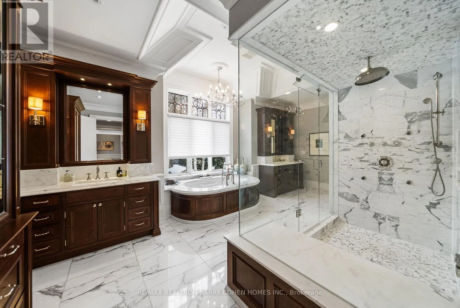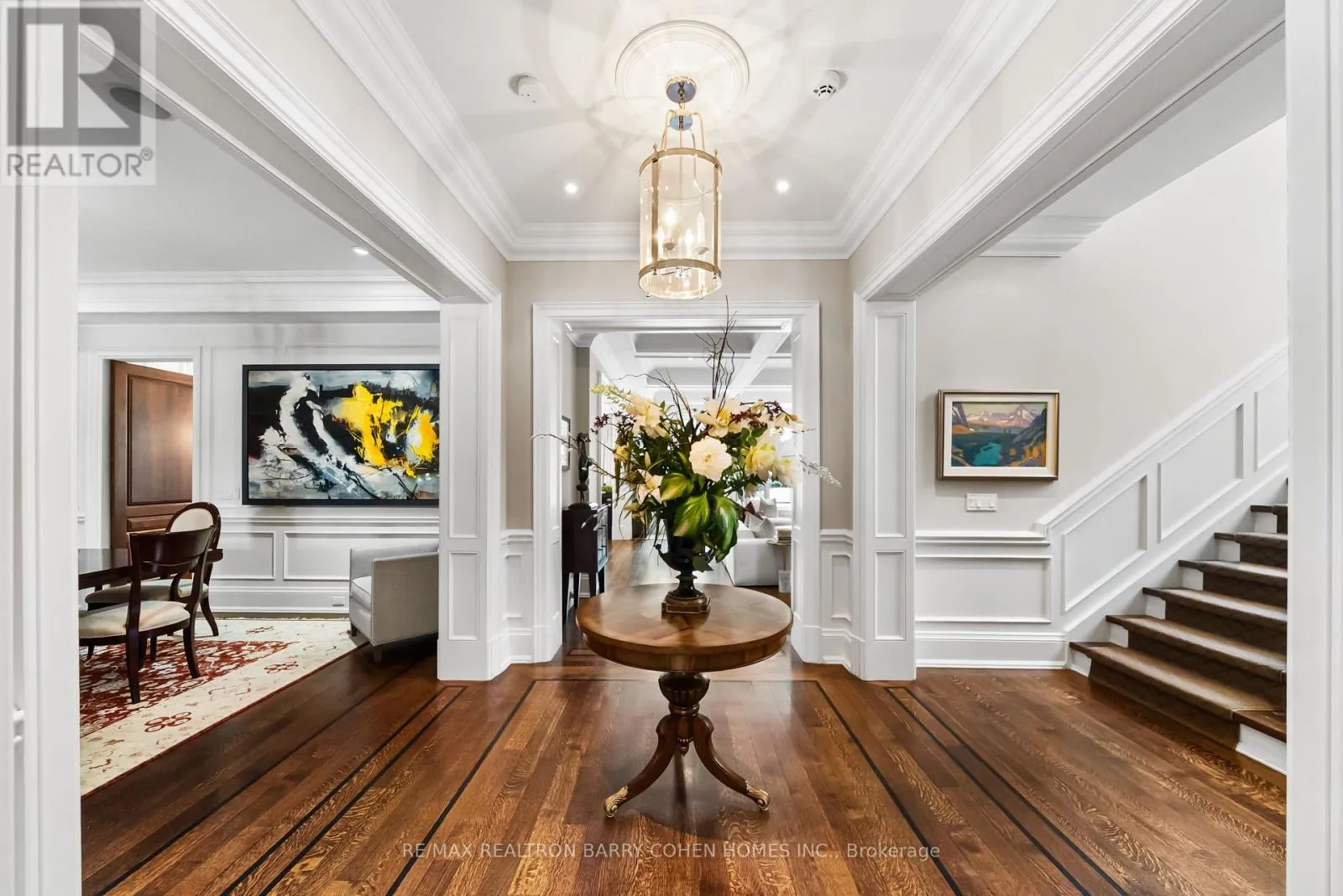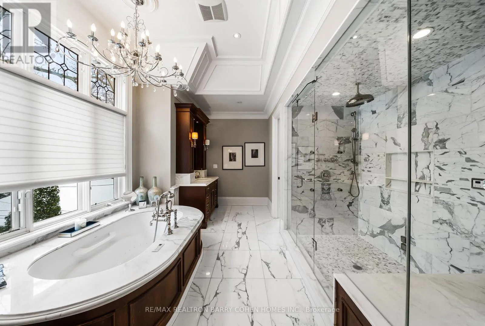 Cross Streets: Bayview Ave/Lawrence Ave E. ** Directions: West of Bayview. A rare offering in prestigious Lawrence Park, this exceptional residence showcases unparalleled craftsmanship, architectural pedigree, and enduring value, offered for the first time since 2012. Designed by renowned architect Lorne Rose, this distinguished Tudor-inspired home sits on a prime 50 x 150 ft lot. Built with superior materials including Indiana limestone, solid brick, cedar shingle roofing, copper detailing, and leaded glass windows, the home reflects a rare level of quality and permanence. A grand hand-crafted stone portico, mahogany entry, and fully heated driveway, steps, and walkways provide both prestige and year-round convenience, complemented by mature landscaping, irrigation, lighting, and integrated security. Inside, refined detailing defines every space, including 10 ft ceilings on the main level, 9 ft ceilings above and below, heated marble floors, custom millwork, coffered ceilings, rich hardwood flooring, copper plumbing, and sound-insulated construction. Principal rooms are elegantly proportioned for both entertaining and family living. The chef's kitchen features premium appliances and bespoke cabinetry, opening to an oversized family room with coffered ceilings, fireplace, and walk-out to a private stone terrace. The upper level offers five full bedrooms, a rare and highly desirable layout, each with soaring 11+ ft ceilings, custom detailing, and spa-inspired ensuites. The primary retreat features vaulted ceilings, marble finishes, steam shower, and private outdoor access. The fully finished lower level with radiant heated floors includes a large recreation room with walk-out, wet bar, wine cellar, guest or nanny suite, and ample storage. Complete with a rare three-car garage, this home offers timeless design and long-term value. Ideally located steps to Toronto's most prestigious private schools, the Granite Club, Bayview Avenue, Highway 401, and surrounding parks. (id:27476)