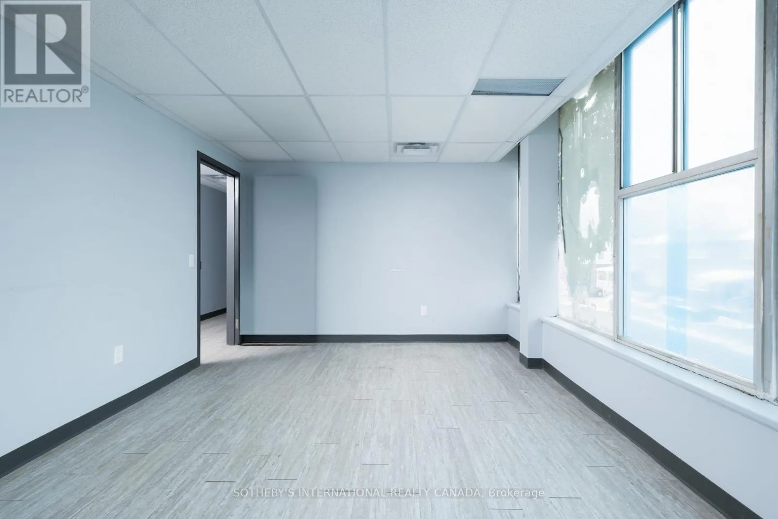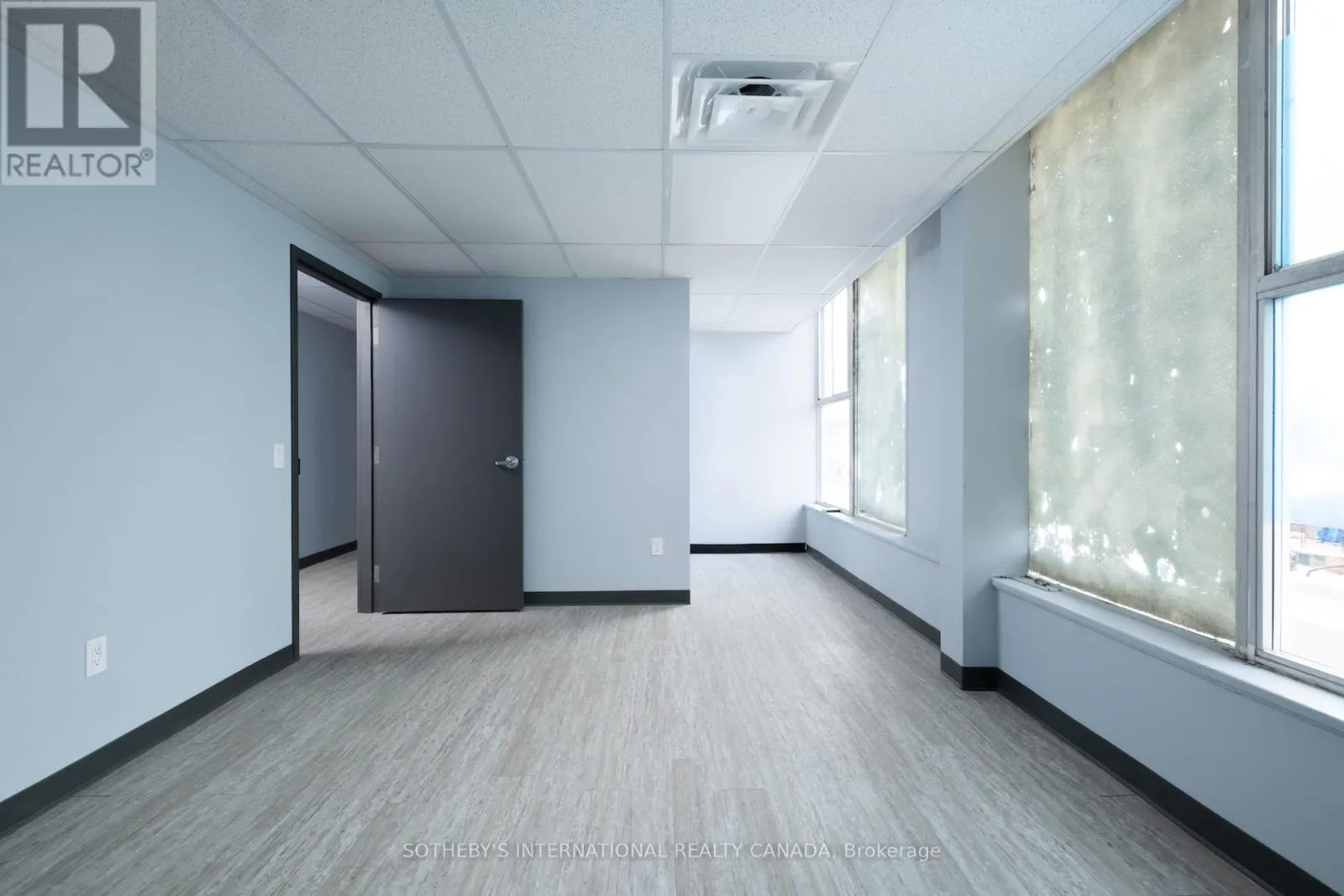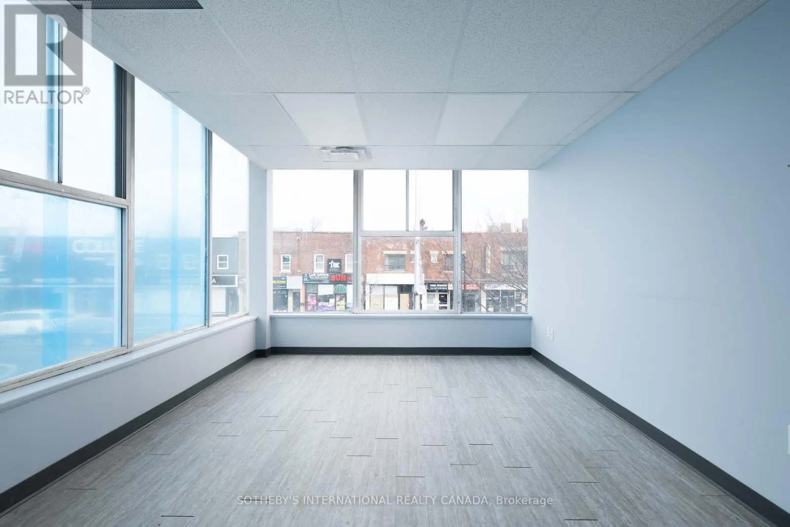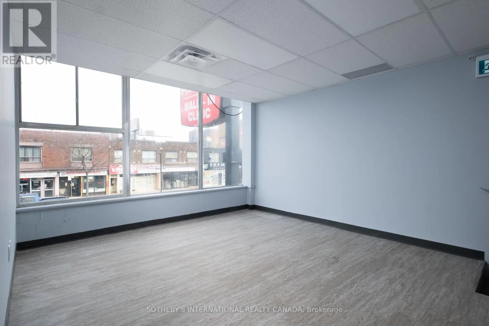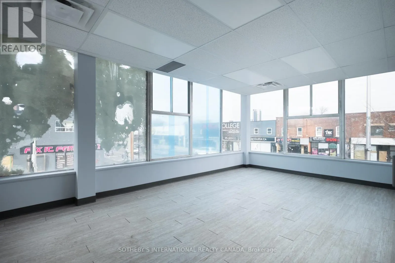 Danforth + Victoria Park Located at a corner intersection along the Danforth corridor, this second floor office suite offers strong street presence and visibility within a well established health and medical building. Positioned above a pharmacy, walk-in clinic, and physiotherapy practice, the space benefits from immediate alignment and built-in synergy, and is well-suited to medical, wellness, and service-based professional uses. Perimeter windows wrap the front and corner facades, bringing consistent natural light into an elevated working environment. The interior is clean and contemporary, with a layout organized into two distinct zones. The north exposure is anchored by an open reception or waiting area alongside a large private office, while the west exposure offers three additional private offices and two private washrooms. The configuration supports a clear separation between client facing and operational areas, adaptable to a range of treatment or consultation based practices. Set within a stretch of the Danforth experiencing continued revitalization and growth, the building is anchored by nearby Shoppers World Danforth and supported by a mix of residential density and established commercial businesses. Convenient access to the multiple TTC transit routes and ample street parking enhance accessibility and convenience. (id:27476)