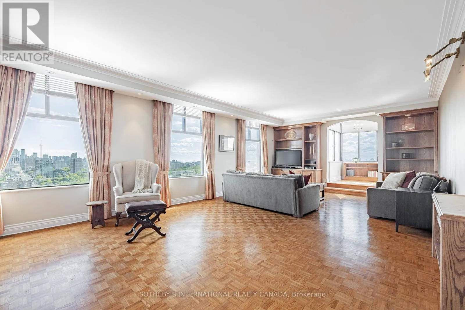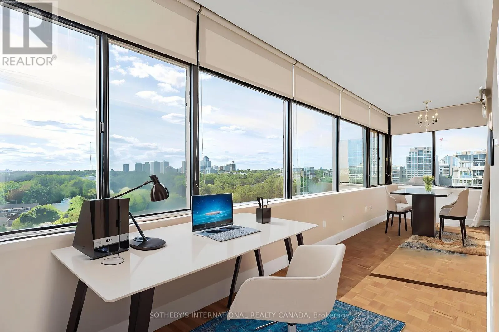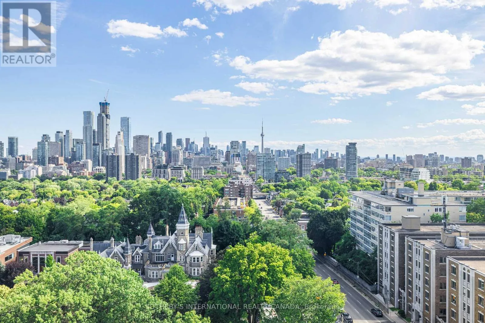 Cross Streets: Avenue Rd/St. Clair. ** Directions: Use GPS. Spectacular 360 city views at Yonge, Avenue & St. Clair. A rare full-floor residence in one of Toronto's most established and desirable neighbourhoods. Direct elevator access opens into approximately 1,823 square feet of refined living space, wrapped in unobstructed panoramic skyline views from every angle.Designed for both comfort and impact, the suite offers 2 generous bedrooms, 2.5 baths, and a flexible den or sunroom ideal for a home office, library, or quiet retreat. The enclosed sunroom delivers a truly serene experience, surrounded by sweeping city vistas.The open concept living and dining areas are thoughtfully updated with elegant parquet flooring, custom built-in bookcases, and pot lighting throughout. A renovated kitchen features granite counters, quality appliances, and a functional layout suited to both everyday living and entertaining.The primary suite includes a well-appointed 5-piece ensuite. The second bedroom enjoys its own private 3-piece ensuite, offering comfort and privacy for guests or family.One suite per floor ensures an exceptional level of privacy and exclusivity. Additional features include ensuite laundry, one underground parking space, and an out-of-suite locker.An outstanding opportunity just steps to Yonge and St. Clair shops, restaurants, parks, top schools, and the TTC. Luxury living paired with unmatched convenience. Some photos have been virtually staged. (id:27476)