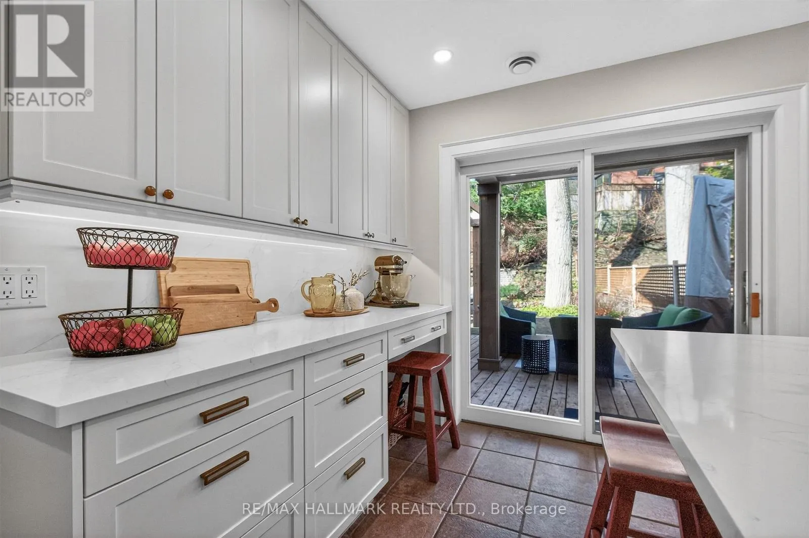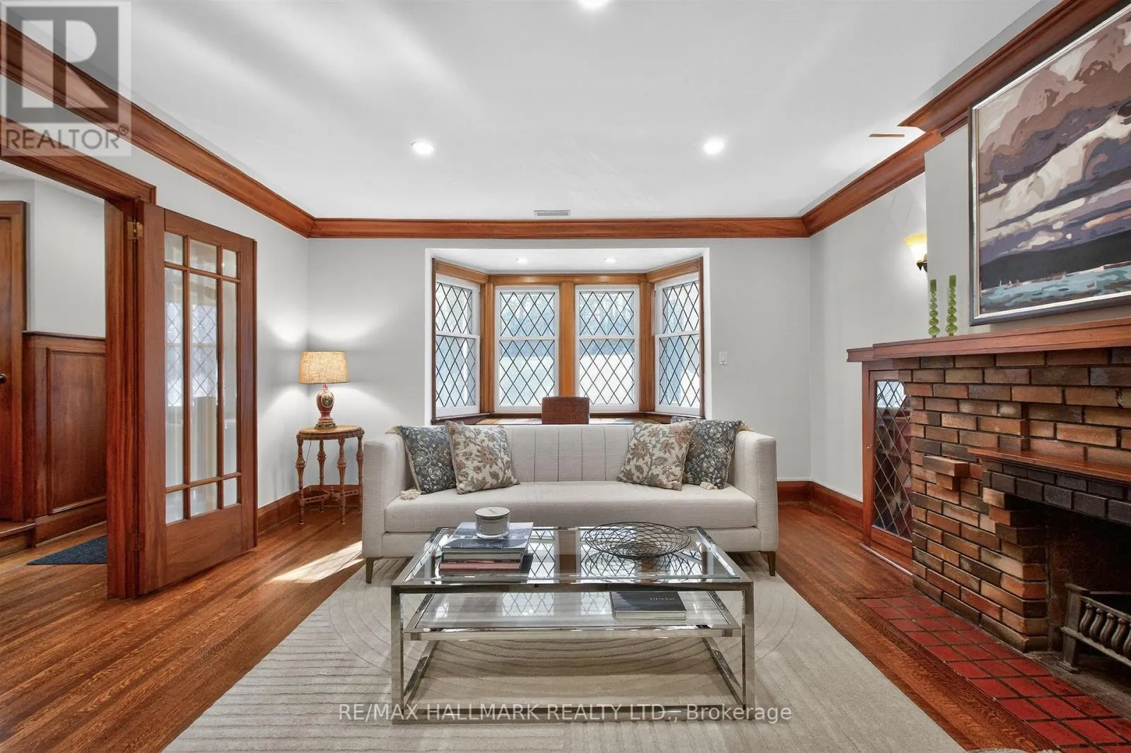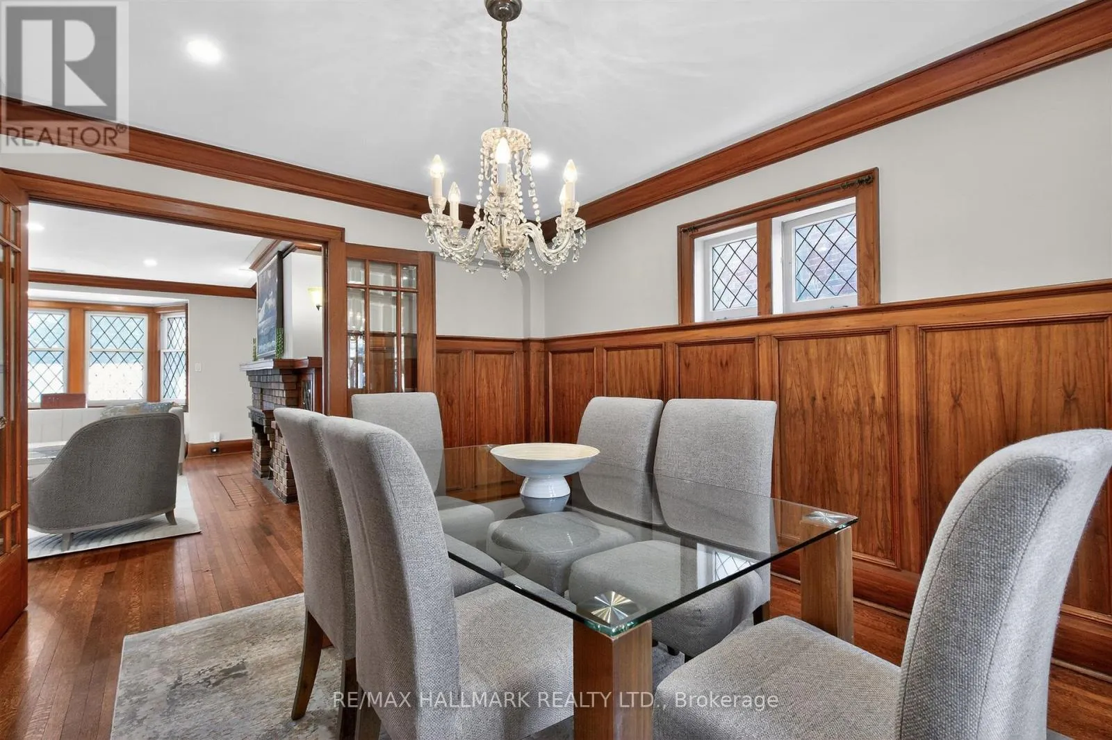 Cross Streets: Glen Manor and Queen/Main. ** Directions: North of Queen St., South of Kingston Rd. It's a feeling that is hard to put into words. That elusive "je ne sais quoi?" You feel it as you watch the morning light gently filter through the tall trees and foliage of Glen Stewart Ravine, sipping your morning coffee on the front porch. Listening to the birdsong as the day begins. The soft, earthy scent of leaves and budding flowers drifts from nature. Your view stretches over lush greens, accented with pops of colour as flowers unfurl delicate blooms. Inside the house: Handcrafted wood panelling, crown mouldings, hardwood floors, a wood-burning fireplace, leaded-glass windows, and French doors all evoke a sense of calm. The cook's kitchen invites everyone around the centre island before opening to the backyard, where the garden curls and meanders as the pond murmurs soothingly, its gentle bubbles blending with the sounds of a happy home. (id:27476)