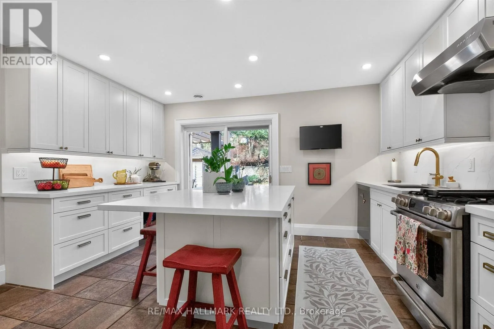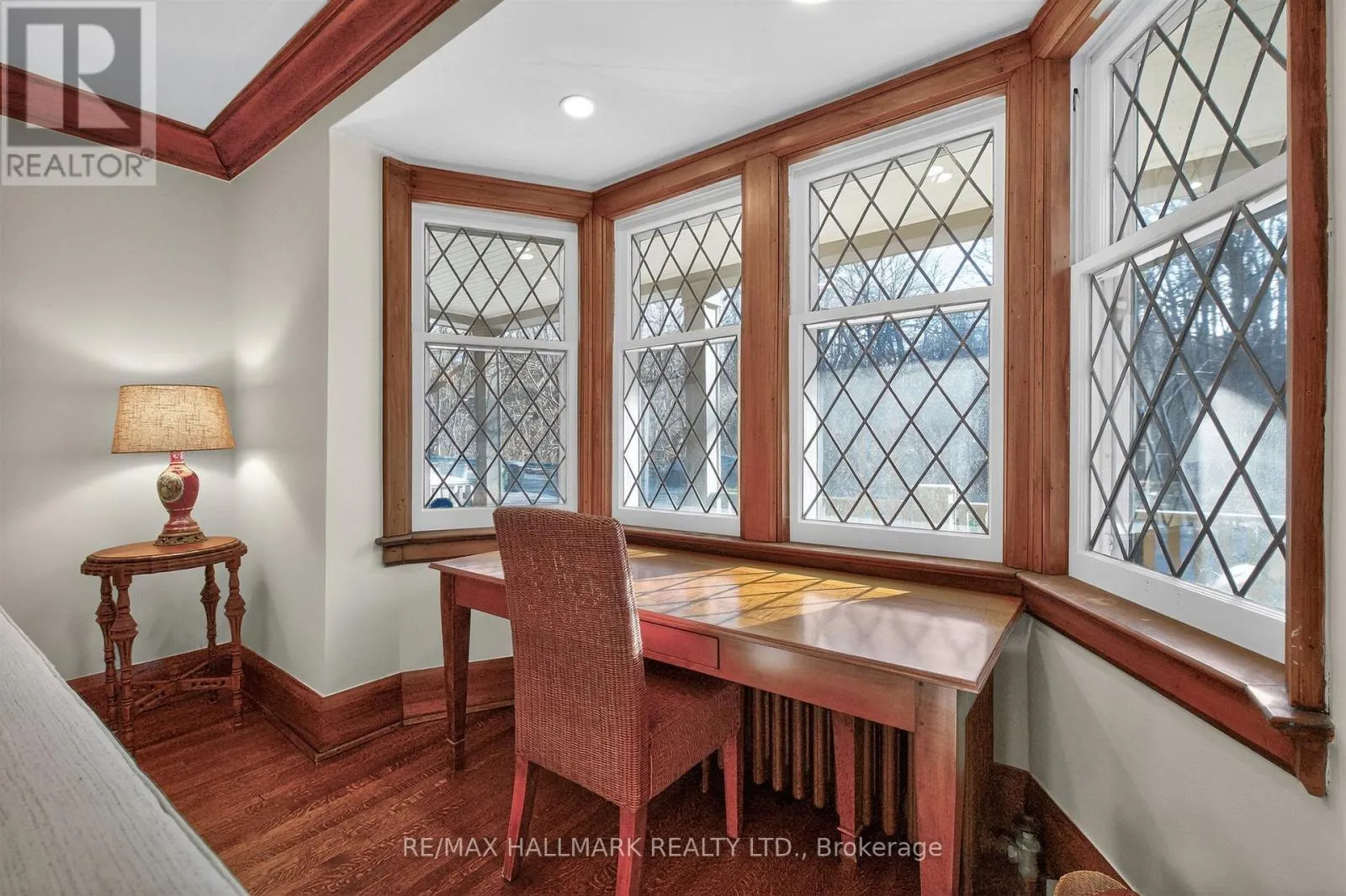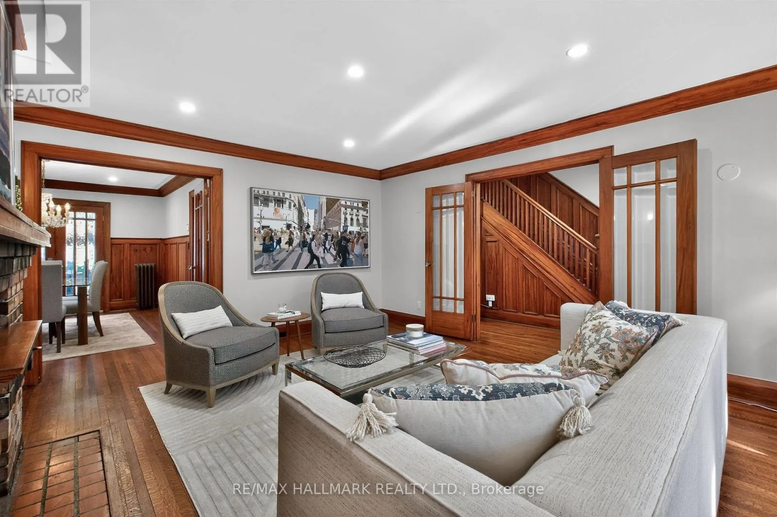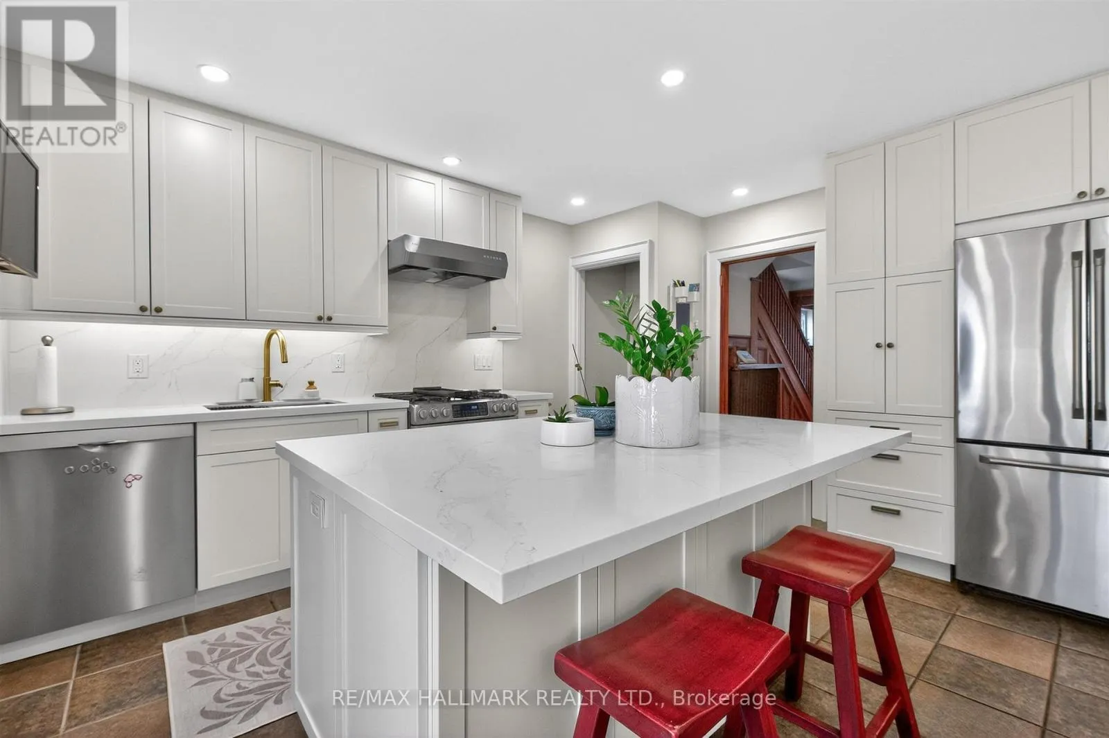 Cross Streets: Glen Manor and Queen/Main. ** Directions: North of Queen St., South of Kingston Rd. It's a feeling that is hard to put into words. That elusive "je ne sais quoi?" You feel it as you watch the morning light gently filter through the tall trees and foliage of Glen Stewart Ravine, sipping your morning coffee on the front porch. Listening to the birdsong as the day begins. The soft, earthy scent of leaves and budding flowers drifts from nature. Your view stretches over lush greens, accented with pops of colour as flowers unfurl delicate blooms. Inside the house: Handcrafted wood panelling, crown mouldings, hardwood floors, a wood-burning fireplace, leaded-glass windows, and French doors all evoke a sense of calm. The cook's kitchen invites everyone around the centre island before opening to the backyard, where the garden curls and meanders as the pond murmurs soothingly, its gentle bubbles blending with the sounds of a happy home. (id:27476)