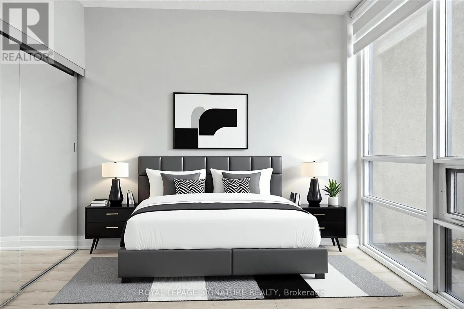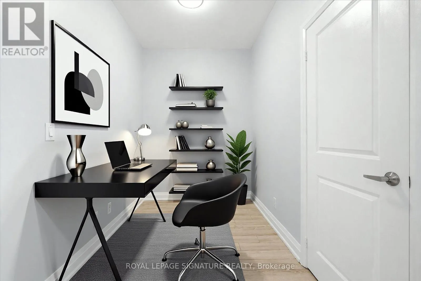 Eva Rd & 427 Welcome to Suite GL5 at 6 Eva Road in the heart of Etobicoke. A bright 1 Bedroom plus Den Unit with an open-concept layout. Spacious living and combined dining area with 9 foot ceilings and direct access to Balcony. The primary bedroom is generously sized with large windows and ample closet space. The separate Den offers a flexible good sized space, perfect for a home office, study, or guest area. The Balcony runs the full width of the unit and with ground floor living has the ability to enter and exit directly from the suite to outside. Included with the unit is one owned Underground Parking Spot and one owned Locker for additional storage. Residents of 6 Eva Road enjoy premium amenities including a state-of-the-art fitness centre, indoor swimming pool, sauna, party room, guest suites, and 24-hour concierge service, ensuring both comfort and security. Sherway Gardens, local grocery stores, cafes, and restaurants are just minutes away. Enjoy outdoor activities and green space at West Mall Park and Centennial Park. Commuters will appreciate the quick access to public transit, Highway 427, the Gardiner Expressway, and Pearson International Airport. Comfort, luxury, location, 6 Eva Rd checks off all of life's wants and needs. Some photos virtually staged. (id:27476)