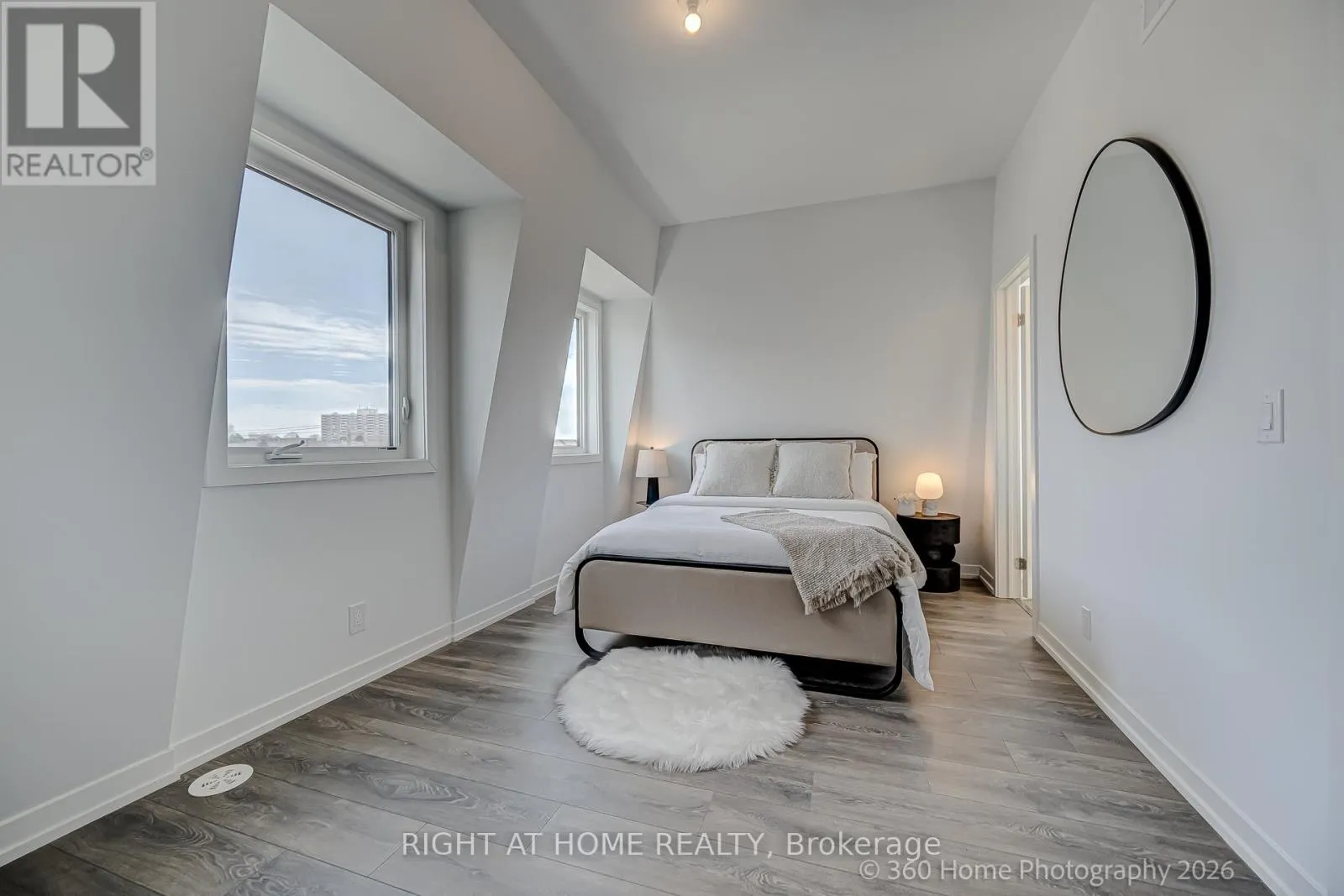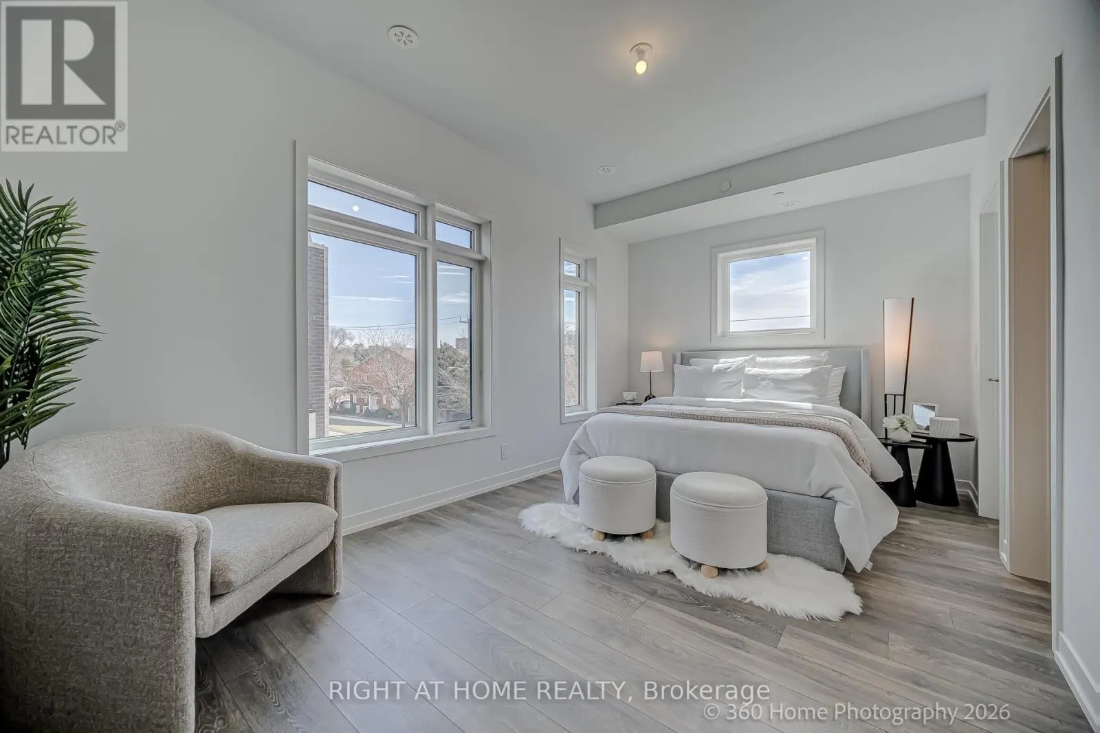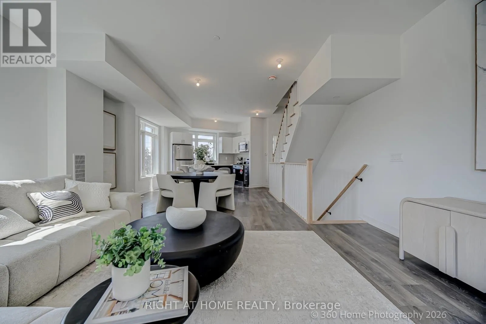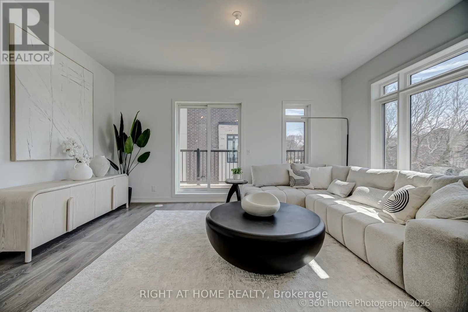 Cross Streets: Eglinton Ave/Victoria Pk. ** Directions: Eglinton Ave E right on Bermonsdey Dr, then left ton Bartley Dr. Welcome to this brand new never lived in house, the only unit in the complex with 2 garages. Absolutely stunning corner luxury townhouse with 2 garages filled with abundant natural light, offering spacious living areas beautifully flooded with sunshine throughout. The thoughtfully designed lower level features a private office, ideal for today's work-from-home lifestyle, while the upper levels provide 4 generally-sized bedrooms perfect for family living and living area ideal for hosting guests. Over 1870 sq. ft. This exceptional home showcases soaring ceilings, high-quality flooring throughout, and a striking oak staircase, creating a refined and sophisticated atmosphere. Enjoy the convenience of a private ground-level garage with direct interior access and additional storage. This home features a gorgeous open-concept modern kitchen with breakfast area, while the spacious living and dining area walks out to a generous balcony, perfect for BBQ, relaxing or hosting gatherings. Two luxurious primary bedrooms, including one with tranquil park views and CN tower views, offer peaceful retreats, while a third bedroom with its own balcony boasts breath taking views. Ideally situated in a prime North York location, just steps to the Eglinton Crosstown LRT Subway Station and within walking distance to hospitals, schools, and parks. Enjoy unmatched convenience with No Frills, Walmart, Eglinton Square Mall, and Costco nearby. The area's appeal is further elevated by exciting Golden Mile developments, including a future joint campus by the University of Toronto and Centennial College, making this a vibrant and highly desirable neighbourhood. BBQs Allowed, Visitor Parking (id:27476)