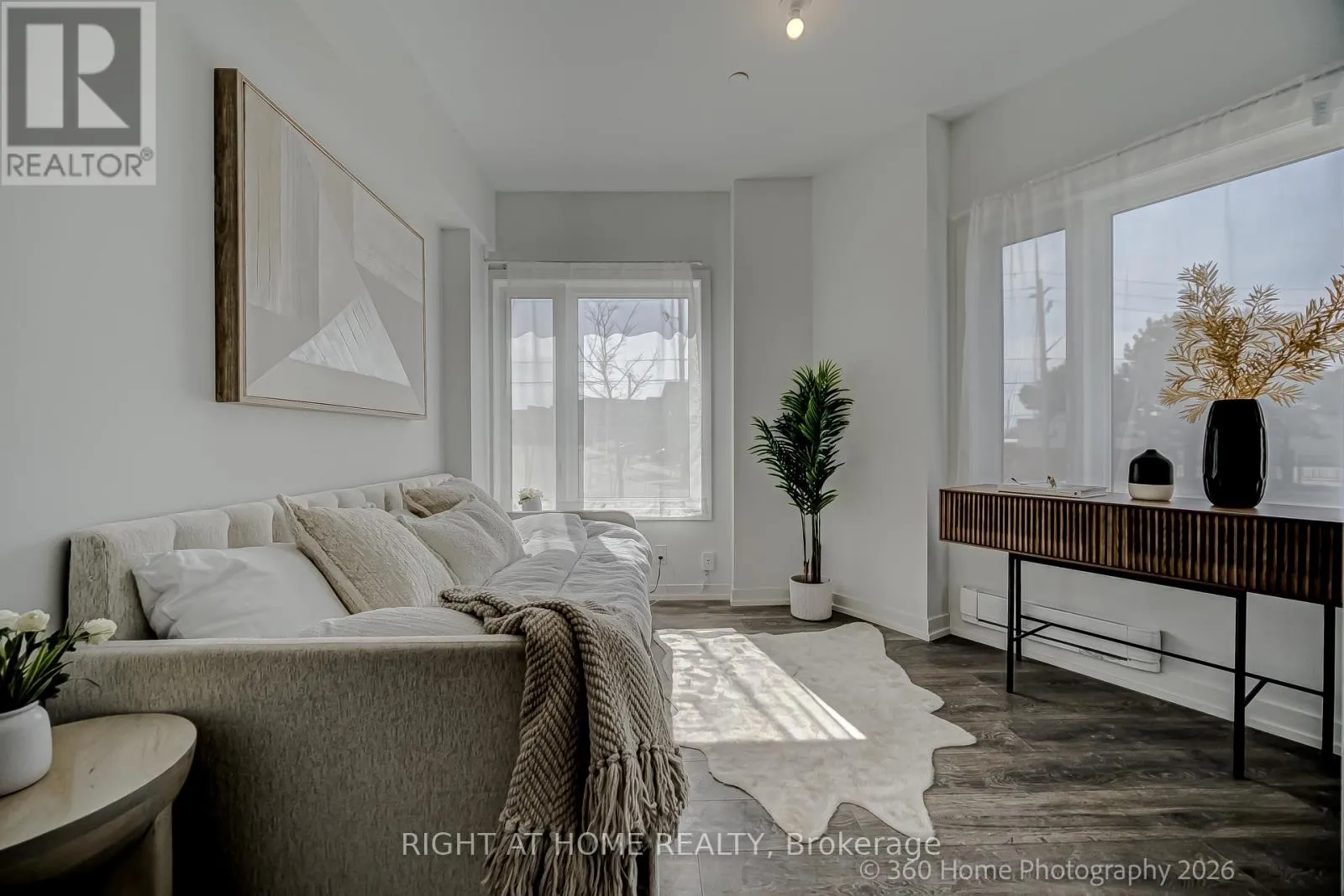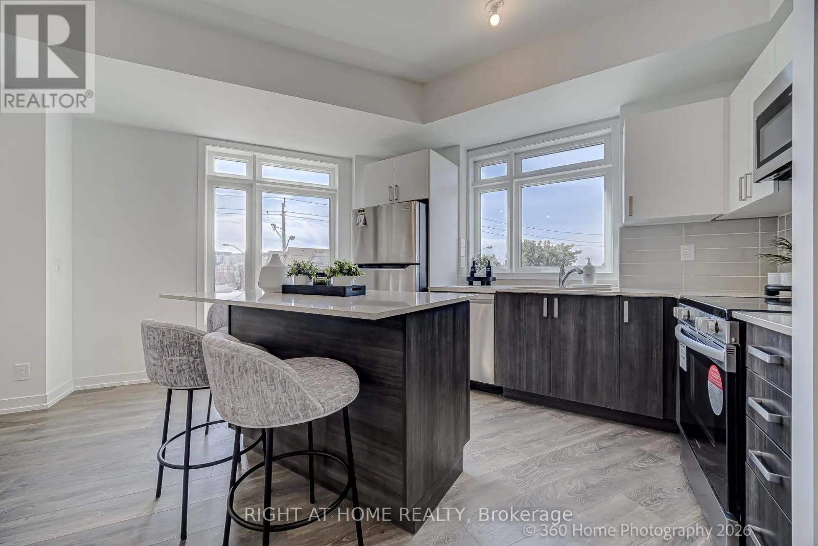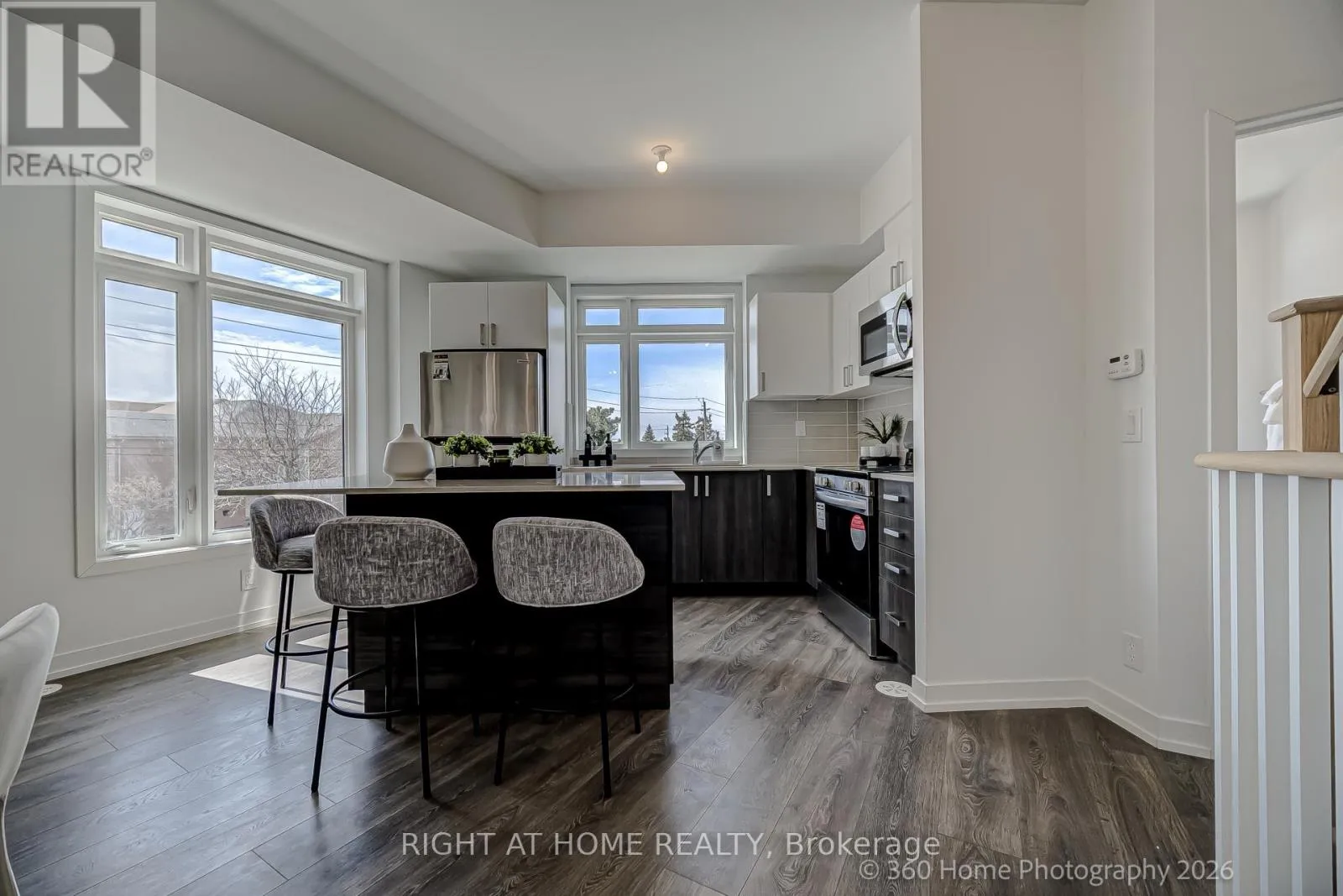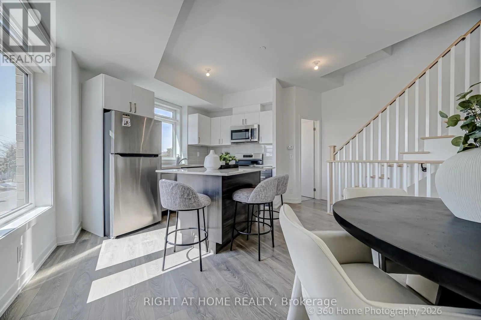 Cross Streets: Eglinton Ave/Victoria Pk. ** Directions: Eglinton Ave E right on Bermonsdey Dr, then left ton Bartley Dr. Welcome to this brand new never lived in house, the only unit in the complex with 2 garages. Absolutely stunning corner luxury townhouse with 2 garages filled with abundant natural light, offering spacious living areas beautifully flooded with sunshine throughout. The thoughtfully designed lower level features a private office, ideal for today's work-from-home lifestyle, while the upper levels provide 4 generally-sized bedrooms perfect for family living and living area ideal for hosting guests. Over 1870 sq. ft. This exceptional home showcases soaring ceilings, high-quality flooring throughout, and a striking oak staircase, creating a refined and sophisticated atmosphere. Enjoy the convenience of a private ground-level garage with direct interior access and additional storage. This home features a gorgeous open-concept modern kitchen with breakfast area, while the spacious living and dining area walks out to a generous balcony, perfect for BBQ, relaxing or hosting gatherings. Two luxurious primary bedrooms, including one with tranquil park views and CN tower views, offer peaceful retreats, while a third bedroom with its own balcony boasts breath taking views. Ideally situated in a prime North York location, just steps to the Eglinton Crosstown LRT Subway Station and within walking distance to hospitals, schools, and parks. Enjoy unmatched convenience with No Frills, Walmart, Eglinton Square Mall, and Costco nearby. The area's appeal is further elevated by exciting Golden Mile developments, including a future joint campus by the University of Toronto and Centennial College, making this a vibrant and highly desirable neighbourhood. BBQs Allowed, Visitor Parking (id:27476)