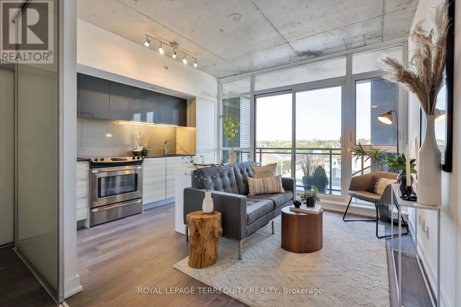 Cross Streets: Carlaw Ave & Dundas St E. ** Directions: S of Carlaw Ave. Amazing Opportunity @ The Carlaw! Bright, airy, and impeccably styled loft, this turn-key suite delivers smart design with a cool, confident edge. Small but mighty, the layout is clean and intentional - a contemporary integrated kitchen, private bedroom, exposed concrete ceilings, crisp white walls, and floor-to-ceiling windows that flood the space with natural light. Ideal for the first time buyer who wants to capitalize on appreciation on buying at the right time, or perfect pied-a-terre for someone who needs a pad in the city. Add outdoor space and clever storage, and you have a home that looks good, lives well, and feels easy. A dedicated parking spot is included. Enjoy top-tier amenities including a full gym, guest suites, 24-hour concierge, and a rooftop terrace with communal BBQs and lounge space made for al fresco nights. Transit is seamless with streetcar access at your doorstep and a quick ride downtown, while easy connections to the Gardiner and DVP make getting in and out of the city effortless. Set in the heart of Leslieville, a former industrial pocket turned East End cultural hotspot, you're surrounded by the city's best everyday rituals. Morning coffee at Te Aro, brunch at Maha's or Lady Marmalade, dinner at Descendant Pizza or MARU Japanese Bistro, and rooftop drinks at The Broadview Hotel - all just steps from your door. Ideal for first-time buyers, pied-a-terre seekers, or savvy investors. This isn't just a condo - it's your next move. (id:27476)