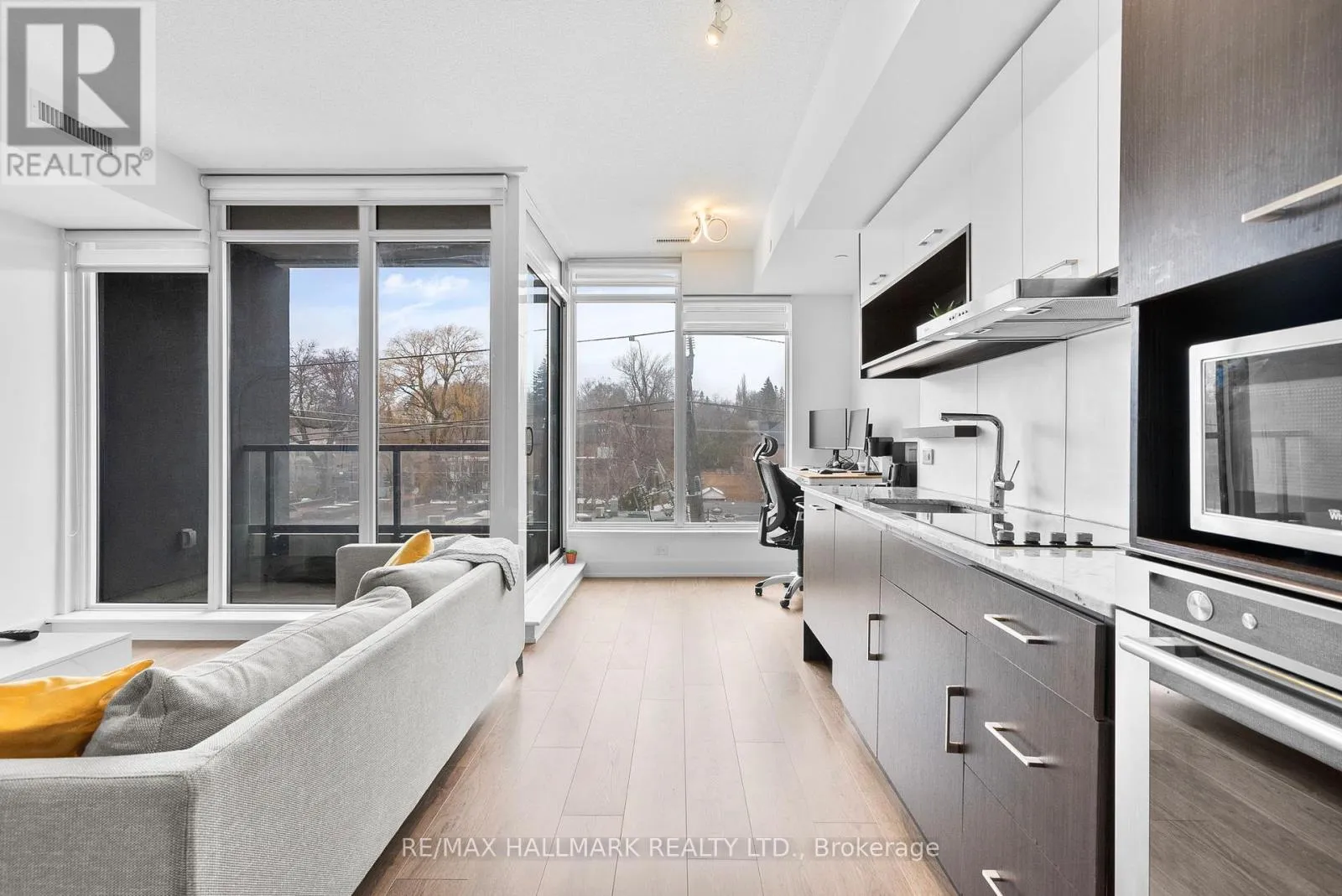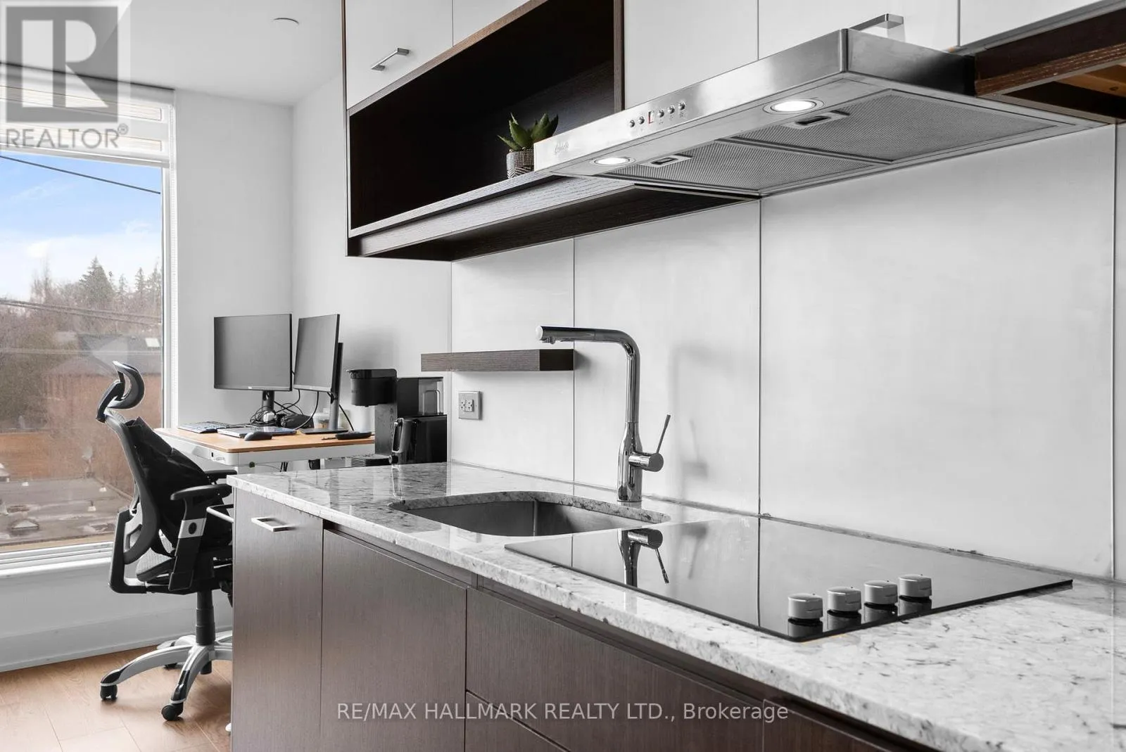 Bathurst St/Eglinton Ave W A bright and perfectly situated suite in the heart of Forest Hill's Upper Village! This 1-bedroom plus den unit offers a sophisticated open-concept design with floor-to-ceiling windows overlooking a serene backdrop of mature trees. The kitchen features granite countertops, a glass backsplash, and stainless steel appliances, flowing seamlessly into the living area with a private balcony. The primary bedroom is a true highlight, offering a rare walk-in closet and a convenient semi-ensuite. A versatile den serves as the perfect home office or dining area, while the functional layout makes the entire space feel open and inviting. Building residents enjoy amenities, including 24/7 concierge, a gym, guest suite, party room, dining room, billiards room, and a rooftop terrace. The location is unbeatable: steps to the new Eglinton Crosstown LRT (Cedarvale & Forest Hill Stations) and immediate access to Allen Rd and the 401. Minutes to grocery stores, boutique shopping, cafes, restaurants, and Cedarvale Park. Modern comfort meets total connectivity, your peaceful retreat in the heart of the city. (id:27476)