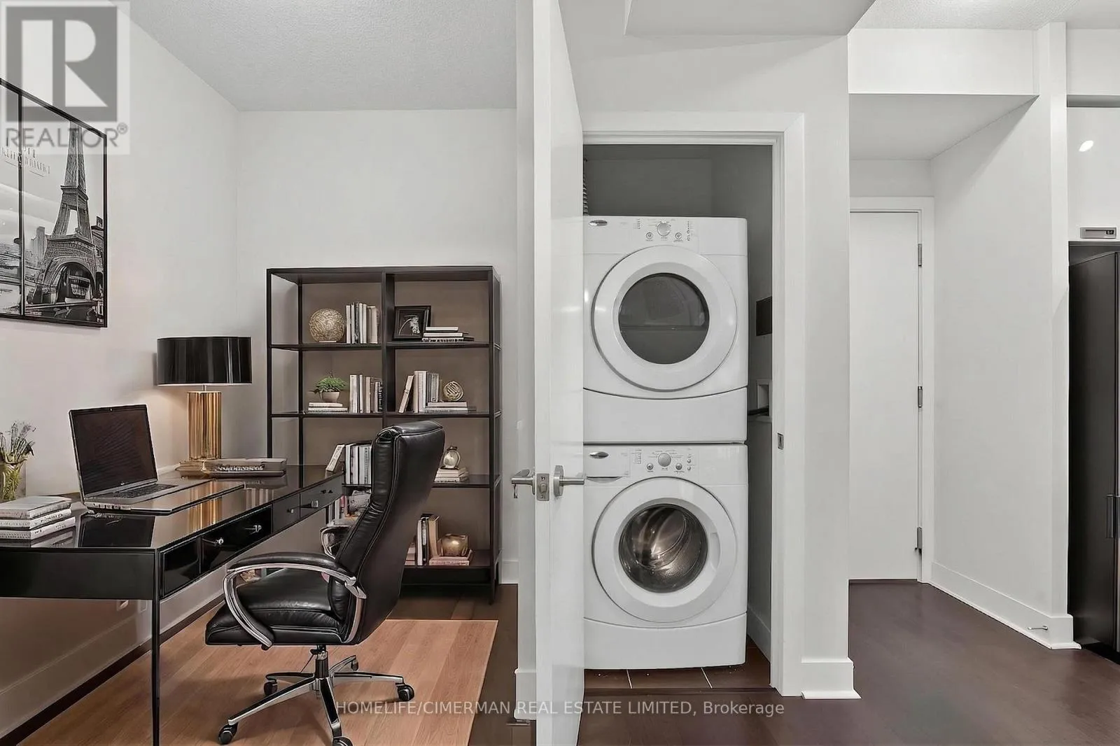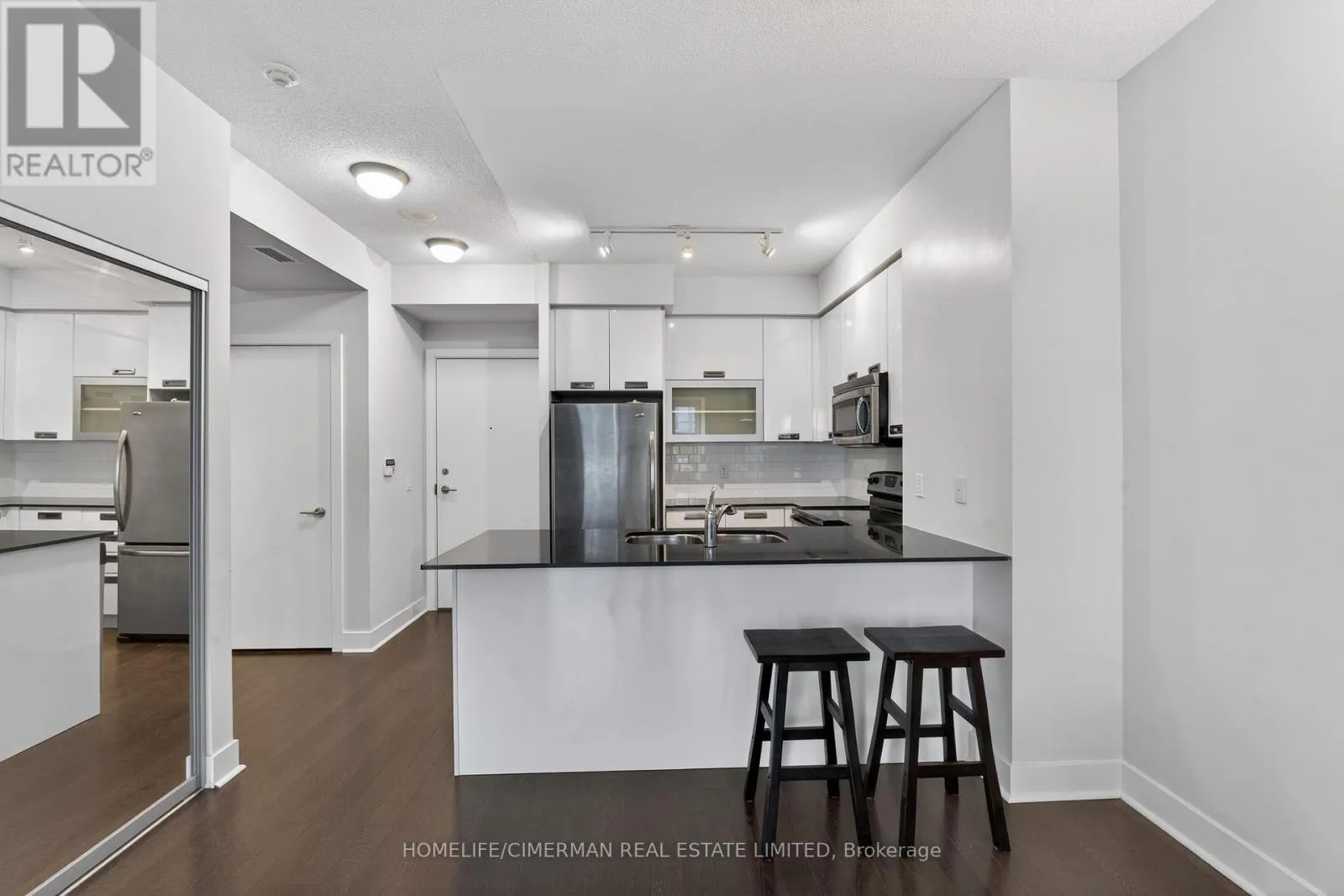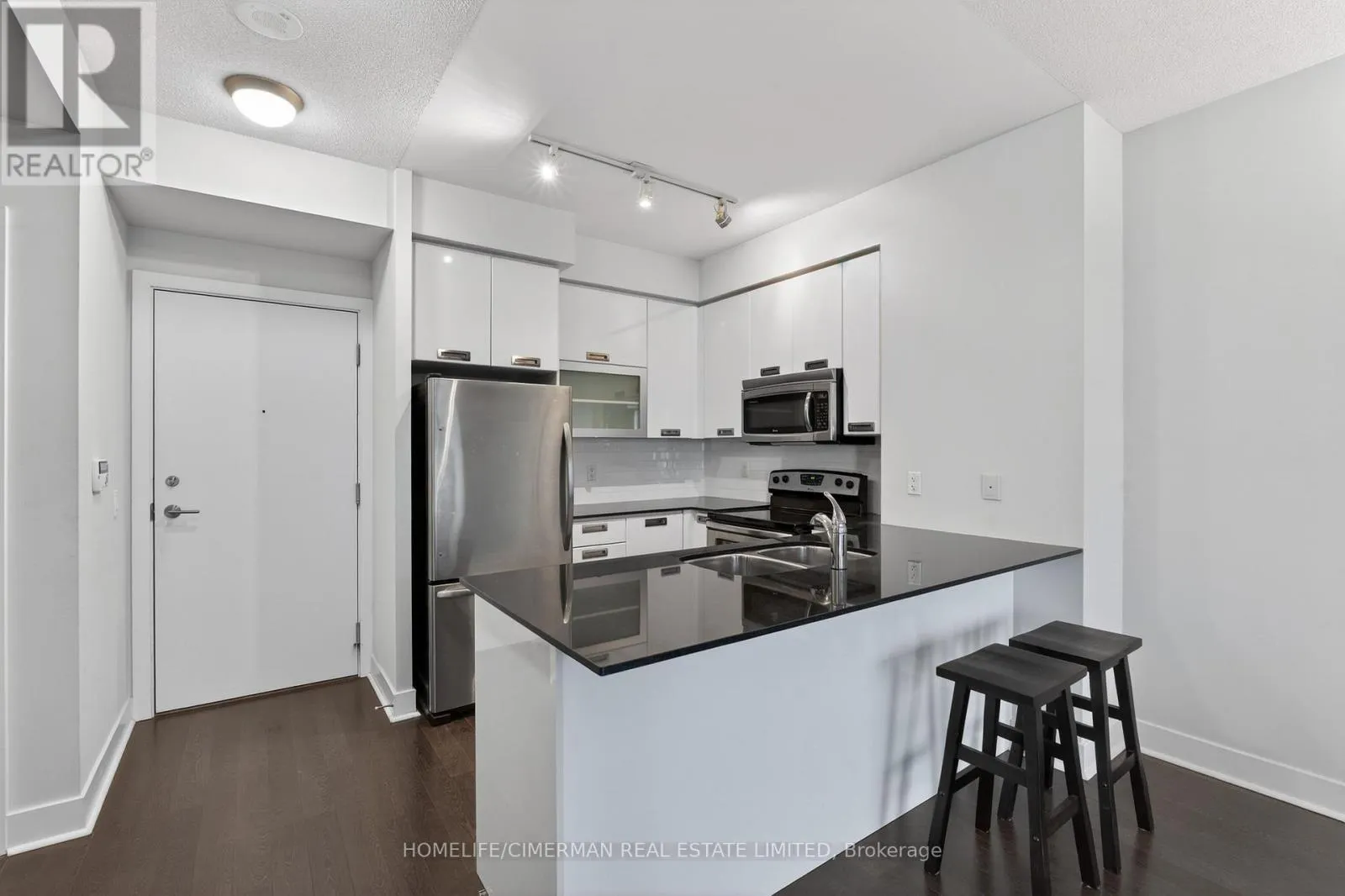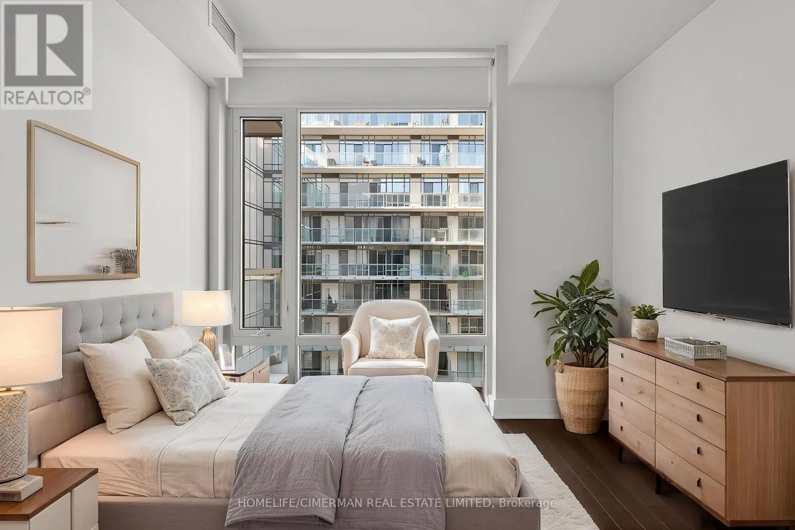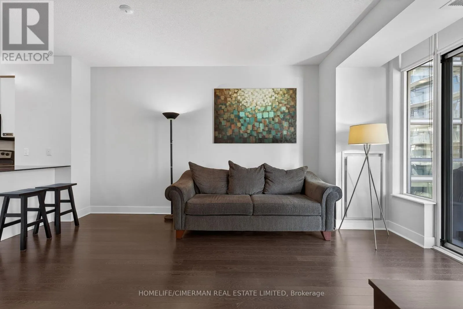 Lake Shore Blvd W and Bathurst St Live where Toronto wakes up right at Quay West Condos, a boutique mid-rise perfectly positioned along the waterfront in Marina Quay West. This rarely available 1+Den features a highly functional layout with a separate den ideal for a dedicated work-from-home setup, complemented by an open-concept living space and a full kitchen with ample counter space for everyday use and entertaining. Step outside to direct access to the lakefront trail and Coronation Park, offering an unmatched lifestyle of morning runs, waterfront walks, and everyday escape from the city noise. Enjoy the added convenience of generous closet storage throughout, a rare find in condo living. Experience a quieter, boutique environment without the congestion of high-rise buildings, while still having access to premium amenities including a fully equipped gym, spa, sauna, whirlpool, co-working lounge, theatre room, party room, and guest suites. Opportunities to lease in this waterfront building are limited, making this an ideal option for stable tenants seeking a refined waterfront lifestyle with space, function, and convenience. Landlord is open to a 2-year lease for strong tenants. The couch, lamps, bar stools, shelving, and TV stand can also be included partially furnished for your convenience. (id:27476)