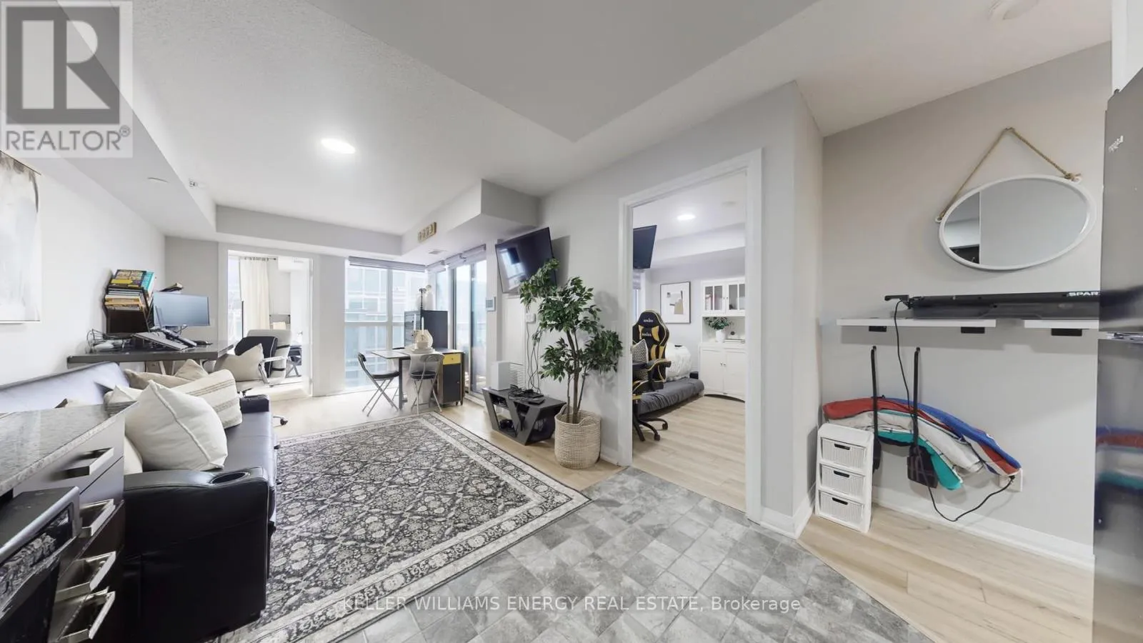 Markham/ Ellesmere Bright and beautifully laid out condo featuring floor-to-ceiling windows that fill the open-concept living spaces with natural light. This unit offers 2 spacious bedrooms and 2 full bathrooms, ideal for comfortable, modern living. Enjoy a rare outdoor setup with a huge private terrace plus an additional balcony perfect for entertaining or unwinding. Complete with the convenience of ensuite laundry, along with the added value of a dedicated parking space and locker. Situated in a prime location just minutes to Highway 401, Centennial College, Scarborough Town Centre, and a full range of everyday amenities. (id:27476)