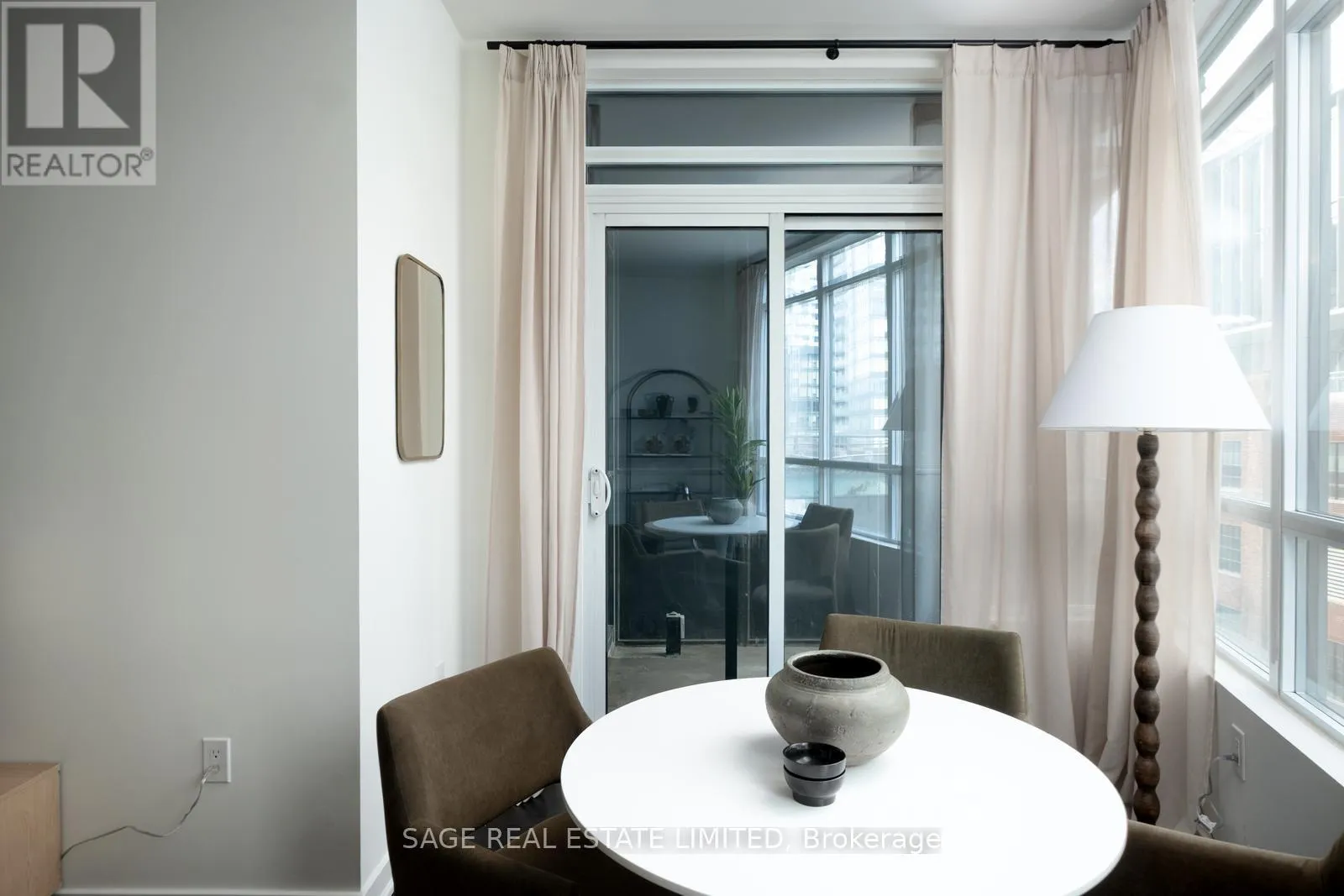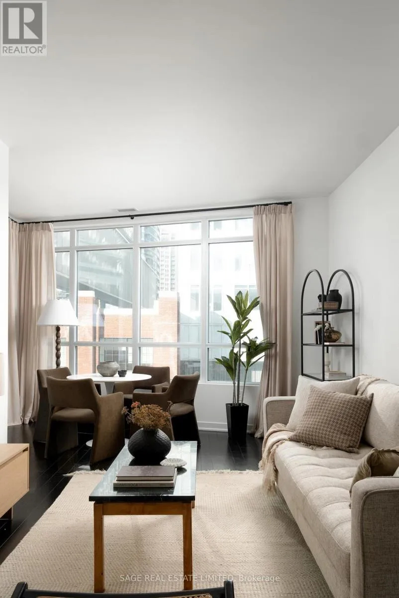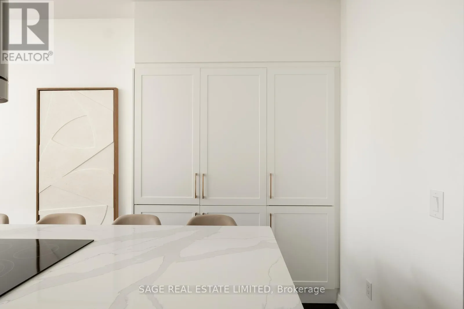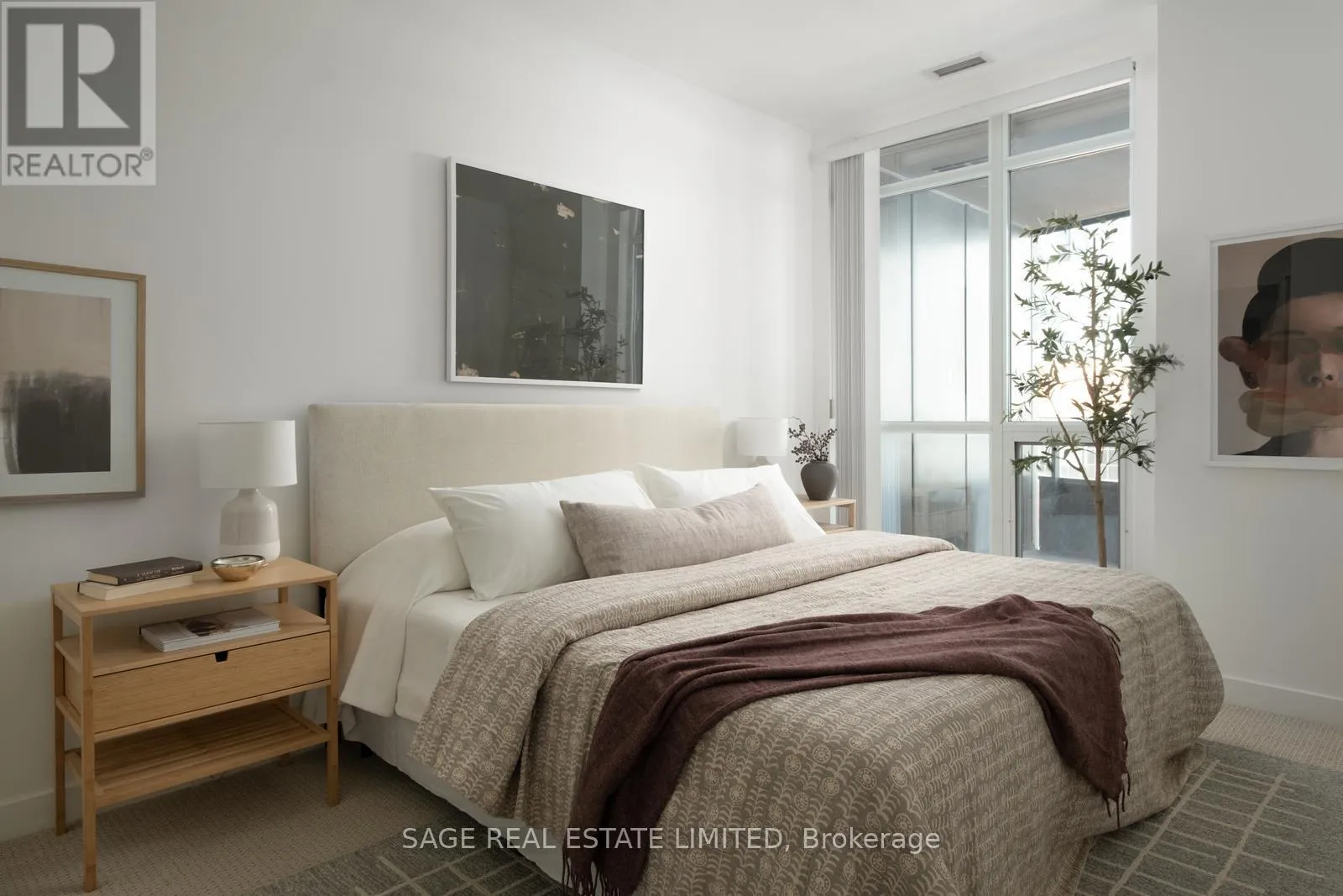 Lakeshore/Bathurst Set along Toronto's dynamic waterfront, this west-facing 2-bedroom, 1-bath condo delivers nearly 900 sq ft of intelligently designed living in one of downtown's most connected communities. A proper foyer with an oversized closet creates a sense of arrival and separation before opening into the kitchen, which flows seamlessly into the open-concept living and dining area. Floor-to-ceiling windows and warm natural light throughout the day keep the entire space feeling bright and airy. Renovated in 2020, the kitchen anchors the home with a generous quartz island, full-size stainless steel appliances, and a large custom pantry that adds rare, functional storage. Clean finishes and thoughtful built-ins elevate both form and function, creating a space that feels modern without sacrificing practicality. The primary bedroom is calm and efficient, with direct access to a smartly configured 4-piece bath that's designed for real life. Double sinks keep mornings easy, and an inner privacy door allows the space to operate as a guest-friendly powder room when entertaining, while still preserving a true primary-suite feel. The second bedroom comes complete with a large wardrobe and is ideal for guests, a nursery, or a home office. At 38 Dan Leckie Way, cafés, restaurants, and daily essentials, including a nearby grocery store, are just steps from your door. The lake and surrounding green space are under a five-minute walk, and the Rogers Centre is roughly 15 minutes on foot. The Queens Quay streetcar provides quick access across downtown, and when driving is essential, the Gardiner is minutes away. One underground parking space is included. The amenities round out your lifestyle with 24-hour concierge service, an exercise room, party/meeting spaces, guest suites, visitor parking, bike storage, and spa-inspired amenities, including a sauna and hot tub, plus a rooftop deck and garden with an outdoor BBQ area. (id:27476)