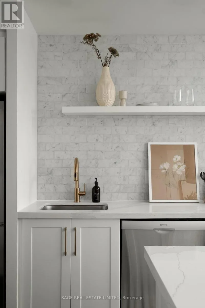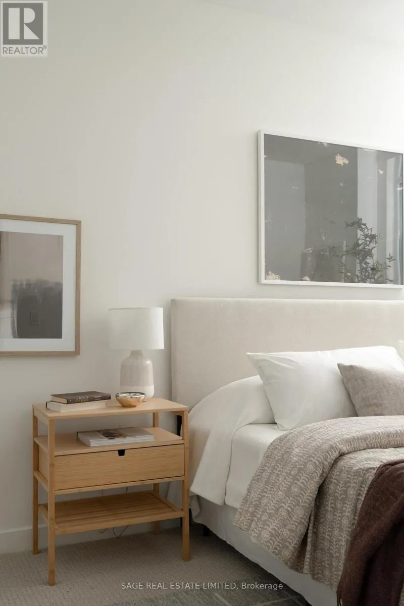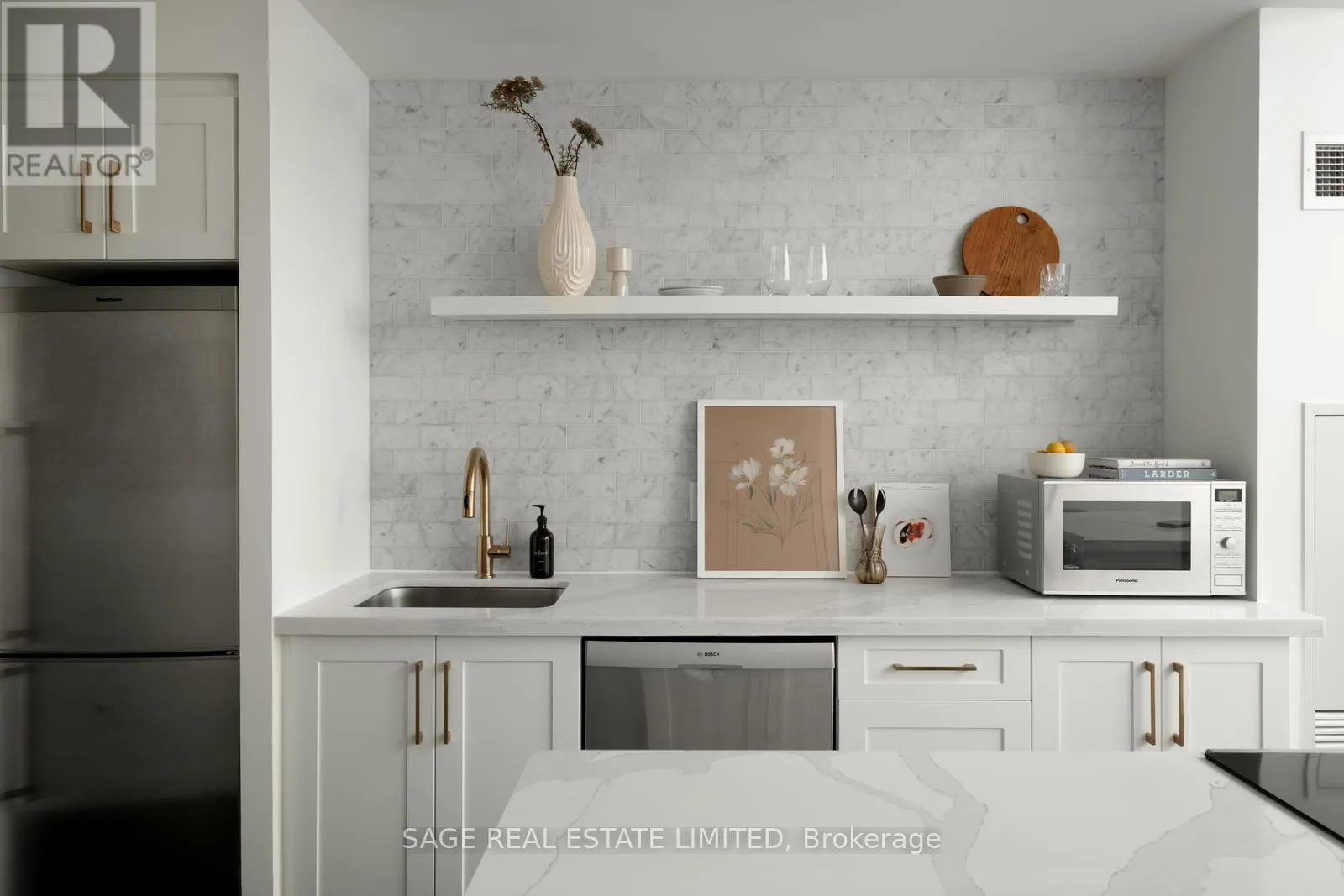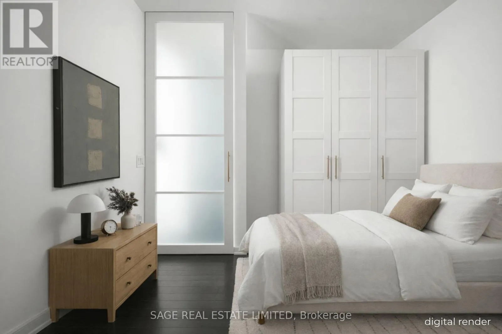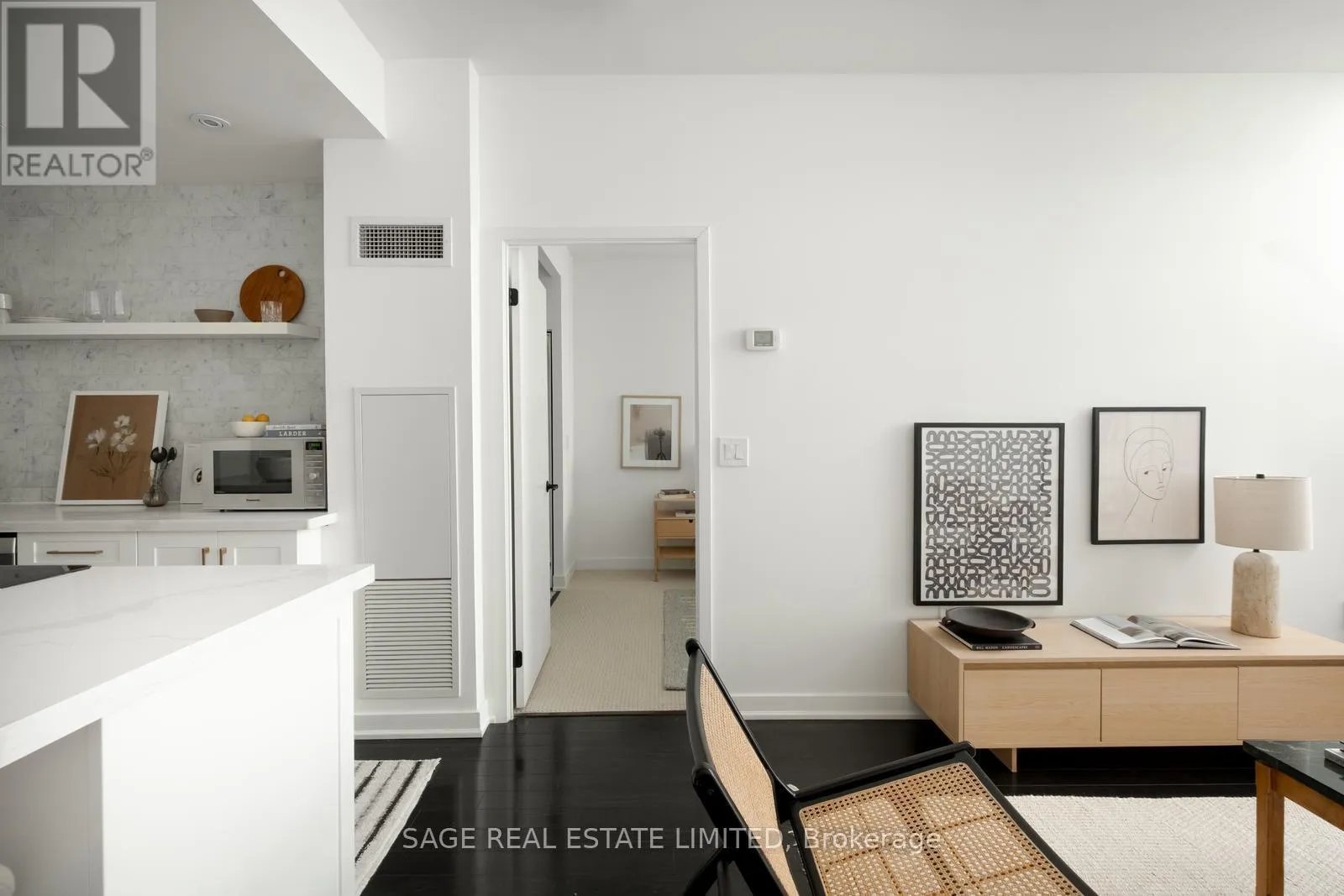 Lakeshore/Bathurst Set along Toronto's dynamic waterfront, this west-facing 2-bedroom, 1-bath condo delivers nearly 900 sq ft of intelligently designed living in one of downtown's most connected communities. A proper foyer with an oversized closet creates a sense of arrival and separation before opening into the kitchen, which flows seamlessly into the open-concept living and dining area. Floor-to-ceiling windows and warm natural light throughout the day keep the entire space feeling bright and airy. Renovated in 2020, the kitchen anchors the home with a generous quartz island, full-size stainless steel appliances, and a large custom pantry that adds rare, functional storage. Clean finishes and thoughtful built-ins elevate both form and function, creating a space that feels modern without sacrificing practicality. The primary bedroom is calm and efficient, with direct access to a smartly configured 4-piece bath that's designed for real life. Double sinks keep mornings easy, and an inner privacy door allows the space to operate as a guest-friendly powder room when entertaining, while still preserving a true primary-suite feel. The second bedroom comes complete with a large wardrobe and is ideal for guests, a nursery, or a home office. At 38 Dan Leckie Way, cafés, restaurants, and daily essentials, including a nearby grocery store, are just steps from your door. The lake and surrounding green space are under a five-minute walk, and the Rogers Centre is roughly 15 minutes on foot. The Queens Quay streetcar provides quick access across downtown, and when driving is essential, the Gardiner is minutes away. One underground parking space is included. The amenities round out your lifestyle with 24-hour concierge service, an exercise room, party/meeting spaces, guest suites, visitor parking, bike storage, and spa-inspired amenities, including a sauna and hot tub, plus a rooftop deck and garden with an outdoor BBQ area. (id:27476)