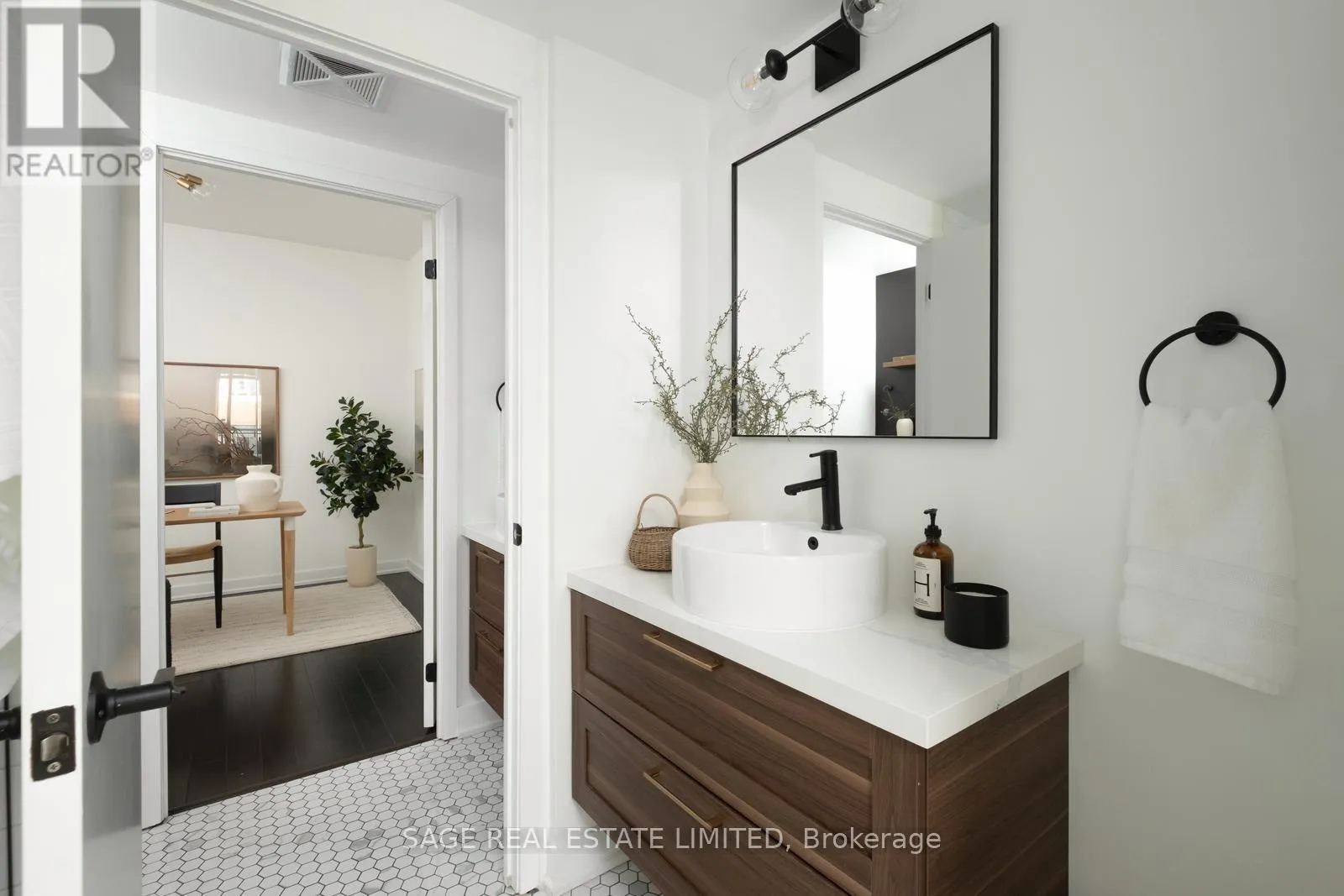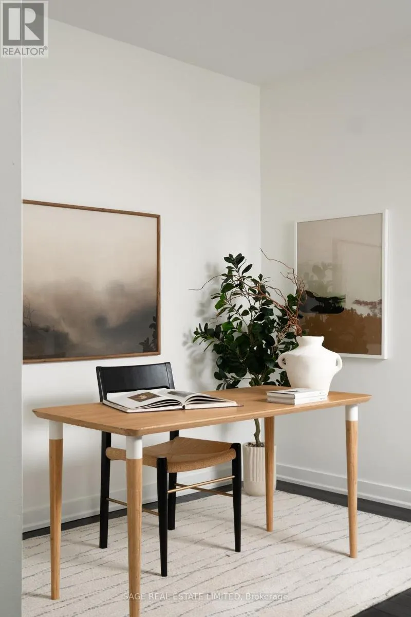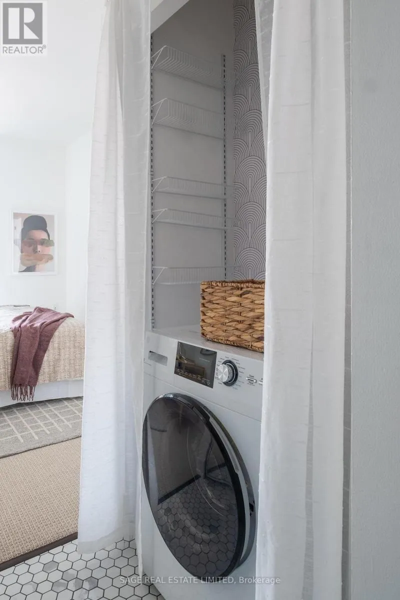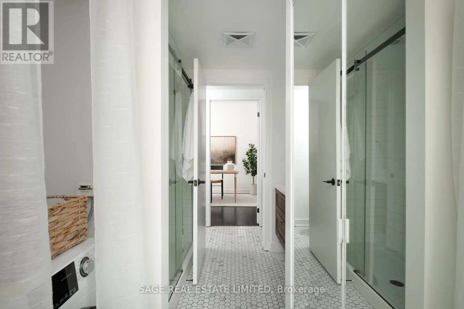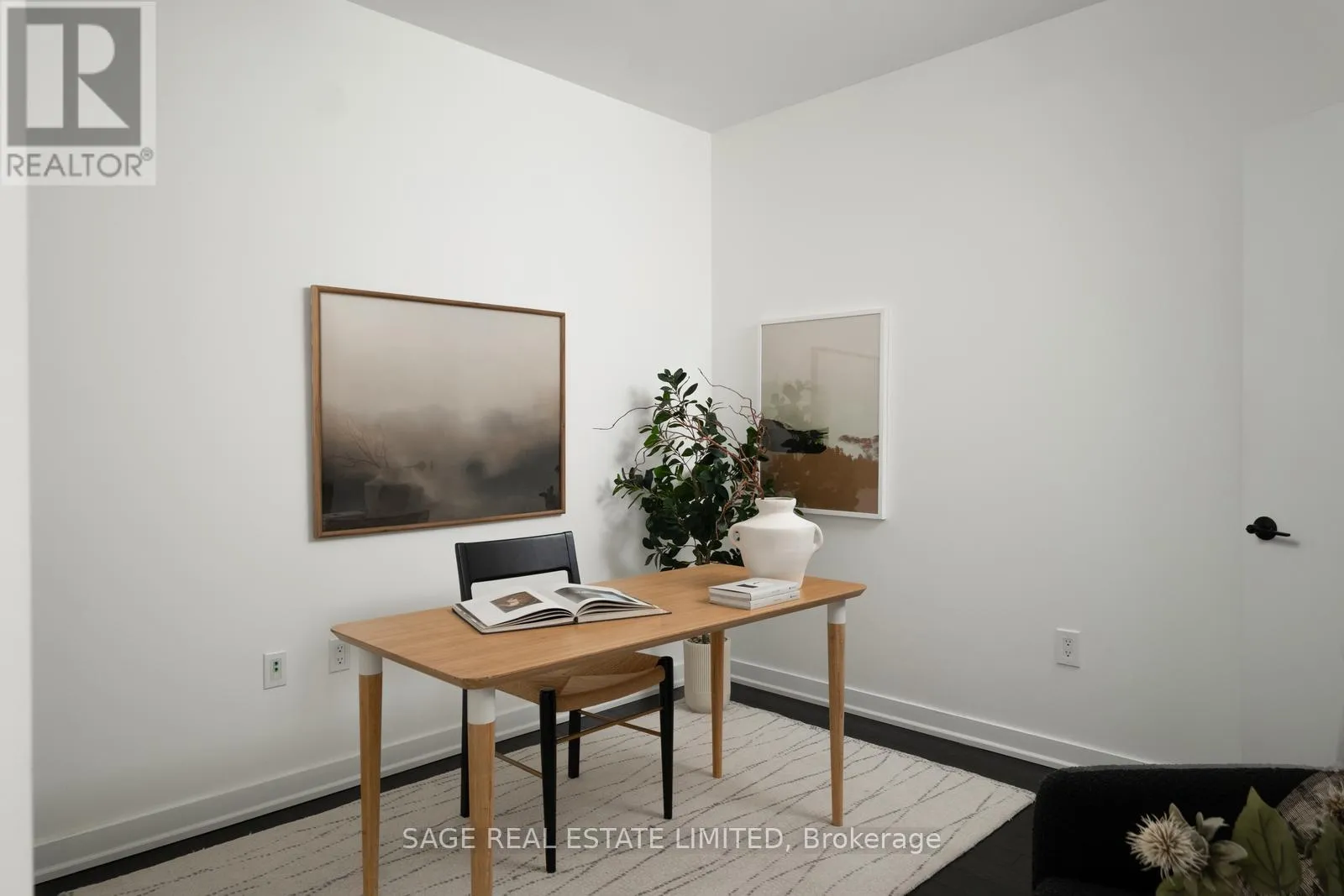 Lakeshore/Bathurst Set along Toronto's dynamic waterfront, this west-facing 2-bedroom, 1-bath condo delivers nearly 900 sq ft of intelligently designed living in one of downtown's most connected communities. A proper foyer with an oversized closet creates a sense of arrival and separation before opening into the kitchen, which flows seamlessly into the open-concept living and dining area. Floor-to-ceiling windows and warm natural light throughout the day keep the entire space feeling bright and airy. Renovated in 2020, the kitchen anchors the home with a generous quartz island, full-size stainless steel appliances, and a large custom pantry that adds rare, functional storage. Clean finishes and thoughtful built-ins elevate both form and function, creating a space that feels modern without sacrificing practicality. The primary bedroom is calm and efficient, with direct access to a smartly configured 4-piece bath that's designed for real life. Double sinks keep mornings easy, and an inner privacy door allows the space to operate as a guest-friendly powder room when entertaining, while still preserving a true primary-suite feel. The second bedroom comes complete with a large wardrobe and is ideal for guests, a nursery, or a home office. At 38 Dan Leckie Way, cafés, restaurants, and daily essentials, including a nearby grocery store, are just steps from your door. The lake and surrounding green space are under a five-minute walk, and the Rogers Centre is roughly 15 minutes on foot. The Queens Quay streetcar provides quick access across downtown, and when driving is essential, the Gardiner is minutes away. One underground parking space is included. The amenities round out your lifestyle with 24-hour concierge service, an exercise room, party/meeting spaces, guest suites, visitor parking, bike storage, and spa-inspired amenities, including a sauna and hot tub, plus a rooftop deck and garden with an outdoor BBQ area. (id:27476)
