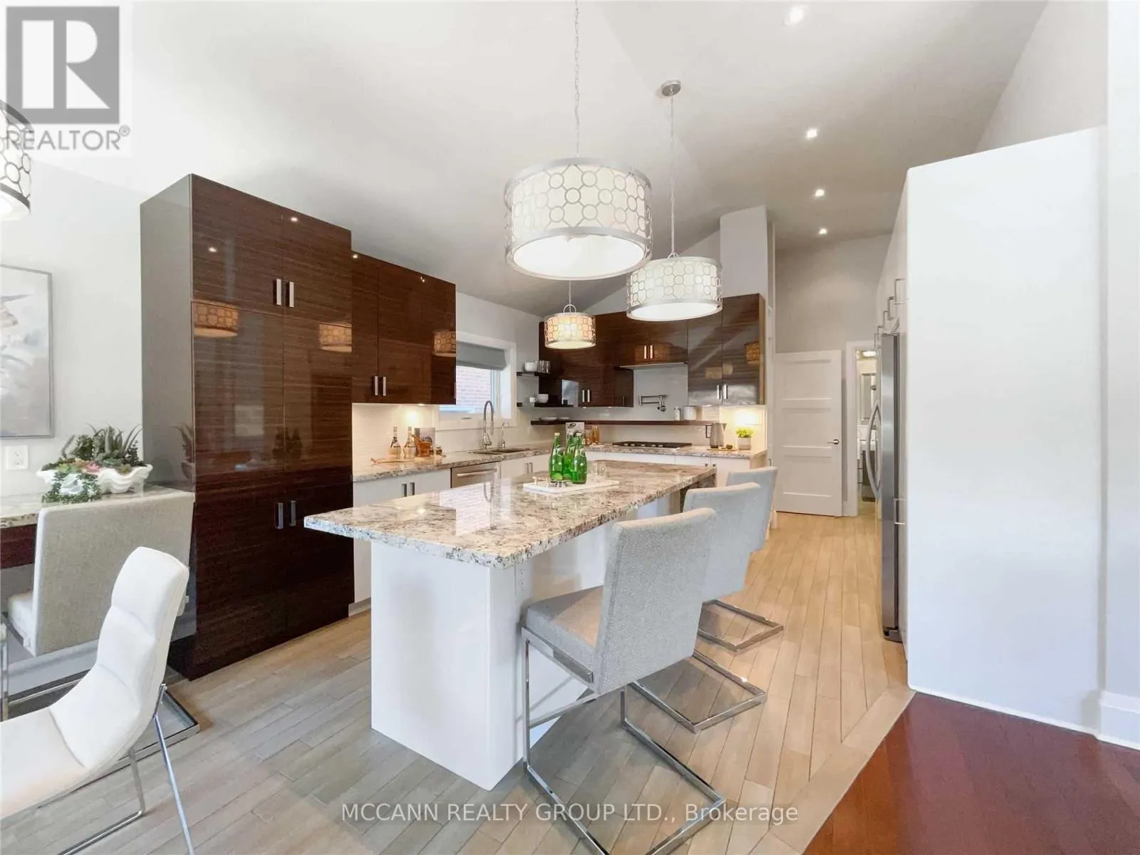 Cross Streets: Sheppard / Burbank. ** Directions: Burbank & Sheppard. Stunning Fully Renovated Ranch-Style Bungalow in the Prestigious Bayview Village Community. This exceptional home offers a seamless blend of modern design and everyday luxury, highlighted by soaring vaulted ceilings and a beautifully appointed open-concept living and dining area-perfect for both entertaining and comfortable family living. The fully finished lower level, complete with a separate entrance, presents incredible flexibility with in-law suite or private office potential. Thoughtfully designed with high-end features throughout, including a double-car garage, two fireplaces, two full kitchens, and a built-in sound system. The expansive primary retreat serves as a true sanctuary, featuring a spa-inspired 5-piece ensuite and a custom walk-in closet with built-in organizers.Offering excellent versatility, the layout also provides the potential to easily convert the home into a 3-bedroom residence to suit growing families or changing needs. Less than a 5-minute walk to Bessarion Station, with quick access to Highway 401 and the DVP, surrounded by scenic ravines, and located within the highly sought-after school catchments of Elkhorn Public School and Earl Haig Secondary School. (id:27476)
