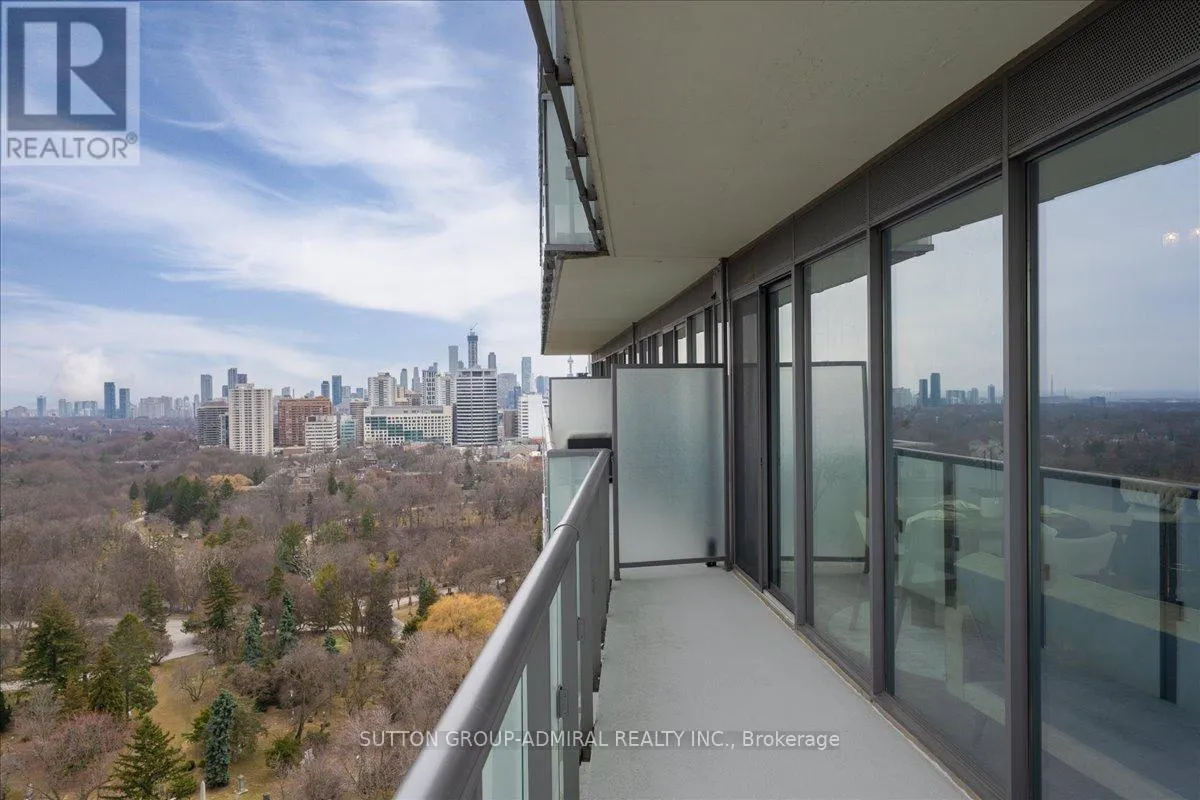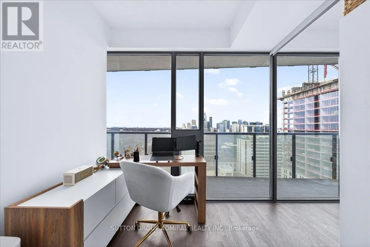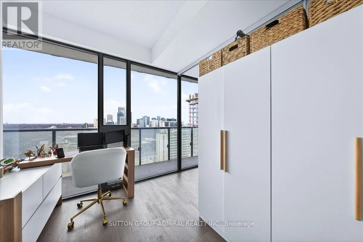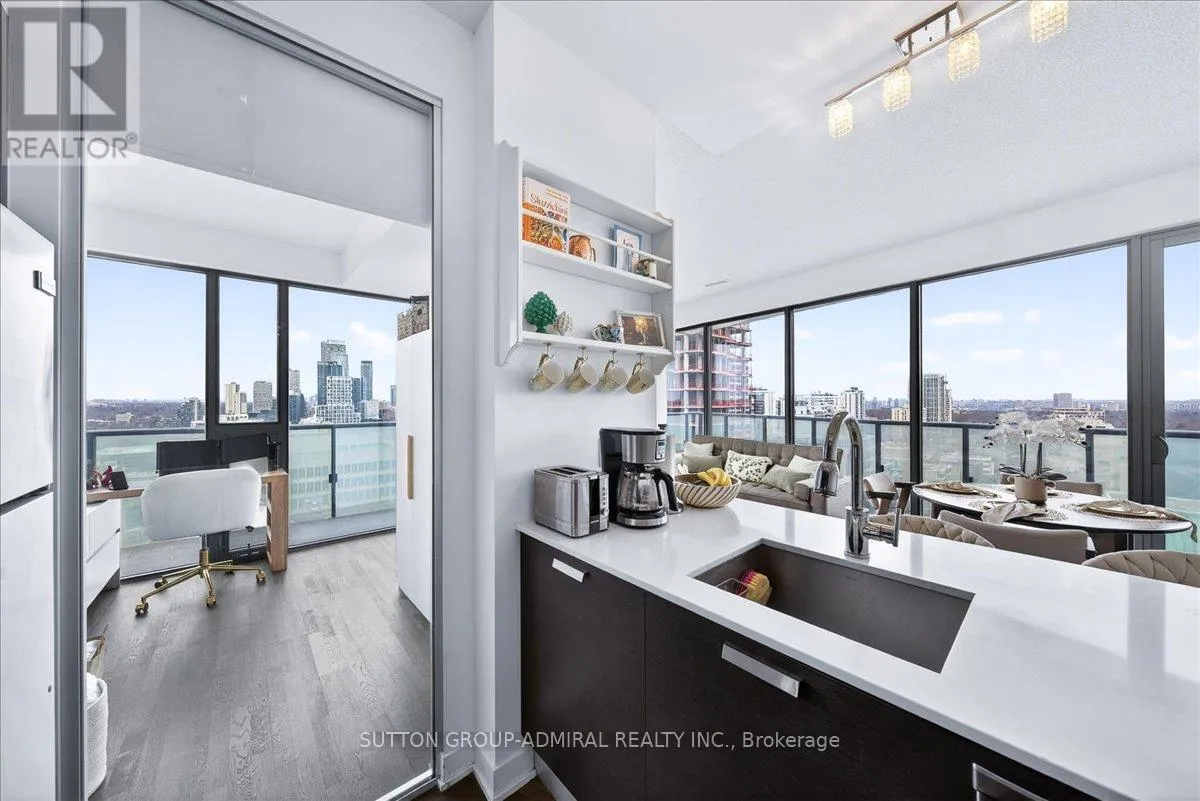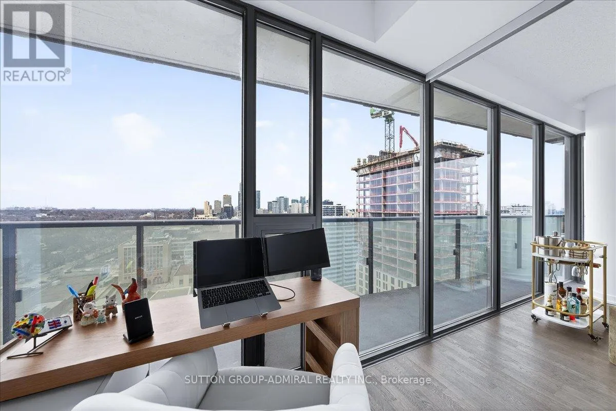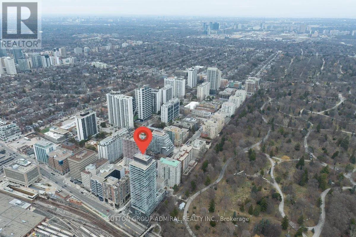 Cross Streets: Yonge And Davisville. ** Directions: Yonge and Merton. Rarely offered 1+Den suite at the prestigious MYC Condos, ideally located in the heart of Midtown Toronto at Yonge & Merton. This beautifully designed 767 sq.ft. residence features a highly functional open-concept layout with soaring high ceilings and floor-to-ceiling windows, filling the space with natural light and showcasing breathtaking 280-degree panoramic city views.The modern kitchen is finished with sleek cabinetry, quartz countertops, and stainless steel appliances, seamlessly flowing into spacious living and dining areas-perfect for both everyday living and entertaining.Step out onto your expansive 260 sq.ft. wrap-around balcony with two walk-outs-an exceptional outdoor space to enjoy both sunrise and sunset, host guests, or unwind above the city.The spacious den, complete with a sliding door, offers true versatility and can easily function as a second bedroom, private office, or guest space.Unbeatable location just steps to Davisville Station, the Kay Gardner Beltline Trail, and an array of boutique shops, cafes, and restaurants along Yonge Street.Residents enjoy premium amenities including concierge, fitness centre, media room, party/meeting room, rooftop terrace, and visitor parking.A rare opportunity to own in one of Midtown's most sought-after residences, offering the perfect blend of lifestyle, location, and elevated urban living. (id:27476)
