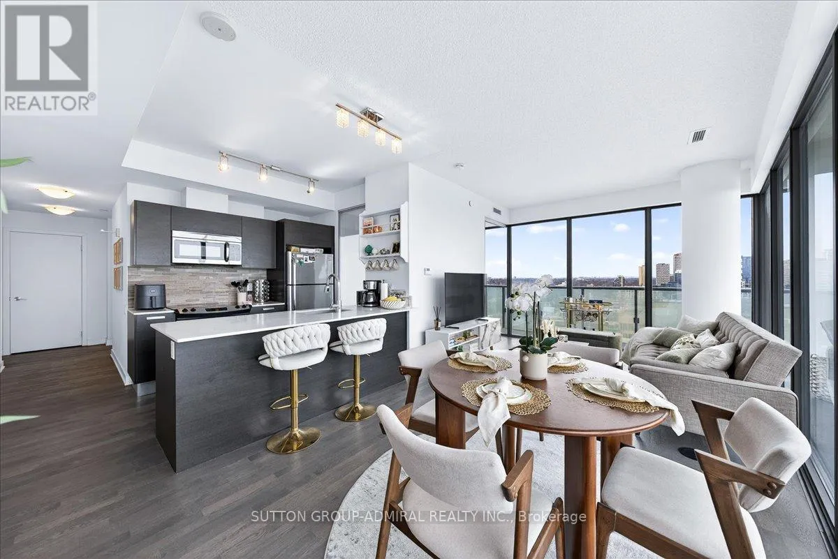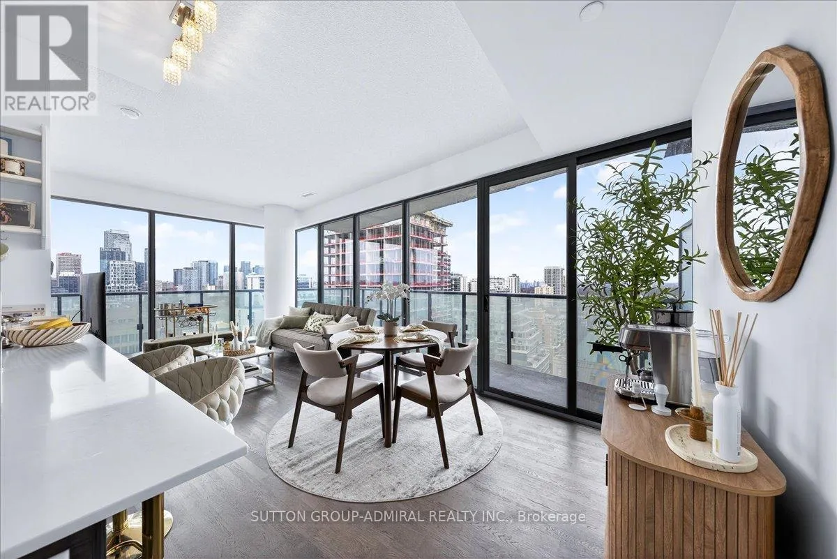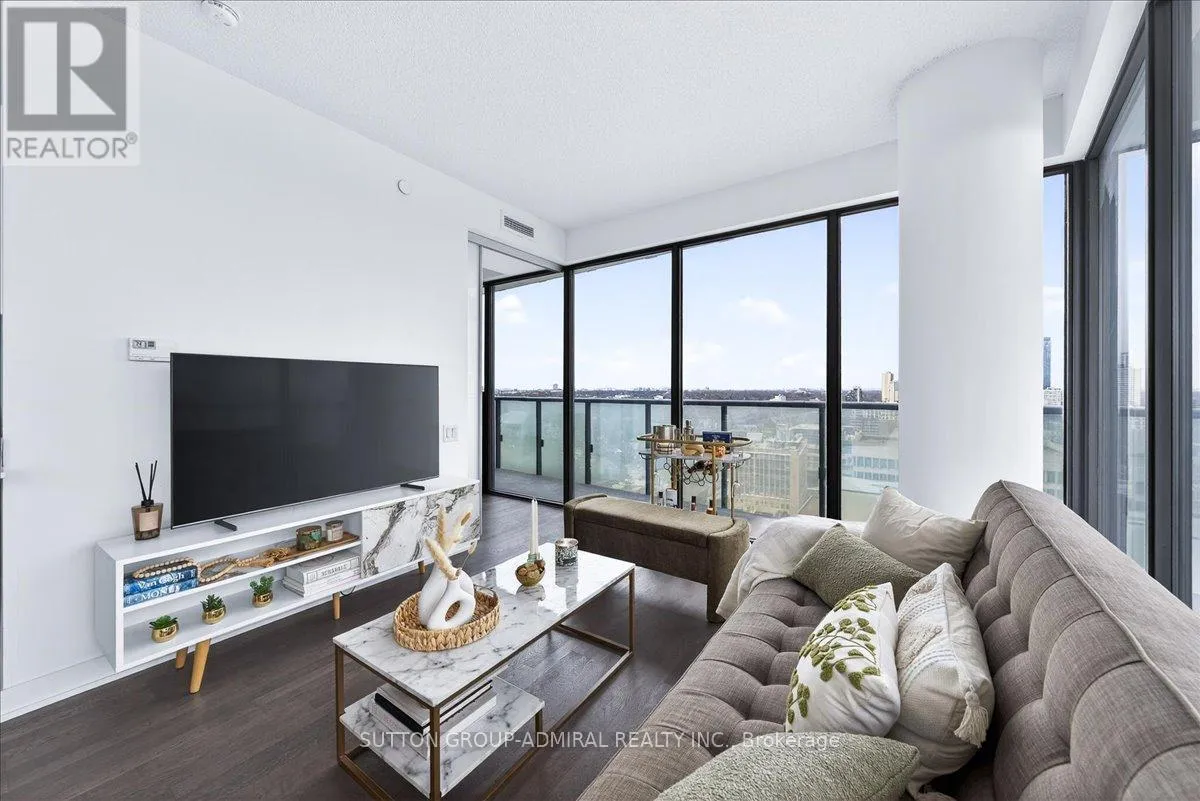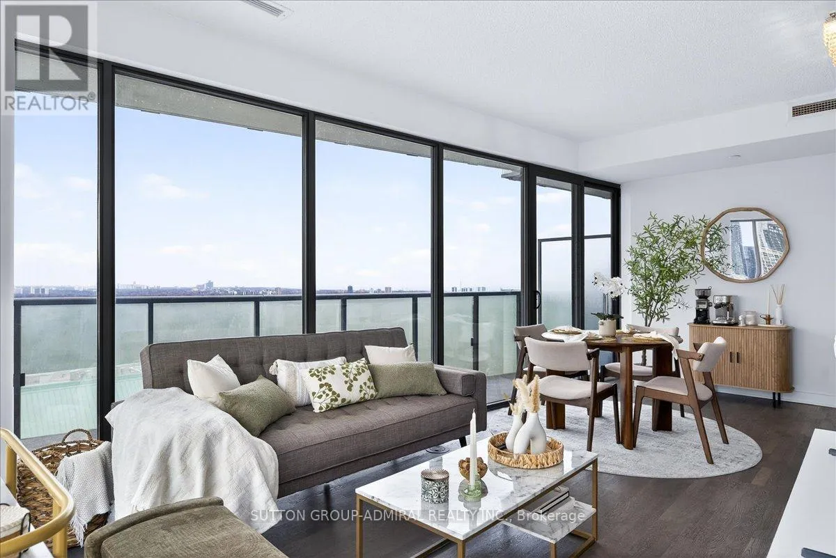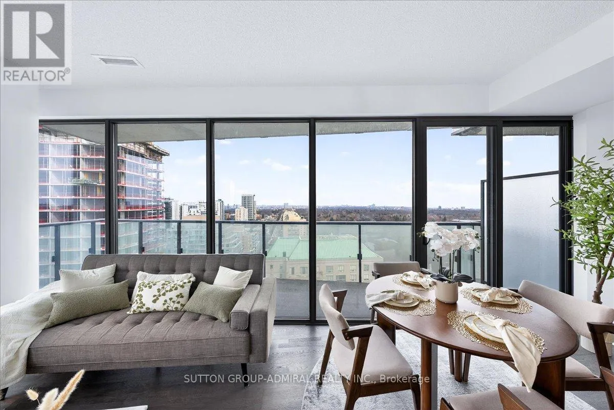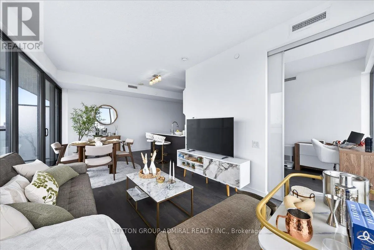 Cross Streets: Yonge And Davisville. ** Directions: Yonge and Merton. Rarely offered 1+Den suite at the prestigious MYC Condos, ideally located in the heart of Midtown Toronto at Yonge & Merton. This beautifully designed 767 sq.ft. residence features a highly functional open-concept layout with soaring high ceilings and floor-to-ceiling windows, filling the space with natural light and showcasing breathtaking 280-degree panoramic city views.The modern kitchen is finished with sleek cabinetry, quartz countertops, and stainless steel appliances, seamlessly flowing into spacious living and dining areas-perfect for both everyday living and entertaining.Step out onto your expansive 260 sq.ft. wrap-around balcony with two walk-outs-an exceptional outdoor space to enjoy both sunrise and sunset, host guests, or unwind above the city.The spacious den, complete with a sliding door, offers true versatility and can easily function as a second bedroom, private office, or guest space.Unbeatable location just steps to Davisville Station, the Kay Gardner Beltline Trail, and an array of boutique shops, cafes, and restaurants along Yonge Street.Residents enjoy premium amenities including concierge, fitness centre, media room, party/meeting room, rooftop terrace, and visitor parking.A rare opportunity to own in one of Midtown's most sought-after residences, offering the perfect blend of lifestyle, location, and elevated urban living. (id:27476)