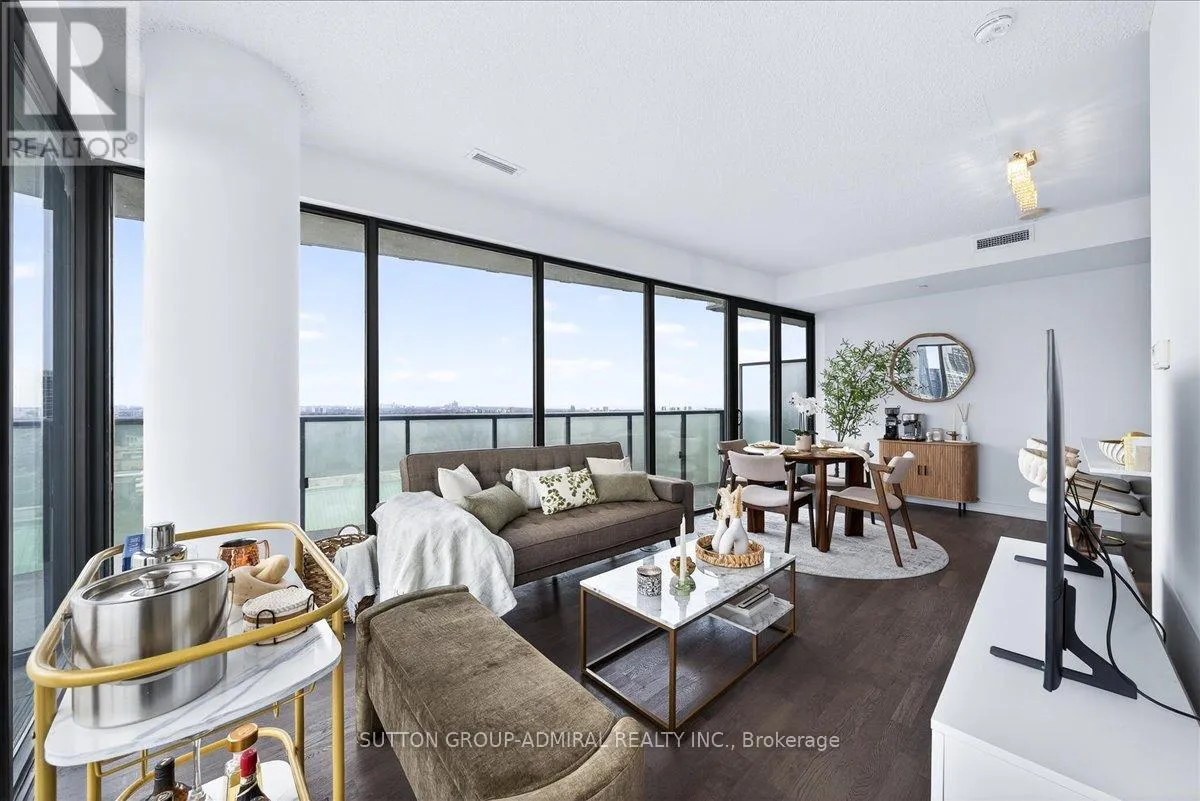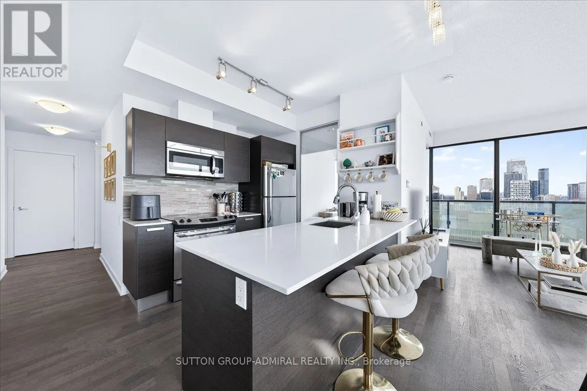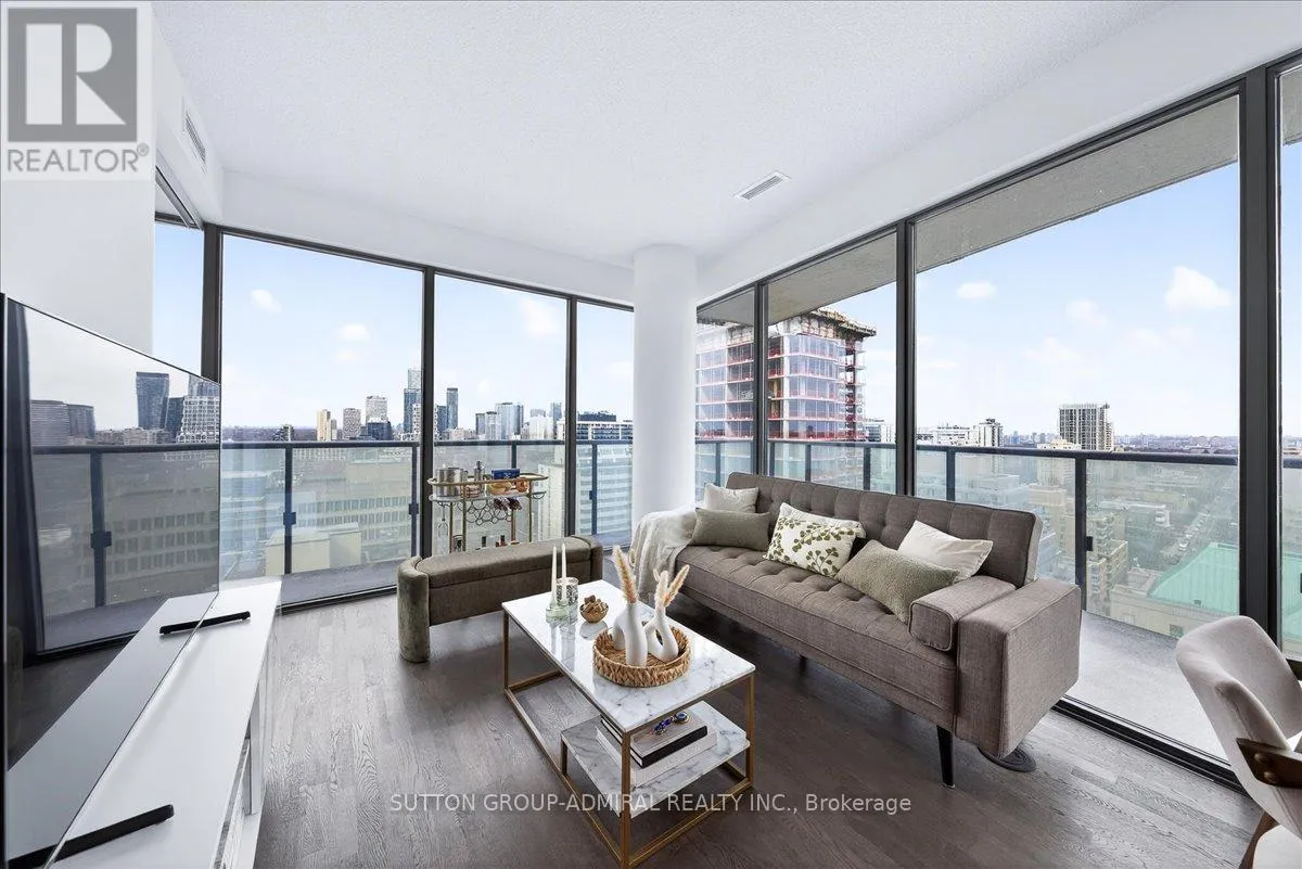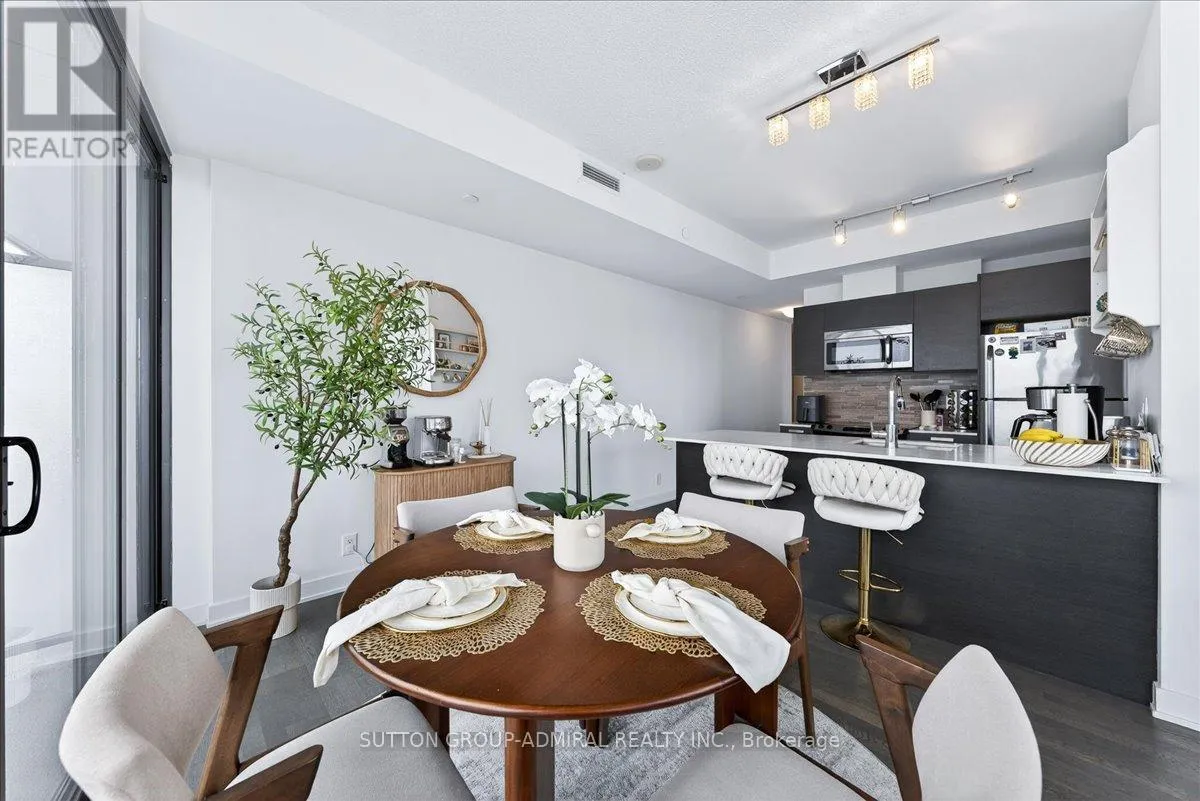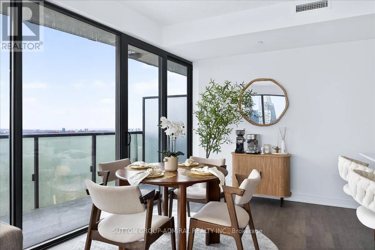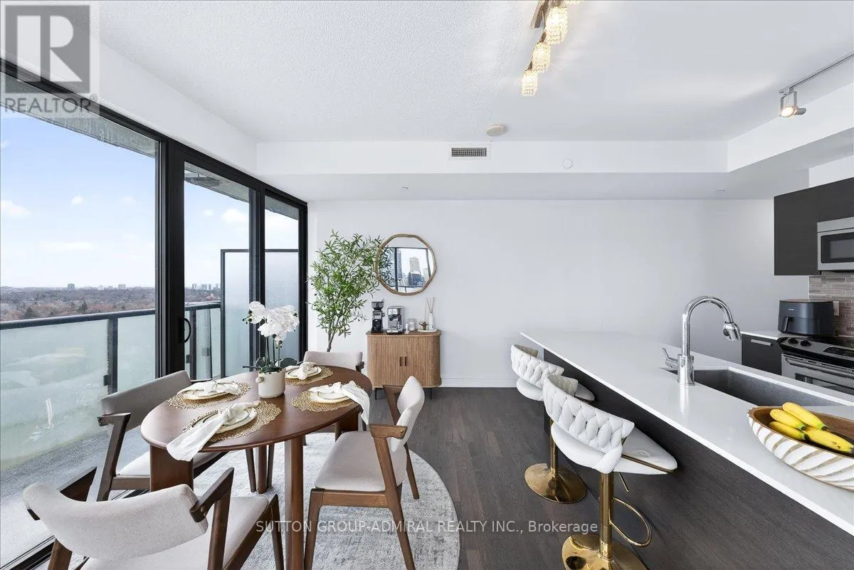 Cross Streets: Yonge And Davisville. ** Directions: Yonge and Merton. Rarely offered 1+Den suite at the prestigious MYC Condos, ideally located in the heart of Midtown Toronto at Yonge & Merton. This beautifully designed 767 sq.ft. residence features a highly functional open-concept layout with soaring high ceilings and floor-to-ceiling windows, filling the space with natural light and showcasing breathtaking 280-degree panoramic city views.The modern kitchen is finished with sleek cabinetry, quartz countertops, and stainless steel appliances, seamlessly flowing into spacious living and dining areas-perfect for both everyday living and entertaining.Step out onto your expansive 260 sq.ft. wrap-around balcony with two walk-outs-an exceptional outdoor space to enjoy both sunrise and sunset, host guests, or unwind above the city.The spacious den, complete with a sliding door, offers true versatility and can easily function as a second bedroom, private office, or guest space.Unbeatable location just steps to Davisville Station, the Kay Gardner Beltline Trail, and an array of boutique shops, cafes, and restaurants along Yonge Street.Residents enjoy premium amenities including concierge, fitness centre, media room, party/meeting room, rooftop terrace, and visitor parking.A rare opportunity to own in one of Midtown's most sought-after residences, offering the perfect blend of lifestyle, location, and elevated urban living. (id:27476)