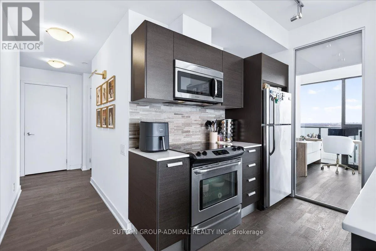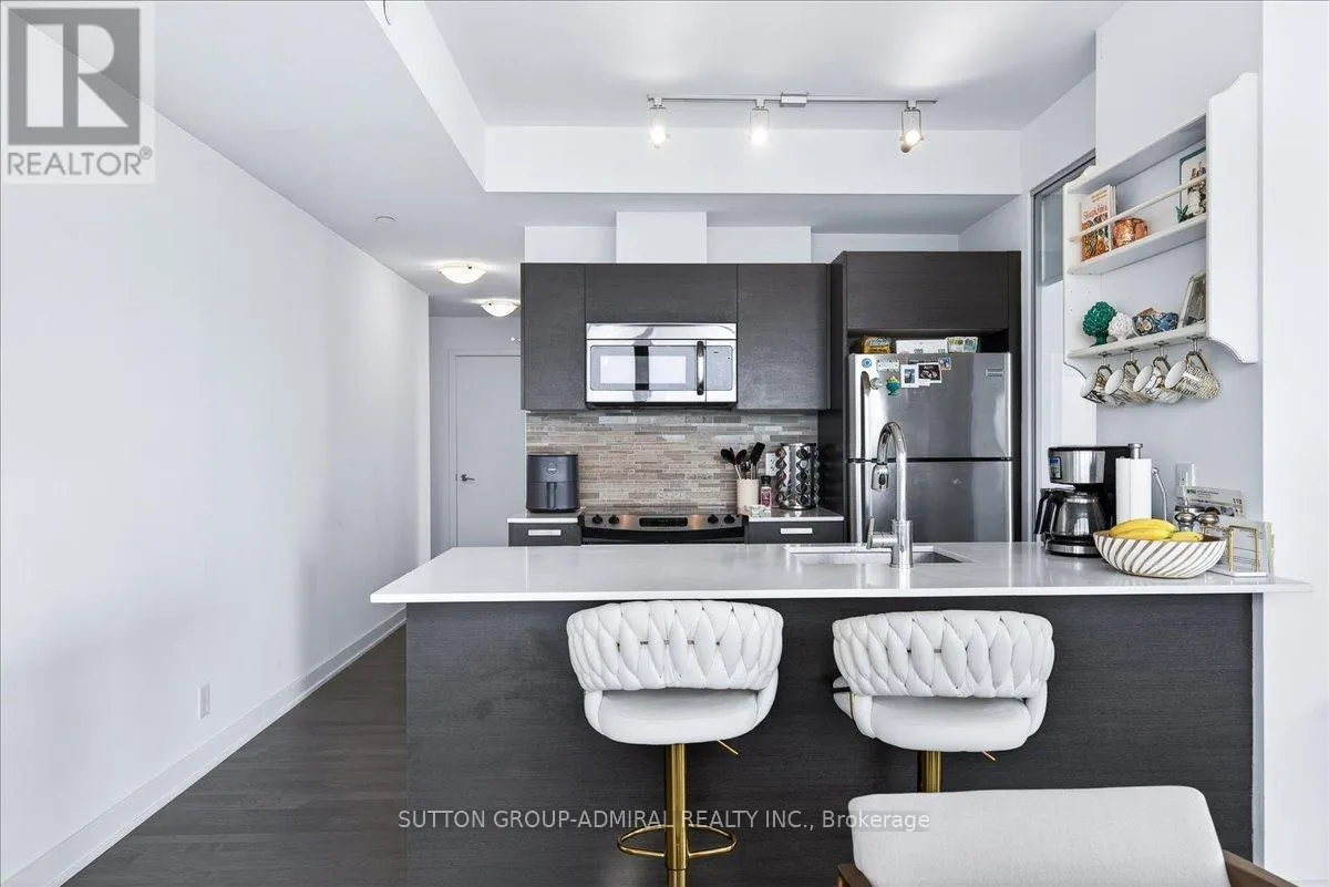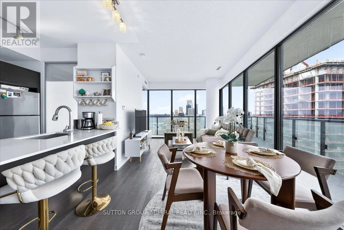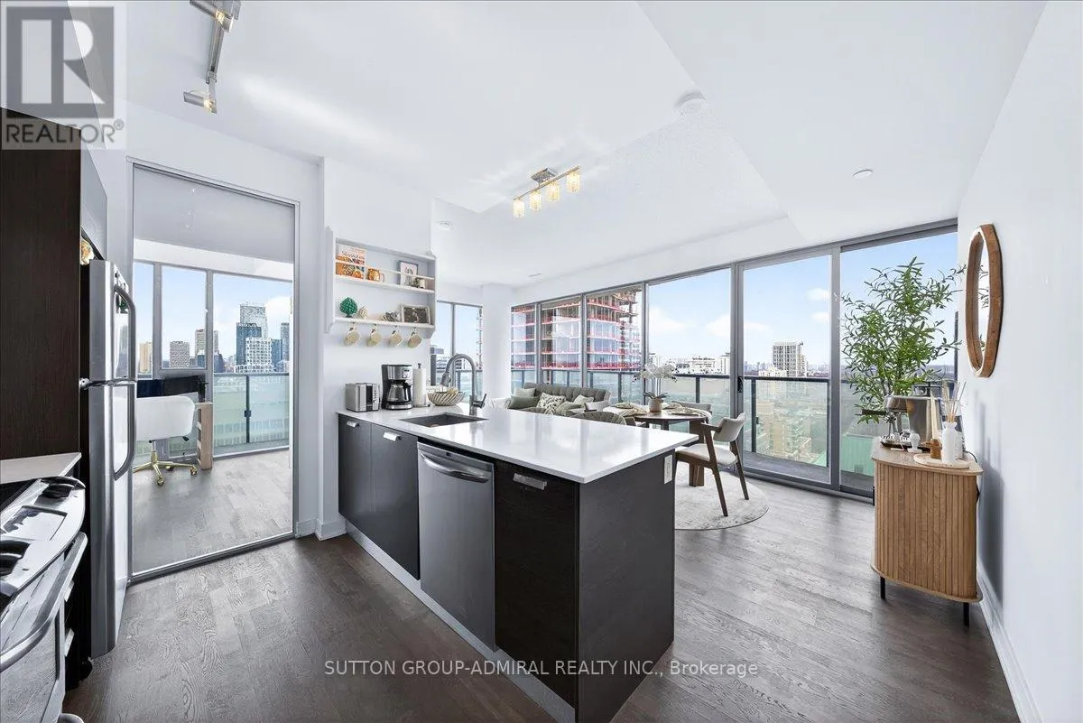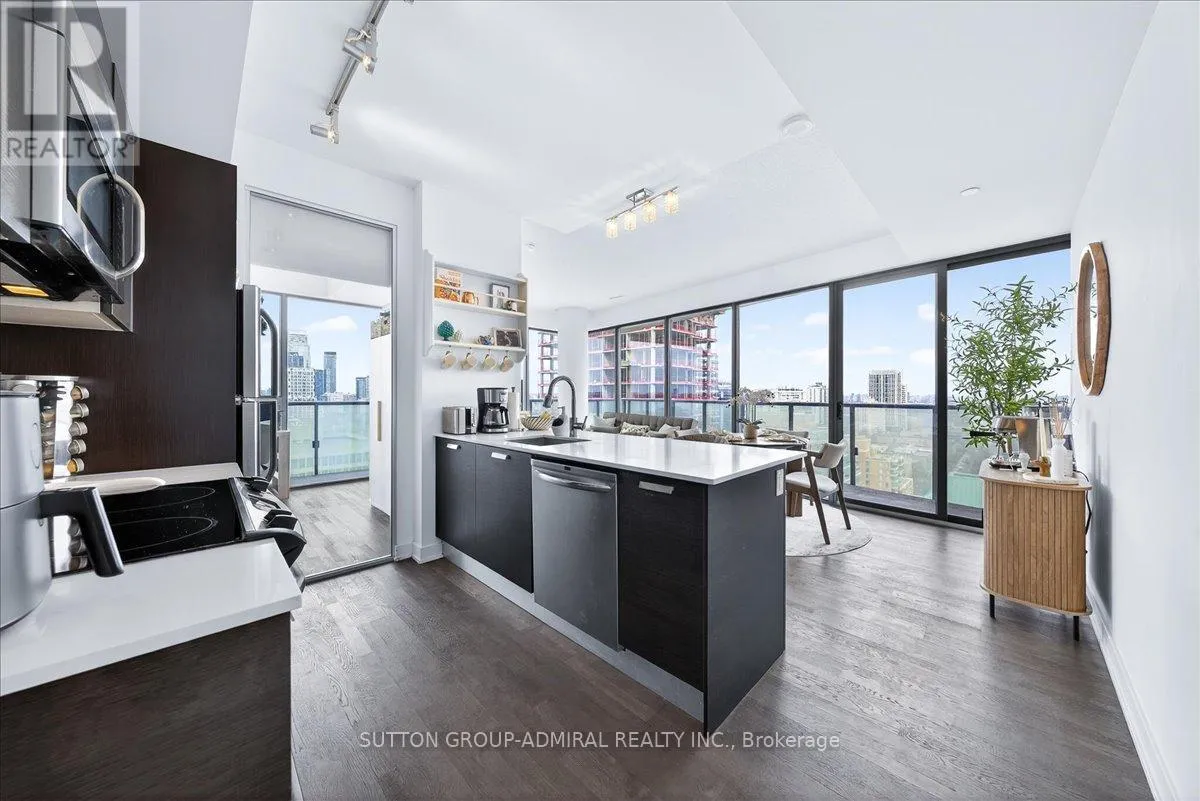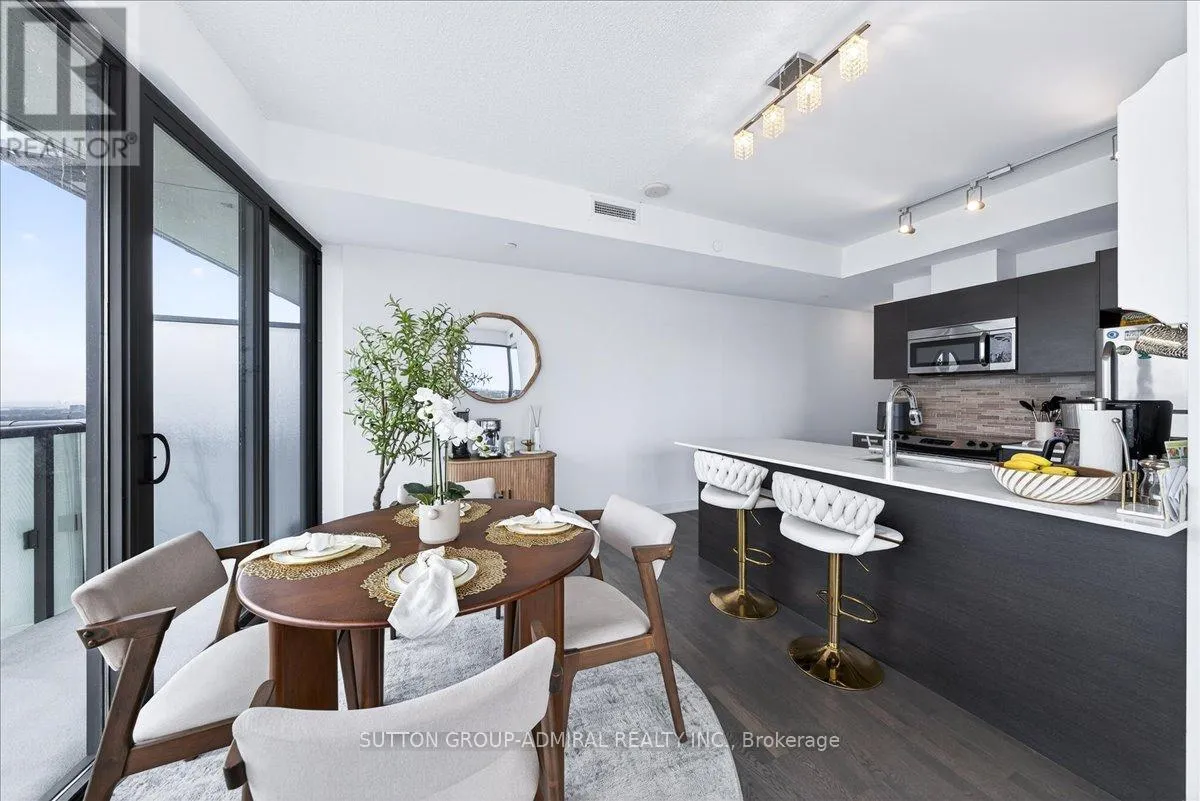 Cross Streets: Yonge And Davisville. ** Directions: Yonge and Merton. Rarely offered 1+Den suite at the prestigious MYC Condos, ideally located in the heart of Midtown Toronto at Yonge & Merton. This beautifully designed 767 sq.ft. residence features a highly functional open-concept layout with soaring high ceilings and floor-to-ceiling windows, filling the space with natural light and showcasing breathtaking 280-degree panoramic city views.The modern kitchen is finished with sleek cabinetry, quartz countertops, and stainless steel appliances, seamlessly flowing into spacious living and dining areas-perfect for both everyday living and entertaining.Step out onto your expansive 260 sq.ft. wrap-around balcony with two walk-outs-an exceptional outdoor space to enjoy both sunrise and sunset, host guests, or unwind above the city.The spacious den, complete with a sliding door, offers true versatility and can easily function as a second bedroom, private office, or guest space.Unbeatable location just steps to Davisville Station, the Kay Gardner Beltline Trail, and an array of boutique shops, cafes, and restaurants along Yonge Street.Residents enjoy premium amenities including concierge, fitness centre, media room, party/meeting room, rooftop terrace, and visitor parking.A rare opportunity to own in one of Midtown's most sought-after residences, offering the perfect blend of lifestyle, location, and elevated urban living. (id:27476)
