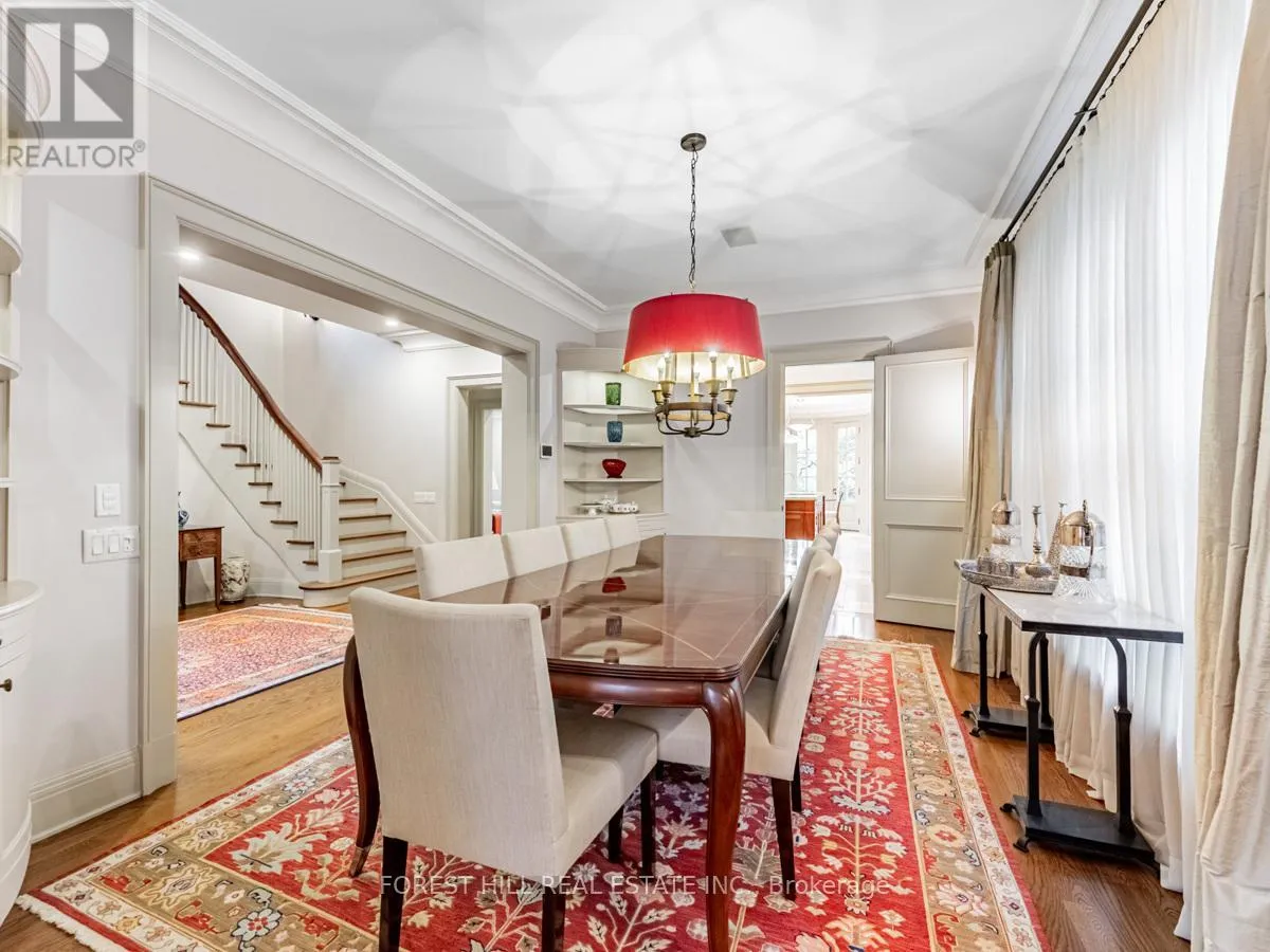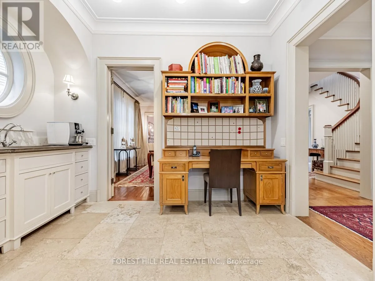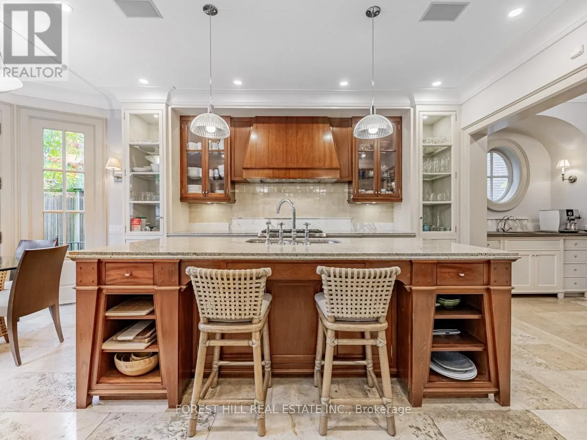Spadina Rd This exceptional residence, custom-designed in 2000 by the esteemed firm of Katharine Newman and Peter Cebulak, exemplifies luxurious living with the finest materials throughout. Lot pies out to 60 feet in rear. The home begins with a vestibule featuring an armoire closet and a chic two-piece powder room. The expansive layout flows effortlessly from the large foyer into spacious principal rooms, creating an airy and inviting atmosphere. The gourmet kitchen offers a coffee station, built-in desk, oversized island, and a bright breakfast room with French doors opening to an oversized terrace, perfect for al fresco dining or quiet relaxation. The adjacent family room features a fireplace, custom shelving, and walk-out access to the stone terrace. Separate living and dining rooms provide additional versatility. A mudroom with a separate entrance and ample closet space completes the main floor, which boasts 9'6" ceilings. Upstairs, the south-facing primary suite offers a walk-in closet and spa-like ensuite with dual vanities. Three additional generously sized bedrooms with abundant closet space and large windows, along with beautifully appointed bathrooms, complete this level. The lower level features heated floors, a large great room with built-in bookshelves and a wall-mounted TV, a gym/office with built-in desks, and a fifth bedroom with a large closet. A fully-finished laundry room with ample storage, a walk-in wine cellar, and an additional four-piece bath provide exceptional convenience. The spectacular stone terrace leads to professionally landscaped gardens with a stone BBQ area. The detached stone garage, built in 2010, complements the homes exterior and features a heated driveway. Ideally located within walking distance to the best private schools (BSS and UCC, )as well as shops, restaurants, transit, and places of worship. This home offers the perfect blend of luxury, convenience, and style! (id:27476)