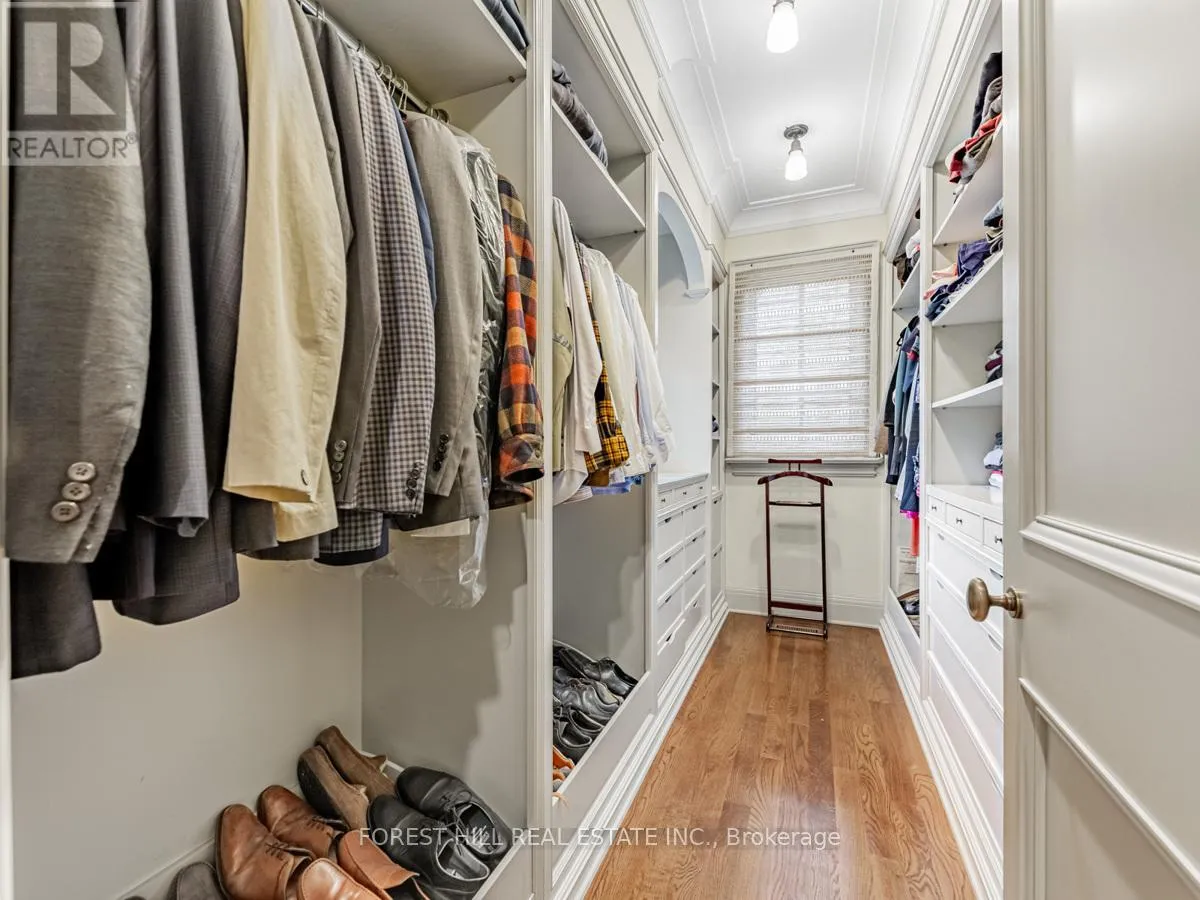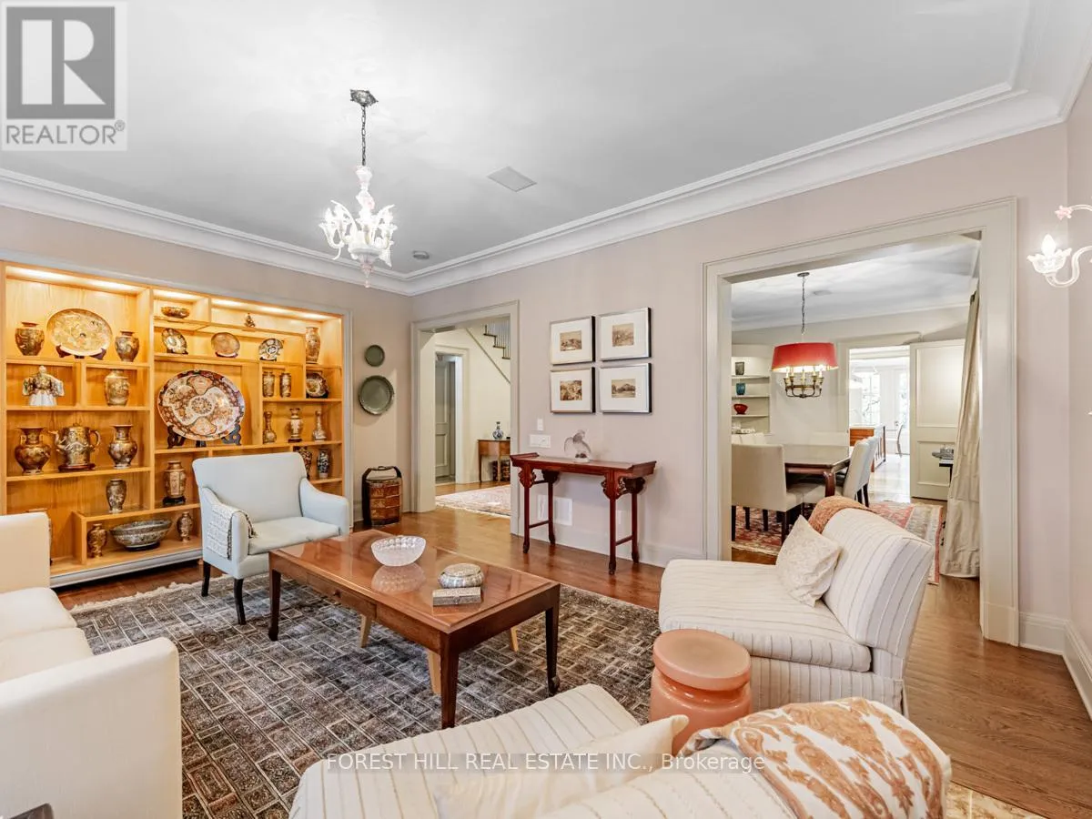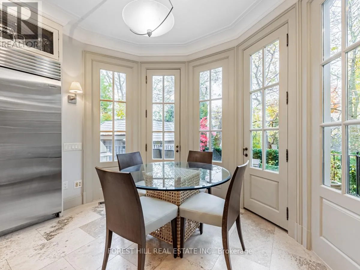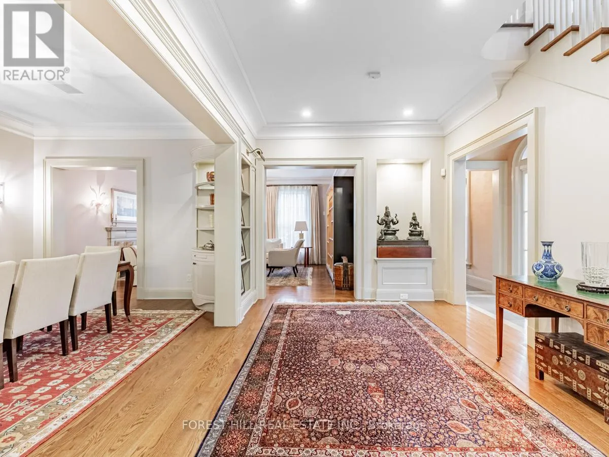 Spadina Rd This exceptional residence, custom-designed in 2000 by the esteemed firm of Katharine Newman and Peter Cebulak, exemplifies luxurious living with the finest materials throughout. Lot pies out to 60 feet in rear. The home begins with a vestibule featuring an armoire closet and a chic two-piece powder room. The expansive layout flows effortlessly from the large foyer into spacious principal rooms, creating an airy and inviting atmosphere. The gourmet kitchen offers a coffee station, built-in desk, oversized island, and a bright breakfast room with French doors opening to an oversized terrace, perfect for al fresco dining or quiet relaxation. The adjacent family room features a fireplace, custom shelving, and walk-out access to the stone terrace. Separate living and dining rooms provide additional versatility. A mudroom with a separate entrance and ample closet space completes the main floor, which boasts 9'6" ceilings. Upstairs, the south-facing primary suite offers a walk-in closet and spa-like ensuite with dual vanities. Three additional generously sized bedrooms with abundant closet space and large windows, along with beautifully appointed bathrooms, complete this level. The lower level features heated floors, a large great room with built-in bookshelves and a wall-mounted TV, a gym/office with built-in desks, and a fifth bedroom with a large closet. A fully-finished laundry room with ample storage, a walk-in wine cellar, and an additional four-piece bath provide exceptional convenience. The spectacular stone terrace leads to professionally landscaped gardens with a stone BBQ area. The detached stone garage, built in 2010, complements the homes exterior and features a heated driveway. Ideally located within walking distance to the best private schools (BSS and UCC, )as well as shops, restaurants, transit, and places of worship. This home offers the perfect blend of luxury, convenience, and style! (id:27476)