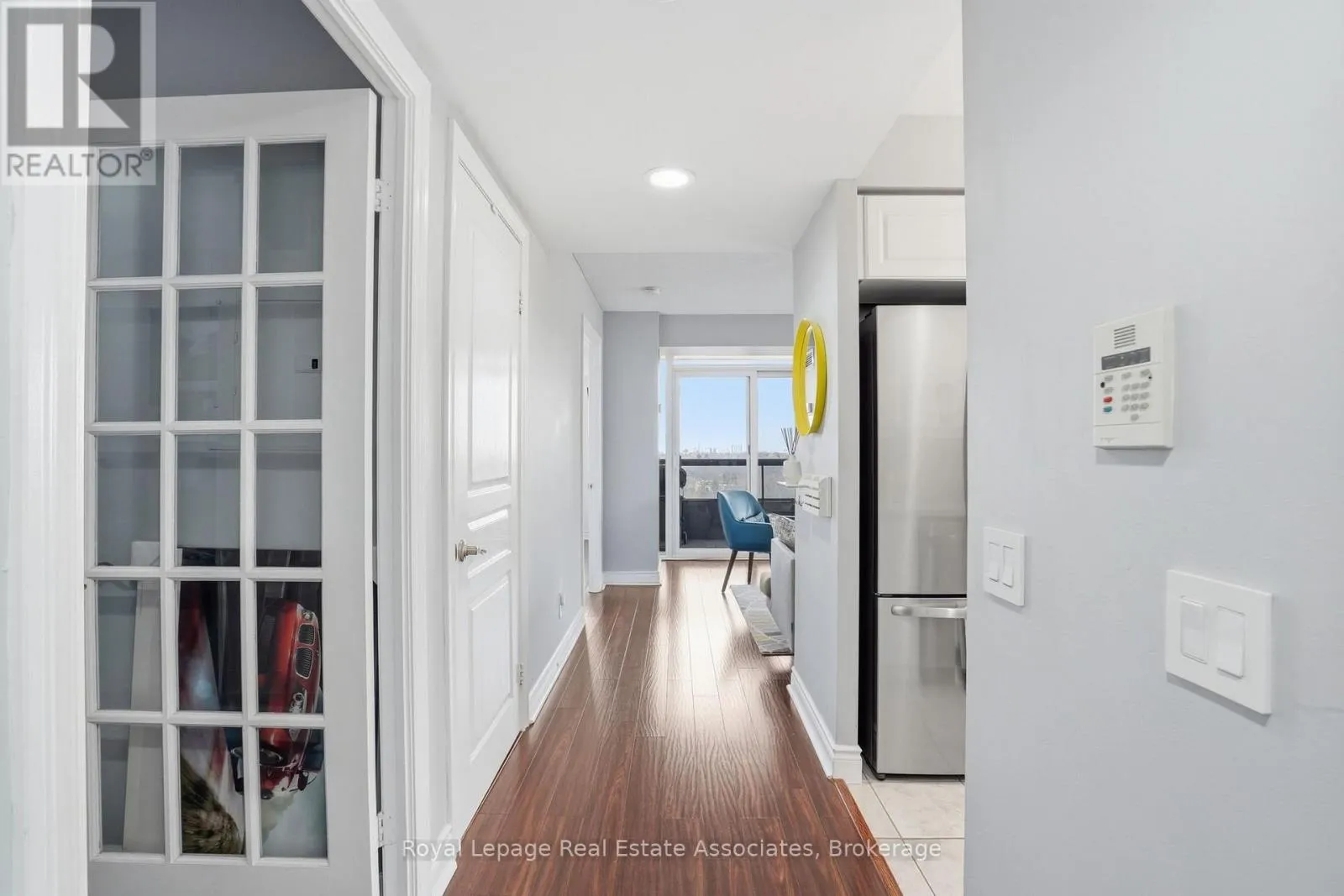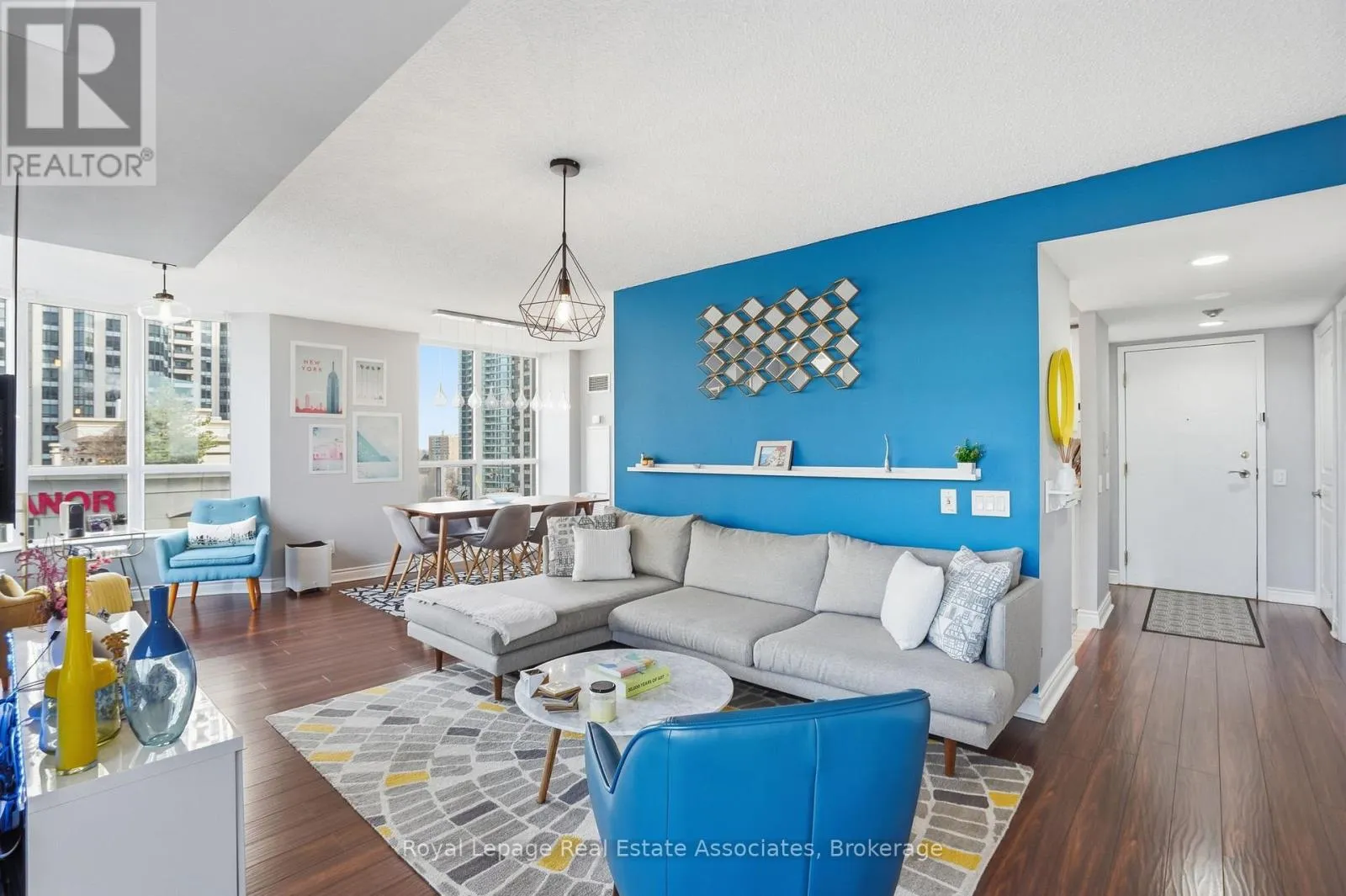 Church & Yonge St Welcome to 5 Northtown Way #1005. This stunning 2-bedroom + Den, 2-bathroom condo unit offers panoramic west-facing views and over 1,000 sq. ft. of beautifully updated living space. Featuring engineered hardwood floors throughout, dark wood finishes, neutral paint tones, and pot lights, this sun-drenched suite is the one you've been waiting for.Designed with both function and style in mind, the galley kitchen showcases bright white cabinetry, granite countertops, stainless steel appliances, a newer fridge (replaced December 2025), and a brand-new dishwasher. The spacious main living area offers a seamless flow, perfect for everyday living and entertaining.The primary retreat features a walk-in closet and a private three-piece ensuite, complete with upgraded bathroom sink countertops. The second bedroom is ideal as a home office or nursery, while the main four-piece bathroom also features upgraded sink countertops, ceramic tile finishes, and a stand-up shower.Additional highlights include an upgraded stacked LG washer and dryer for added convenience. Enjoy living in this well-maintained building, ideally located just minutes from all major amenities such as Highway 401, restaurants, parks, trails, and schools. Just a short walk to Finch and North York Centre TTC stations, with a Metro grocery store conveniently located on the P1 level, allowing for easy grocery runs via underground access.Premium building amenities include outdoor tennis courts, an indoor pool, hot tub, and fully equipped gym, a golf simulator, communal terrace with BBQ grills, a party room, and a rare 5-pin bowling alley, along with ping pong, billiards, and a quiet library space-offering the perfect blend of recreation and relaxation right at your doorstep. (id:27476)