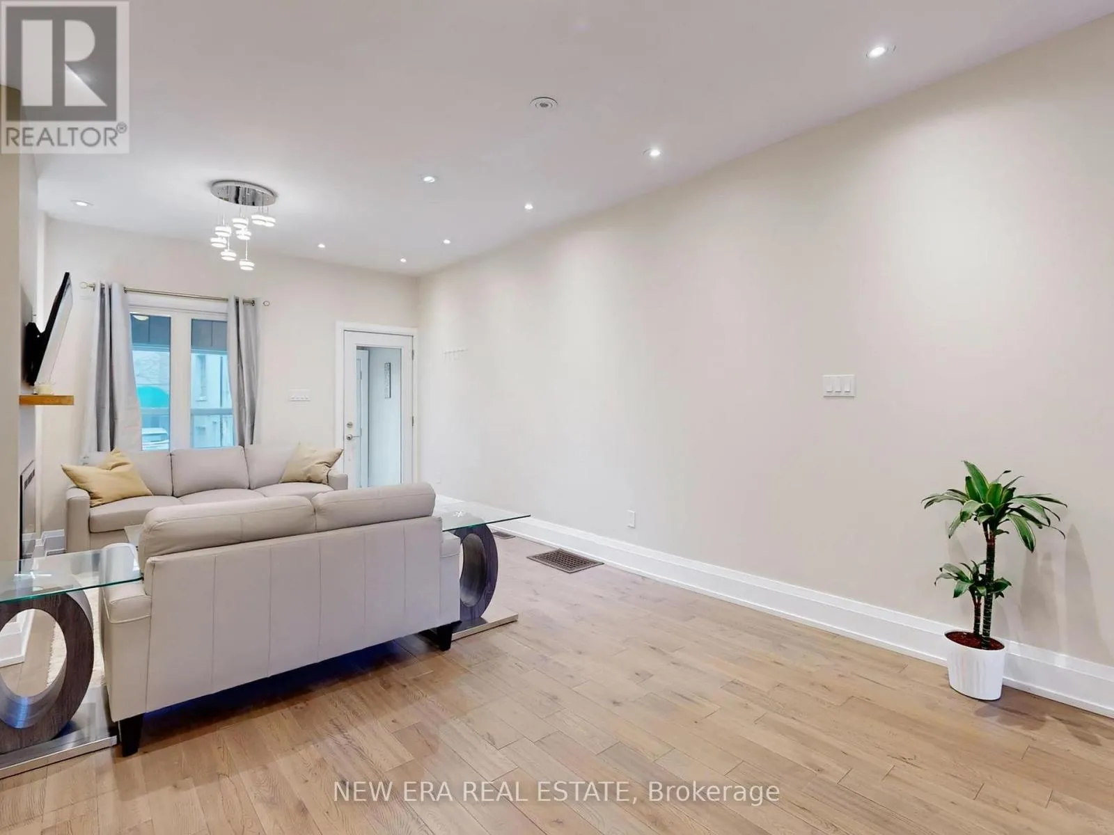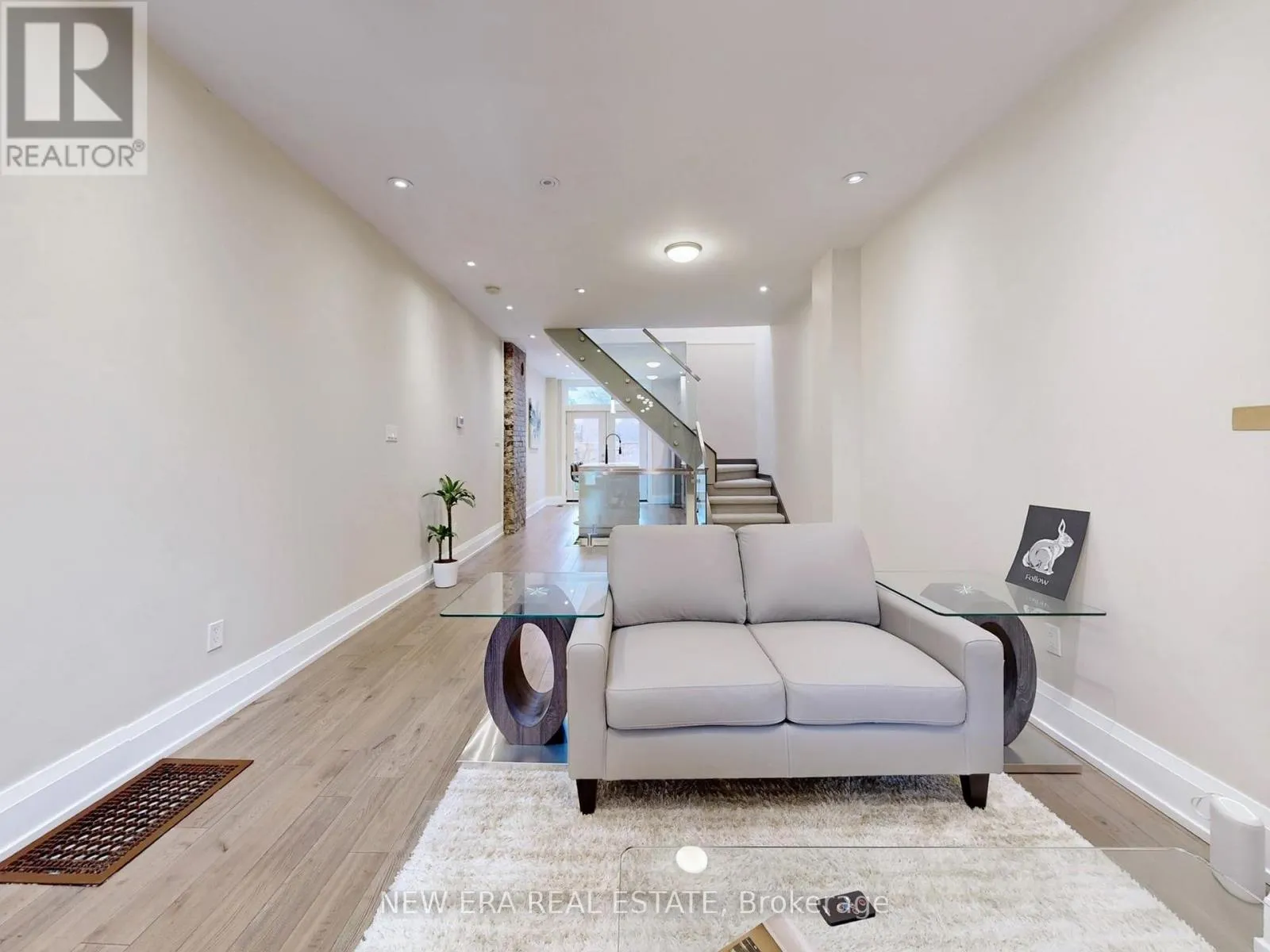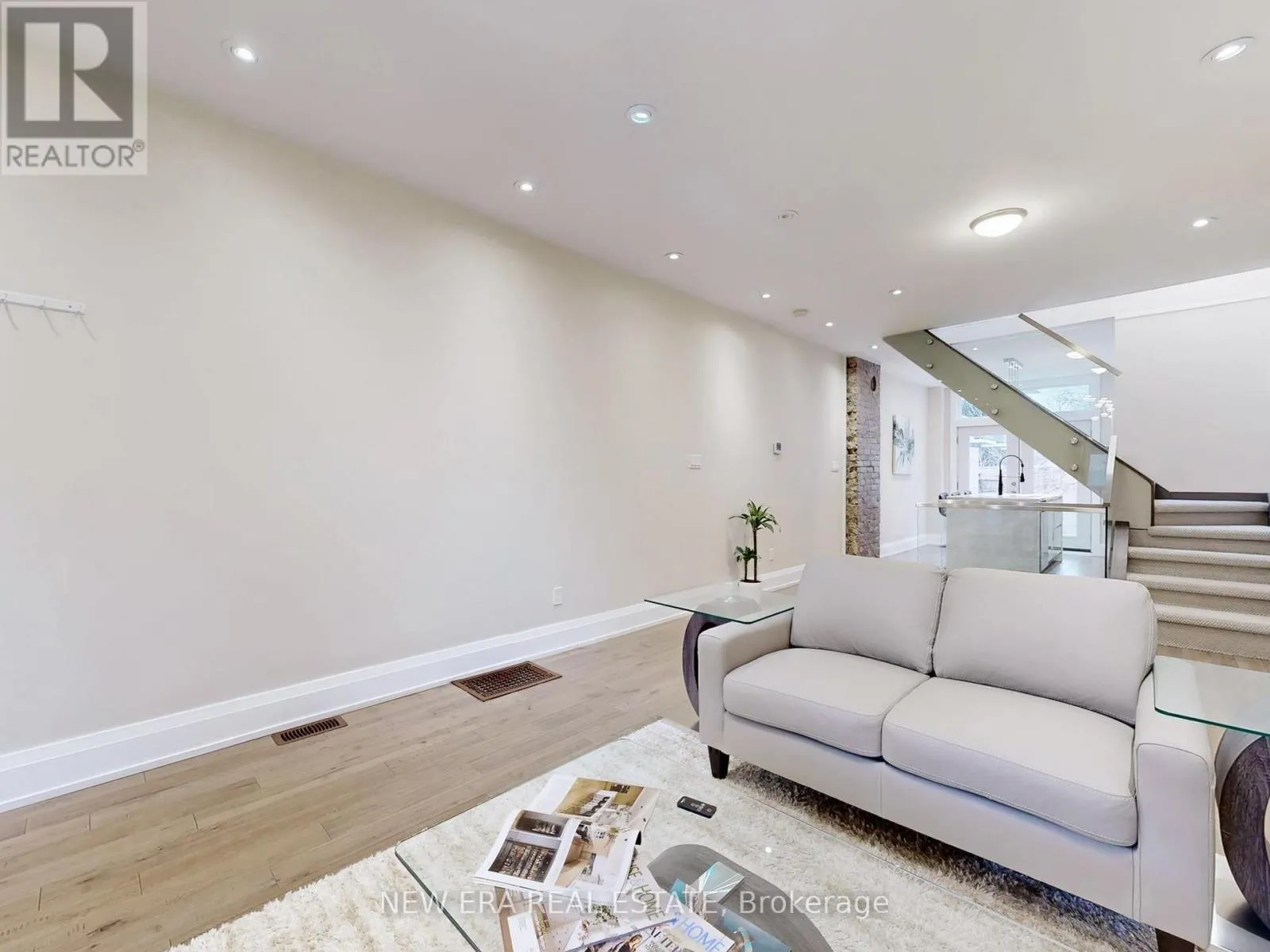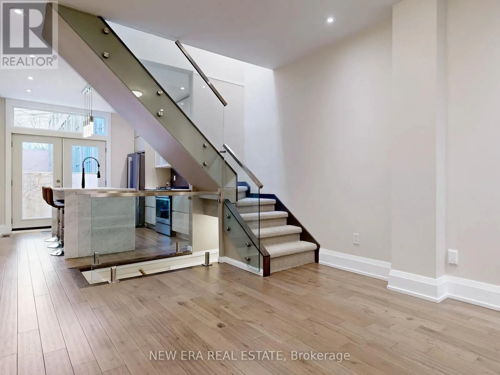 Leslie St & Queen St E Offers gratefully accepted Wednesday April 1st at 6pm. 75 Laing is the end-unit unicorn we didn't know we needed. Not a flip that skipped quality and care but rather a full 2020 gut-to-studs rebuild that nails quiet luxury without shouting about it. Rockwool in walls/ceilings kills city noise, spray-foam roof, new mechanicals, tankless hot water, owned high-efficiency furnace/AC, so bills stay low, life stays calm. Kitchen's pure chef vibes: huge quartzite waterfall island, pro gas range, premium appliances, pot lights everywhere. Solid maple hardwood throughout, 9ft main ceilings, incredible 14ft vaulted primary, custom glass-railing staircase, oversized baseboards, skylights pouring in light. Two sleek full baths, second-floor laundry (huge win), blank canvas lower level for office/gym/media. End-unit bonus: windows on three sides, real privacy, courtyard view instead of brick wall. Leslieville magic: steps to Maple Leaf Forever Park, 5-min to Greenwood (pool, rink, dog park), Queen streetcar to downtown in 15, Farmboy/Loblaws nearby, endless Queen East dining, hip yet family feel. Low-maintenance fenced yard, two-tiered deck, street permit parking. Turn-key modern in one of Toronto's best walkable spots, not cookie-cutter. Who's ready to move in? (id:27476)
