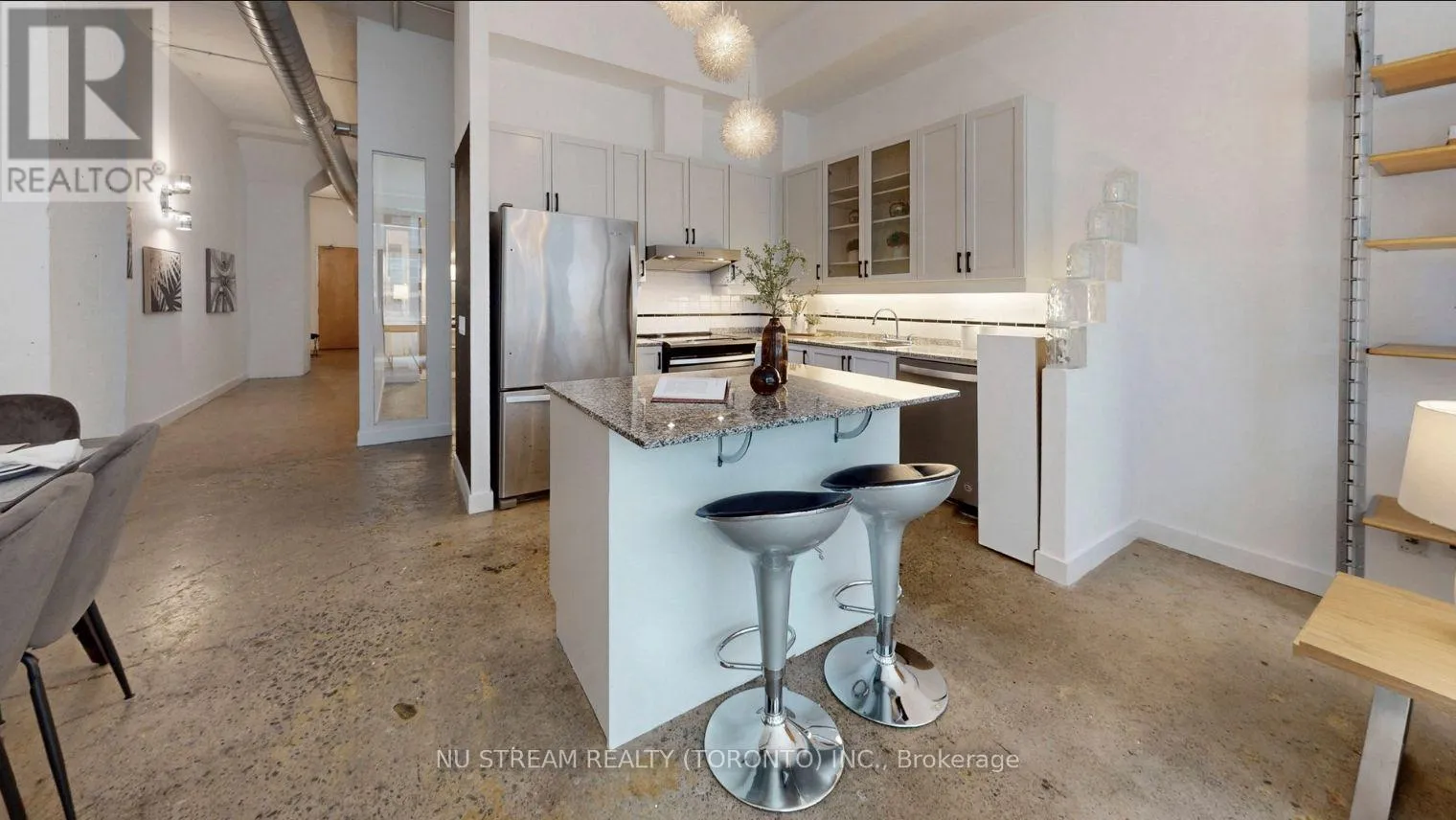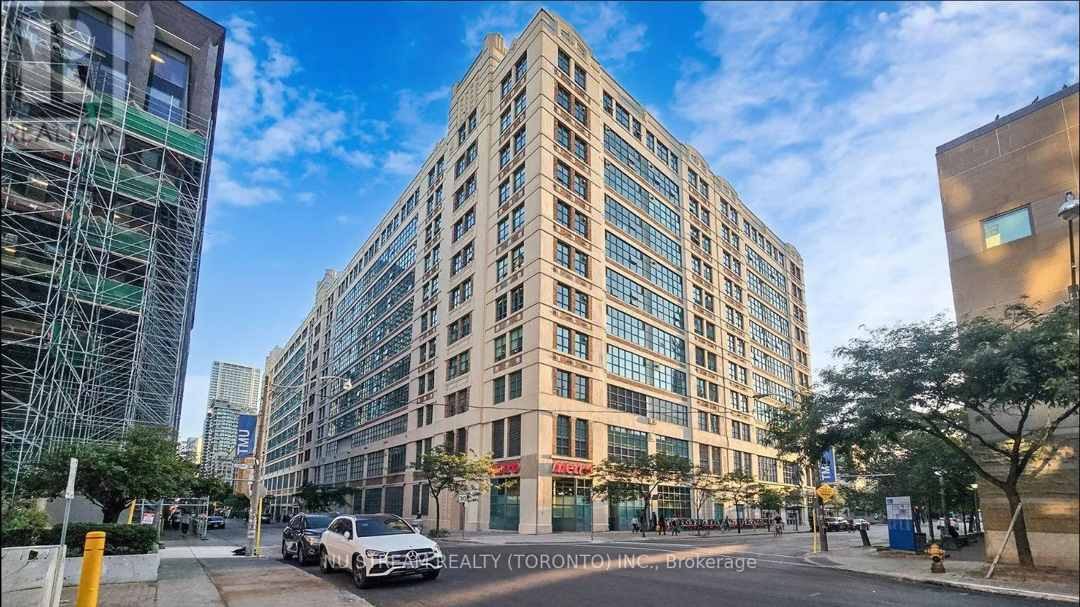 Church and Dundas Welcome to Suite 630 at the iconic Merchandise Lofts! This stunning hard loft offers over 1,000 sq ft of open-concept living with 2 spacious bedrooms, 1 bathroom and parking. Freshly painted and filled with character, the suite features soaring 12-foot ceilings, polished concrete floors, and exposed ductwork that seamlessly blends classic loft elements with a modern kitchen, dining, and living space-perfect for entertaining. Enjoy unbeatable convenience just steps to the Eaton Centre, TMU subway station, streetcar access nearby, and a Metro grocery store in the building. Residents have access to exceptional amenities including a 24-hour concierge, full fitness centre with basketball court, indoor pool, rooftop deck, and rooftop dog walk. Don't miss this incredible opportunity! (id:27476)