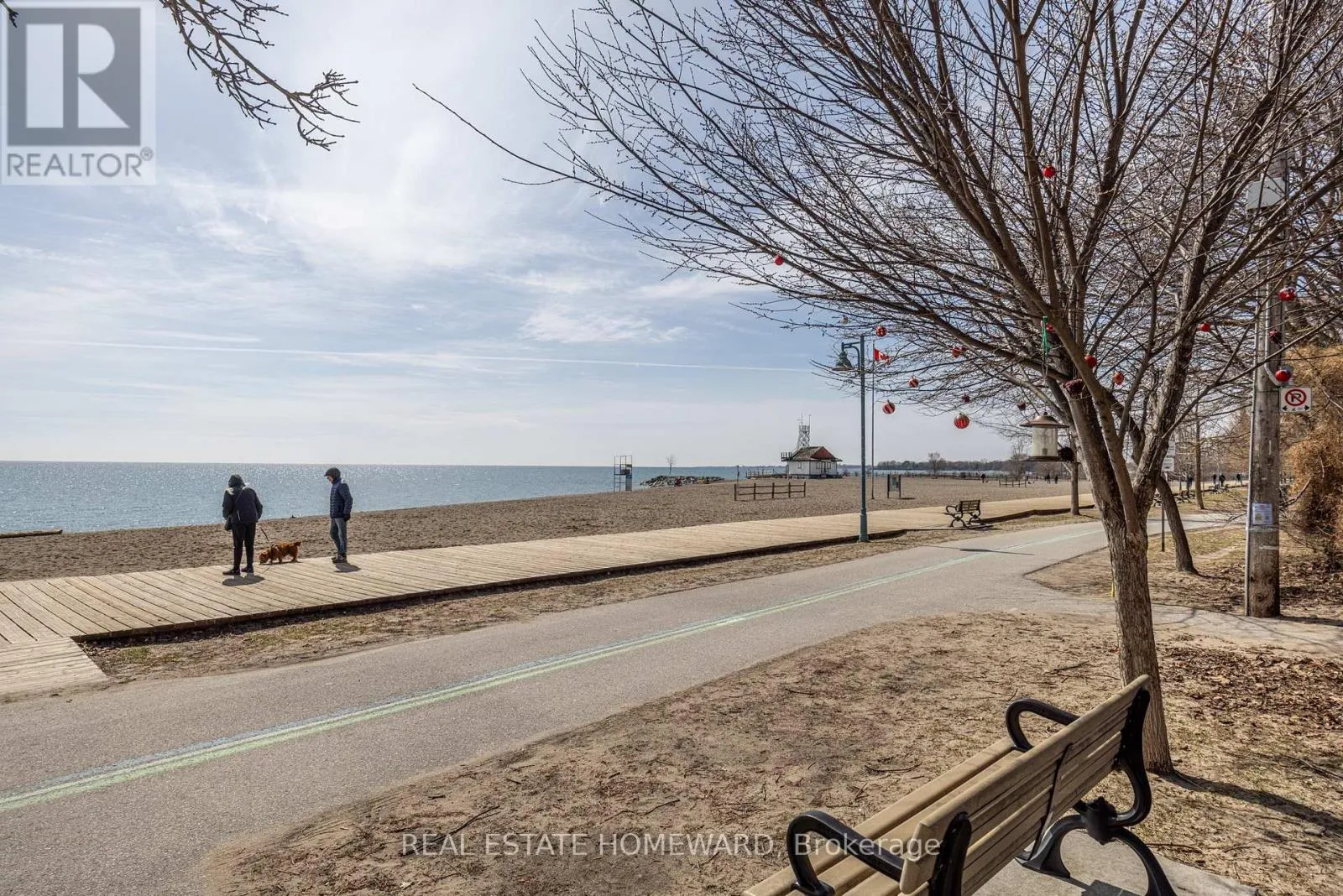 Cross Streets: Woodbine/Lake. ** Directions: 2nd traffic light east of woodbine; south of Queen St. East. Well maintained recently incorporated co-ownership unit steps to lake and boardwalk, transit, shopping, restaurants, library etc. Main floor unit with very spacious rooms, gum wood trim, stained glass, antique fireplace (not functional) with built in shelves, basement sitting room could be 2nd bedroom, 2 bathrooms, long walk-in closet in basement next to sitting room. Maintenance fees include landscaping and snow removal in addition to property taxes, building insurance and heat (Newer Rental Combo heat and hot water unit). Shared parking. Lot size per MPAC is for 50 and 52 Wineva combined. (id:27476)