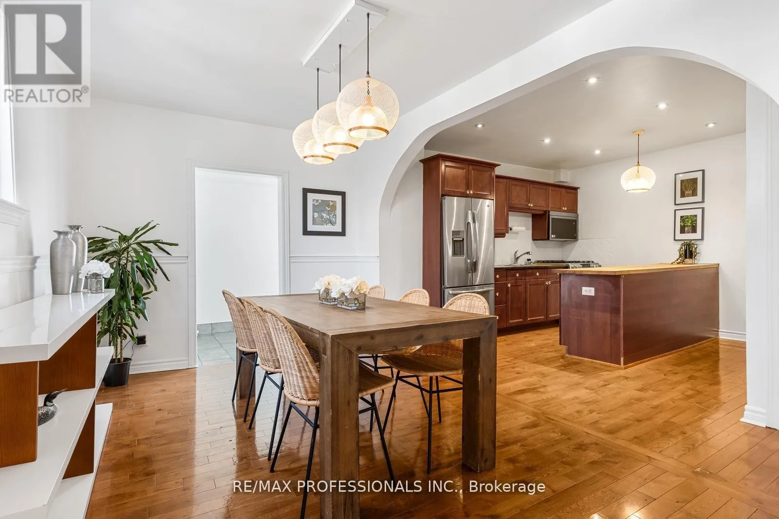 Jane St/Eglinton Ave W Welcome to 1 Gray Avenue, a charming 3-bedroom, 2-bathroom detached home with parking that blends classic character with thoughtful modern upgrades. Step inside to find beautiful hardwood floors, upgraded lighting, and elegant traditional archways that add warmth and timeless appeal throughout the home. Decorative wainscotting enhances the main living spaces, creating a refined yet inviting atmosphere. The bright kitchen is designed for both everyday living and entertaining, featuring stone countertops, stainless steel appliances, a gas stove, and a butcher block island that offers the perfect gathering spot. The front foyer/mudroom features in-floor heating, providing comfort during colder months while adding practical everyday functionality. Upstairs, the bedrooms feature Cape Cod style ceilings. The primary bedroom offers extensive custom built-in storage, maximizing space and organization. The home also includes a finished basement with plenty of storage, providing flexible space for a recreation room, home office, gym, or additional living area. Step outside to a private backyard ready to become an entertainer's dream, complete with a gas hookup ideal for a BBQ or outdoor kitchen setup. The home is also equipped with solar panels on the roof, adding an energy-efficient feature with long-term benefits. Located in a convenient and growing west Toronto neighbourhood, you're within walking distance to grocery stores, parks, and everyday amenities, as well as excellent transit options including the nearby Mount Dennis Station, making commuting across the city simple. A fantastic opportunity to own a move-in ready detached home with parking, character, and modern upgrades in Toronto. (id:27476)