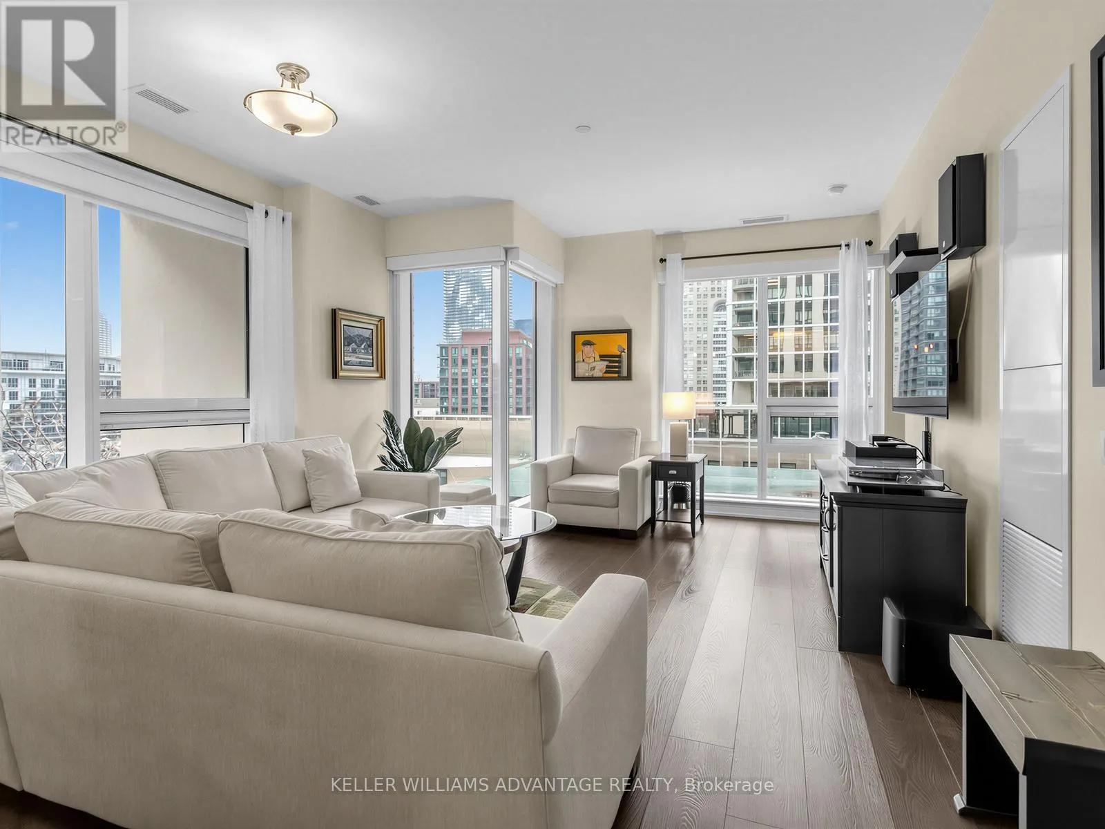 Yonge & Wellington Luxury Residences 88 Scott St. Where Residents Enjoy Unparalleled High End Amenities and 24hr Top Service Concierge. This South-East sun soaked corner suite offers a 2+1bedroom 1,040 sqft open concept living room layout with proper large dining room perfect for entertaining family and friends. Large floor to ceiling windows soak the space with natural light creating a bright and sophisticated space and offer an incredible view of Old Town Toronto Architecture and the famous Breezy Park. Located within steps to the Financial District, The World Renowned St. Lawrence Market, Scotia Bank Arena, Rogers Centre, King St. Subway Station, The PATH, Berczy Park, Union Station, Restaurants, Bars, Cafes, the Waterfront and so much more... A 100% Walk Score. The modern kitchen features integrated appliances, premium cabinetry, and a large family gathering quartz counter. Gather for meals in a large purpose build dining room next to the kitchen ideal for meal time comfort. A split-bedroom layout is perfect for space and privacy. The primary suite includes a large closet space and a modern large ensuite. The spacious second bedroom and second bath provide space options for multiple uses including a second bedroom, nursery, office or gym... At 88 Scott St residents enjoy premium amenities including the Luxurious and Must-See 47th floor Sky Lounge with stunning panoramic city views, a 6th floor theatre room, a state of the art fitness centre, indoor salt water pool, sauna, party room, and of course 24 hour concierge service.This is Luxury Living in Toronto. (id:27476)