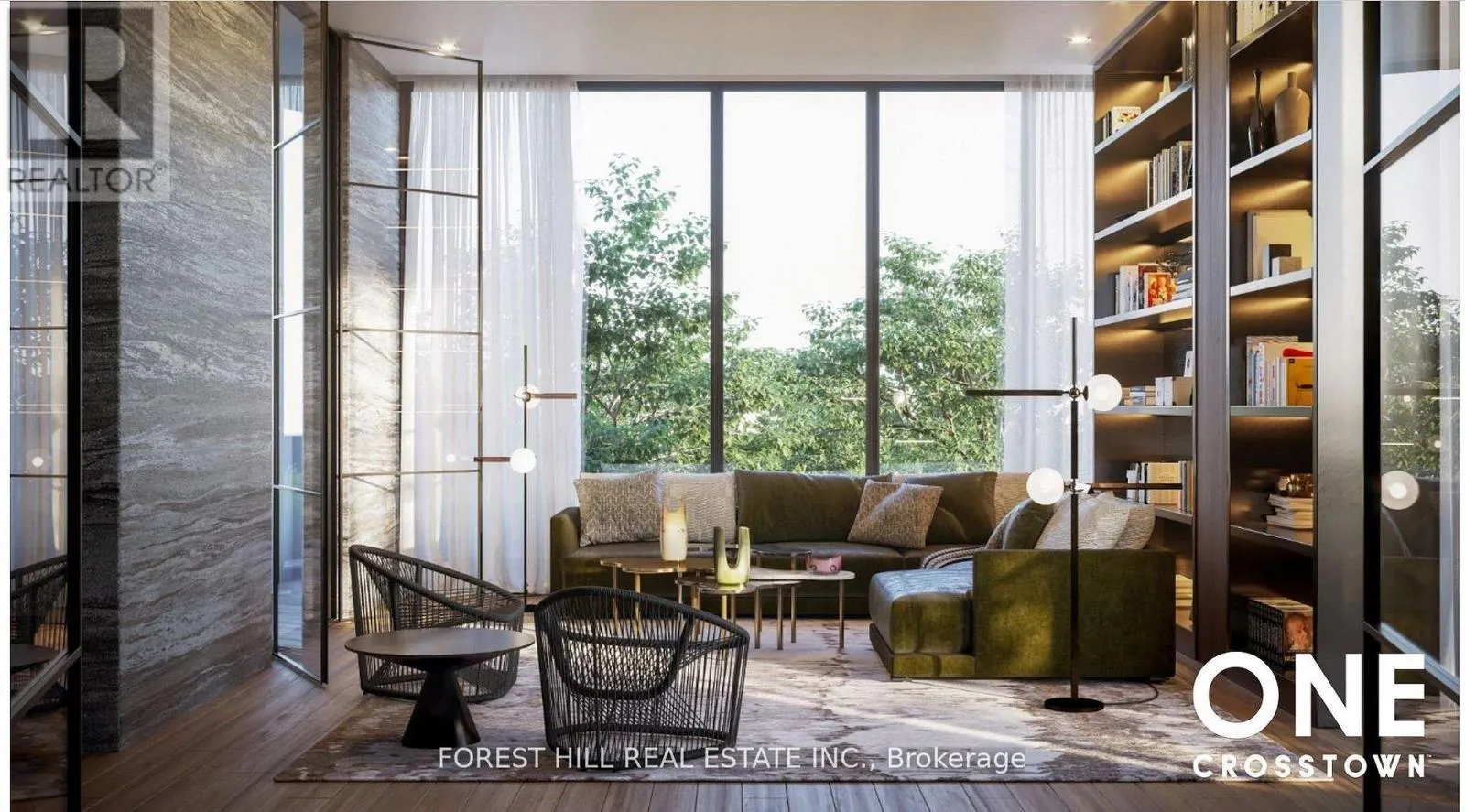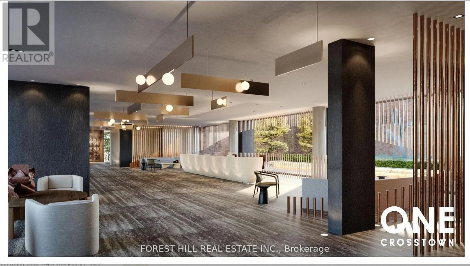 Don Mills Rd/ Eglinton Ave Welcome to suite 2818 at One Crosstown! This brand new, modern and spacious one bedroom home comes with large windows, high ceilings and fantastic views. The open concept layout is functional and pleasing to the eye. The modern kitchen features integrated appliances and sleek finishes for everyday living. Upgrades include upgraded builder decor and colour selections, deluxe blinds, frameless shower door, additional ceiling light fixtures, TV backbox with electrical (for wall mount TV) and a high quality shower head.The building features impressive amenities including a state-of-the-art fitness centre, yoga room, basketball court, co-working lounge, art studio, residents' lounge, pool room, cafe, pet wash station, party room, rooftop BBQ and dining/party areas, games room and visitor parking (amenities subject to builder completion). Exceptional location in the master-planned Crosstown community and just steps to the Eglinton Crosstown LRT, convenient access to major highways and close proximity to shopping, dining and parks! A perfect unit in a perfect location to call your home! **Please note: lobby and outside pics are renderings from the developer's website.** (id:27476)
