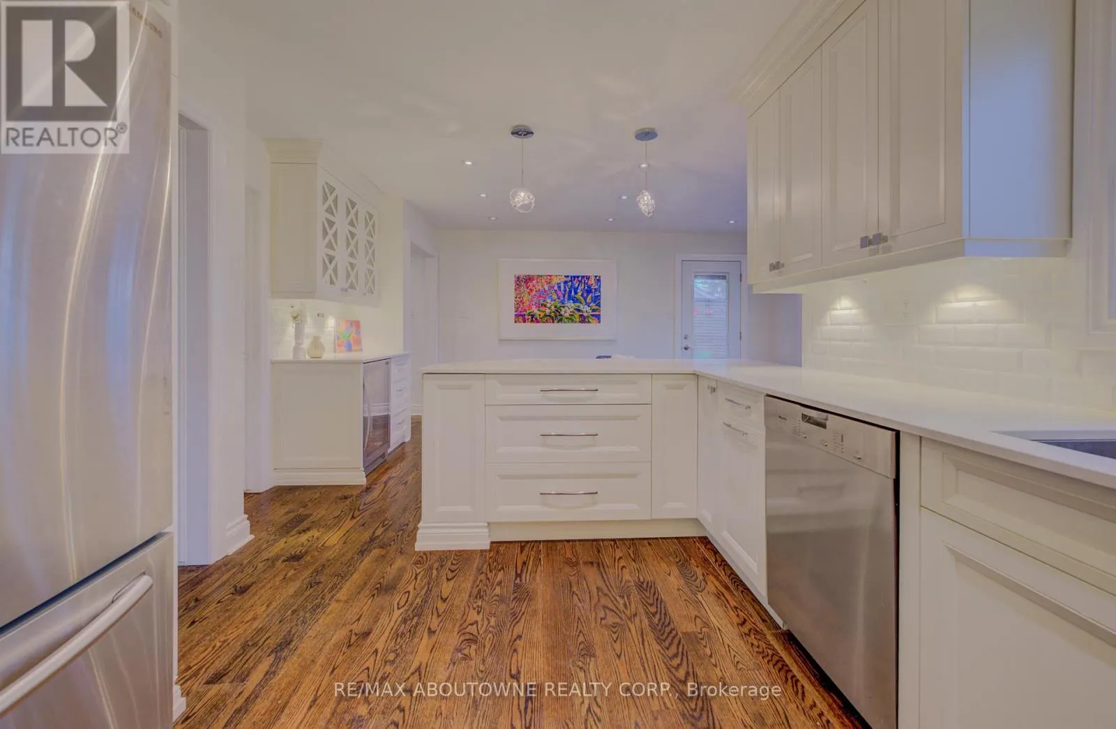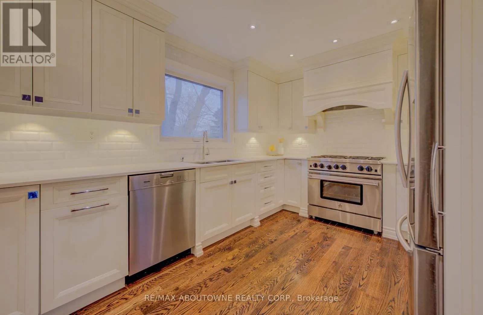 Cross Streets: Bloor St W & Kipling Avr. ** Directions: Bloor St W & Martin Grove. Nestled in the highly sought-after Burnhamthorpe Gardens neighbourhood of Toronto, this custom home offers approx. 4400 sqft total living space on a rare 157-ft, mature treed lot with desirable west exposure. Just a short walk to Kipling TTC Hub & Kipling GO, providing seamless access to downtown, airport & beyond. Top French & English schools & parks all a walk away. A striking first impression is created by the custom front door & grand foyer with 19-foot ceilings. The main level boosts 9-foot ceilings & rich hardwood flooring. The formal living/dining areas are generously proportioned, while the inviting family room is anchored by a dramatic floor-to-ceiling wood-burning fireplace. A private main floor office. The fully renovated gourmet kitchen is bathe din light from the garden, it is stylish & functional with quartz countertops, white subway tile backsplash, S/S appl. incl. a gas stove, a spacious walk-in pantry, breakfast bar & a garden door W/O to a private deck overlooking the landscaped yard. New custom built laundry room. Upstairs, four generously sized beds all feat. hdwd flooring. The primary suite was custom renovated with 5pce ensuite with heated floors, double vanity, quartz counters & a custom glass walk-in shower. The main 5pce has also been tastefully updated with double sinks & quality finishes, while architectural details such as a vaulted ceiling and double-door linen closet enhance the level's appeal. The fully fin lower level offers a sep entrance & staircase, making it ideal for multi-generational living. This space incl. a 5th bed or gym, along with a self-contained in-law suite complete with a full kitchen, 1 or 2 beds, a 4 pce bath, a comfortable family rm with electric fireplace & a W/O to the backyard. Outdoors, enjoy a large stone patio, an elevated deck & the added benefit of a detached workshop or secondary garage. An in-ground sprinkler system services the entire property, ensuring ease of maintenance and year-round curb appeal. (id:27476)