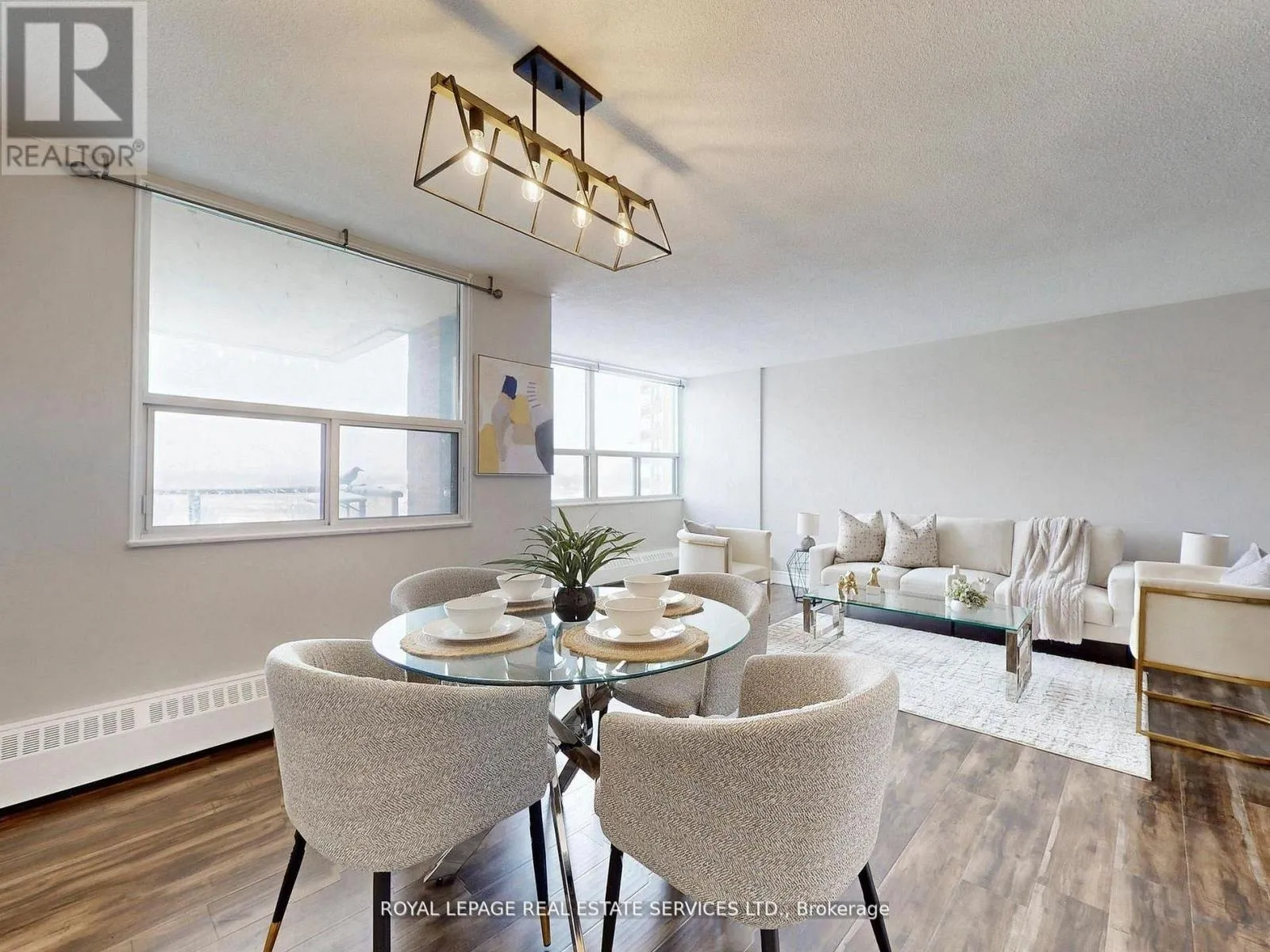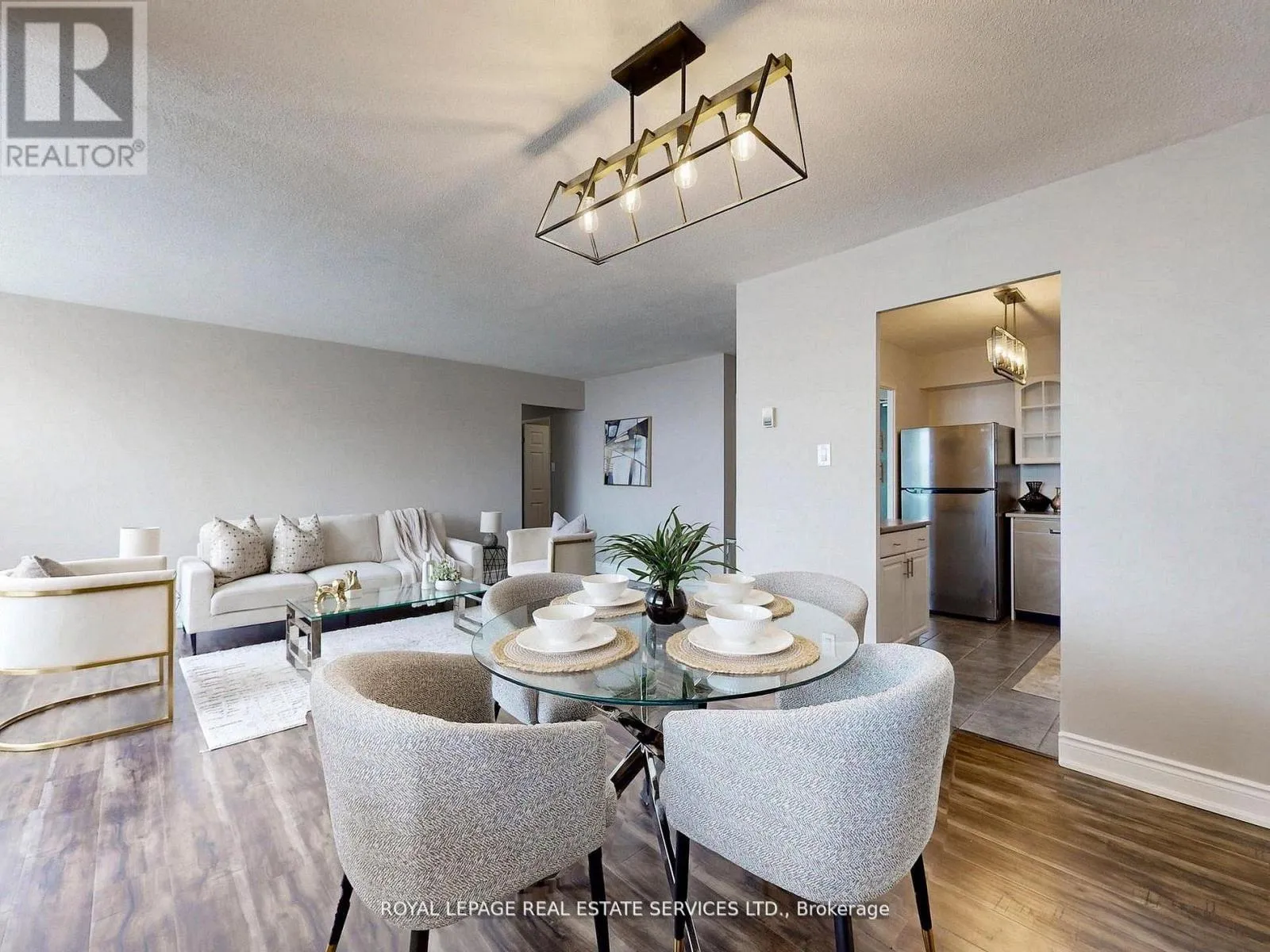Cross Streets: Rathburn Rd. & 427. ** Directions: -. Welcome to Suite 702-a beautifully updated, freshly painted 2-bedroom, 1-bathroom corner unit offering 1,100 sq. ft. of bright, open-concept living with underground parking. This inviting space features wide-plank neutral laminate flooring throughout and large windows that fill the living and dining areas with natural light, creating an ideal setting for both entertaining and relaxing. The upgraded eat-in kitchen showcases sleek white cabinetry, a modern backsplash, and stainless steel appliances. Both bedrooms are generously sized and finished with the same contemporary flooring for a seamless feel. Additional conveniences include side-by-side laundry, a large in-suite storage room, and a welcoming foyer with wide hallways. Enjoy your private balcony with open views and take advantage of the building's impressive amenities, including an outdoor pool, tennis court, gym, sauna, party room, visitor parking, and underground car wash. Perfectly located with easy access to transit, major highways, shopping, schools, medical centers, Centennial Park, and Toronto Pearson International Airport, this corner suite offers exceptional light, convenience, and outstanding value. A must-see! (id:27476)