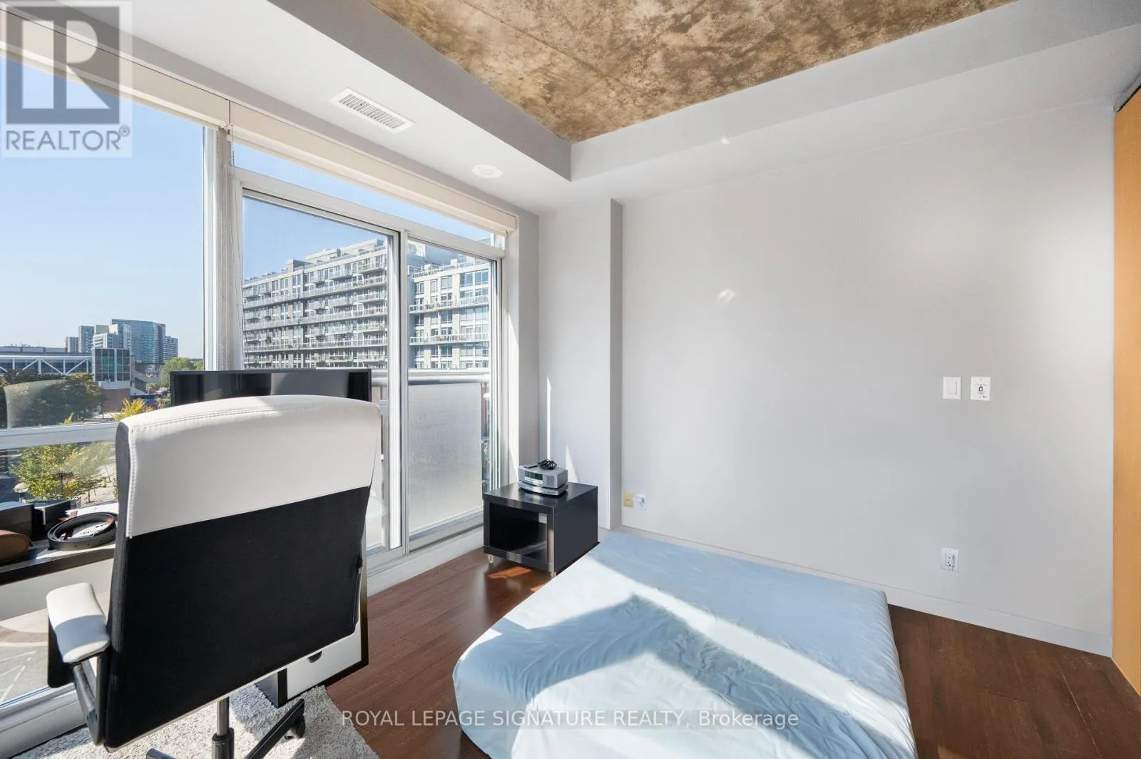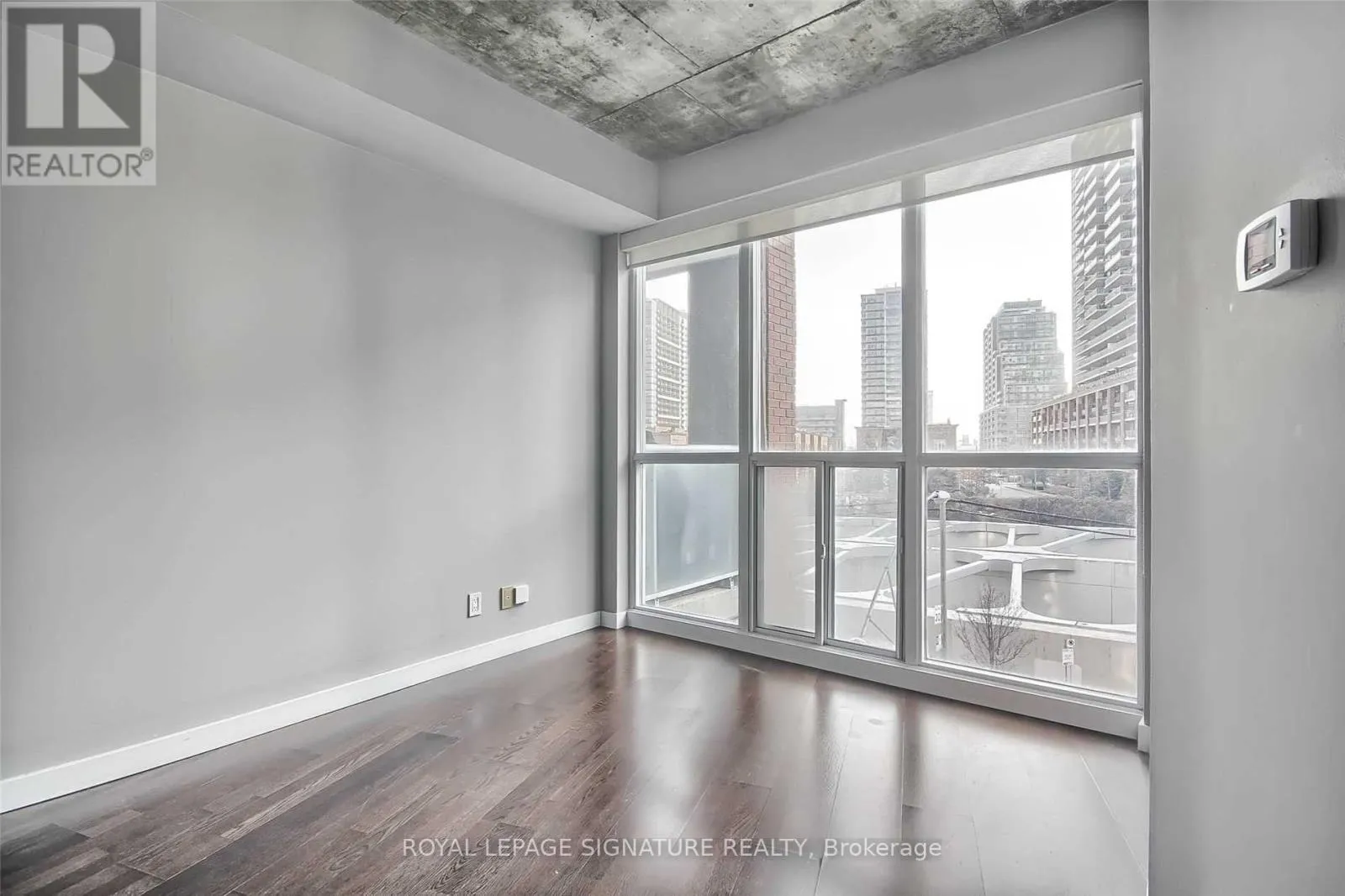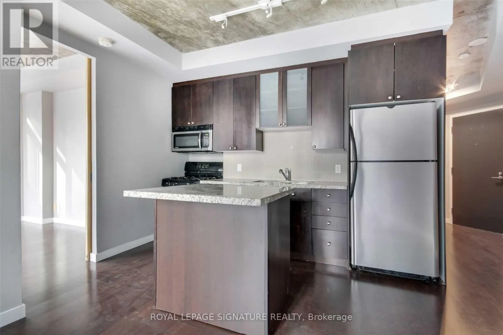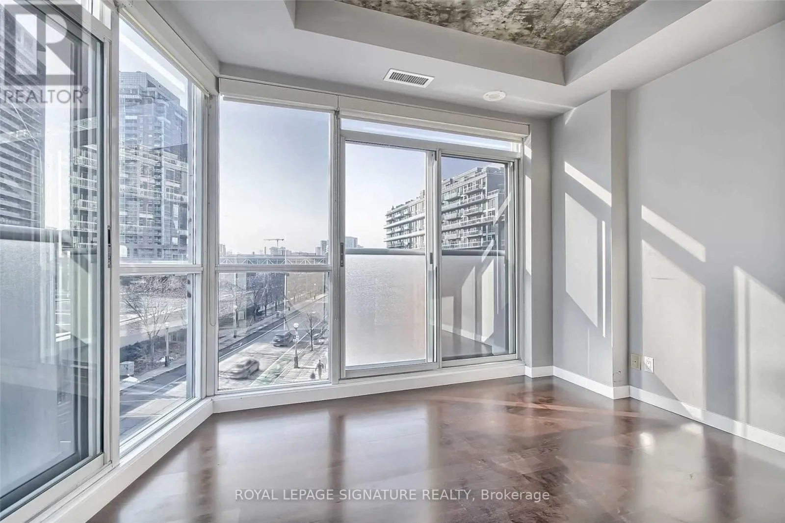 King St W & Shaw St Welcome to DNA One! Awesome unit on the sunny southwest corner in one of King West's most desirable buildings! Amazing lofty space with first rate amenities and an unbeatable location. Tall ceilings, wood flooring, granite counters, center island. Full size appliances with a gas range. Proper sized bedroom with space for furniture and a large closet. Beauty open concept layout with a cool shape. The corner exposure and huge windows make it bright and sunny. Steps to King West and everything that downtown has to offer. Shops, bars, restaurants, TTC and groceries are at your door and easy expressway access. Building amenities include a gym, party room, visitor parking, awesome rooftop terrace and concierge! Parking and locker included. A rare opportunity for a unit of this caliber! (id:27476)