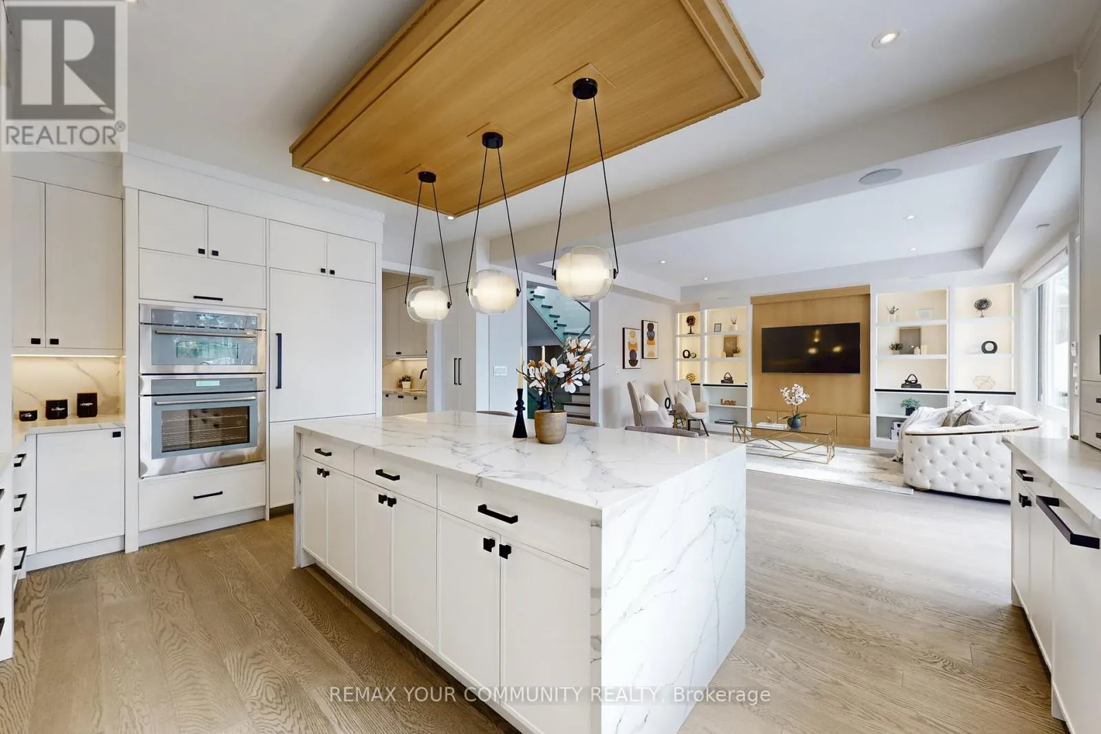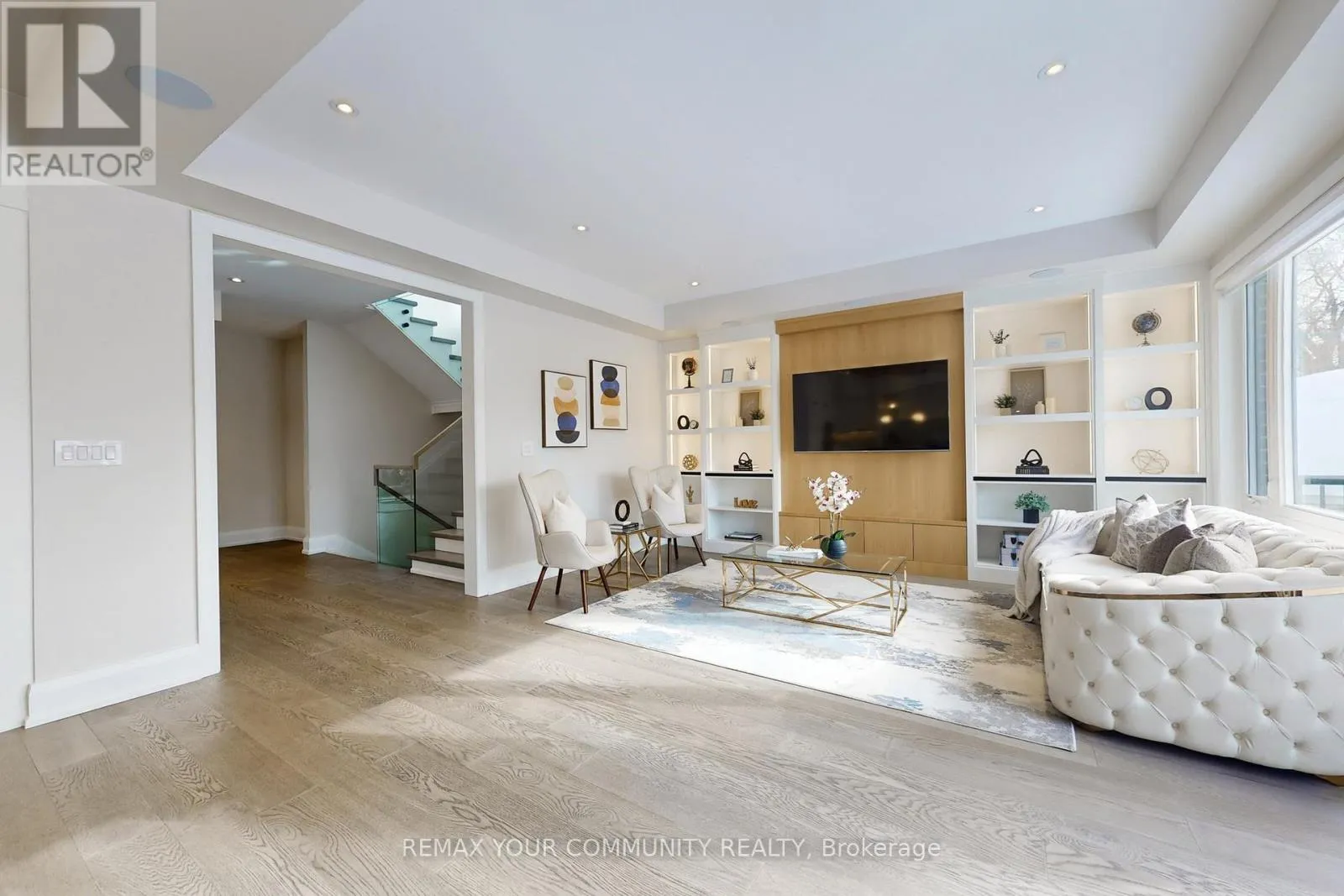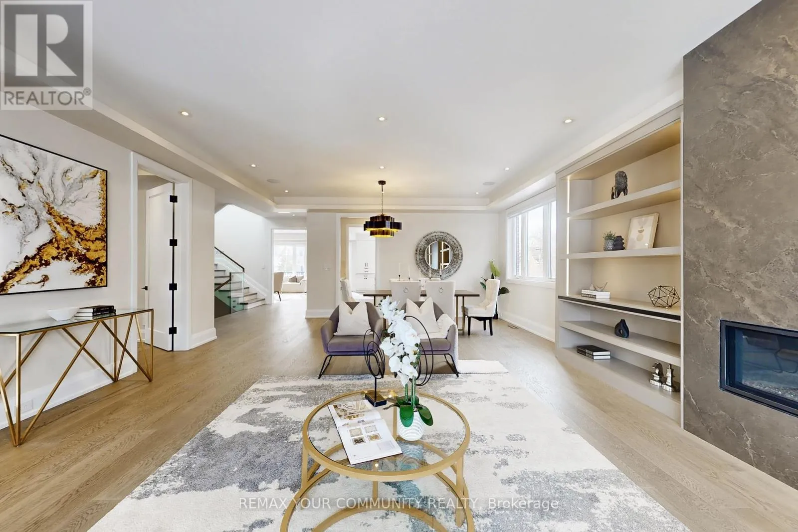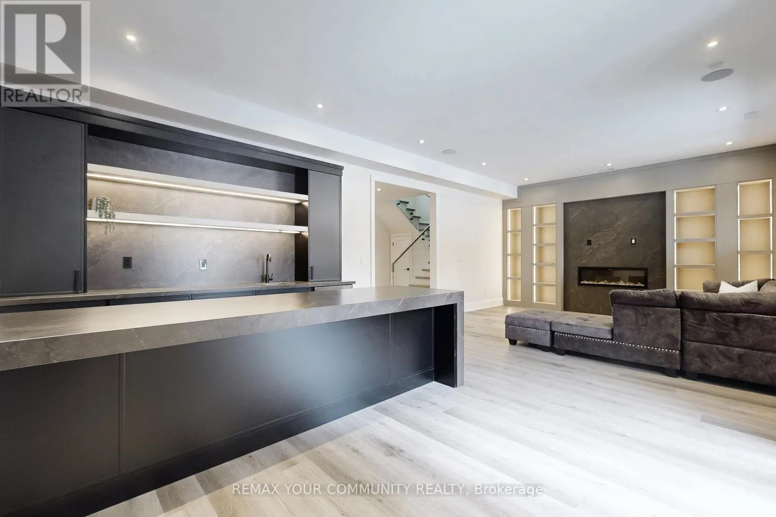 Bathurst St/Lawrence Ave W A truly exceptional custom-built residence in the heart of prestigious Clanton Park-where design, craftsmanship, and modern luxury come together seamlessly. This stunning architectural home offers 4+2 bedrooms and an office, showcasing meticulous attention to detail and upscale finishes throughout. The main level features a sophisticated open-concept layout anchored by a designer chef's kitchen with an oversized waterfall island, premium appliances, and a fully equipped second kitchen on the main floor-perfect for entertaining, catering, or everyday convenience. The grand family room and elegant living space are enhanced by a statement gas fireplace with porcelain slab surround and custom LED-1lit shelving, creating a warm yet refined atmosphere. Expansive windows flood the home with natural light, elevating every space. Upstairs, retreat to luxurious ensuite bedrooms, each thoughtfully designed to provide comfort, privacy, and a boutique hotel experience. The professionally finished lower level offers incredible versatility with 2 additional bedrooms, a spacious recreation area, walk-up access to the backyard, and direct garage entry-ideal for extended family living or potential income. Step outside to a private, south-facing, bathed in sunlight-perfect for relaxing, entertaining, or future outdoor enhancements.Double private drive + built-in garage (parkingfor 6) Bright, sun-filled interiors with oversized windows. situated in desirable Clanton Park, this home is surrounded by top-rated schools, parks, and everyday conveniences. Close to excellent schools such as Faywood Arts-Based Curriculum School, Wilmington Elementary School, and William Lyon Mackenzie Collegiate Institute, making it an ideal choice for families. Enjoy easy access to Yorkdale Shopping Centre, major highways, public transit, and beautiful green spaces like Earl Bales Park-offering. Experience elevated living-this is not just a home, it's a statement. (id:27476)
