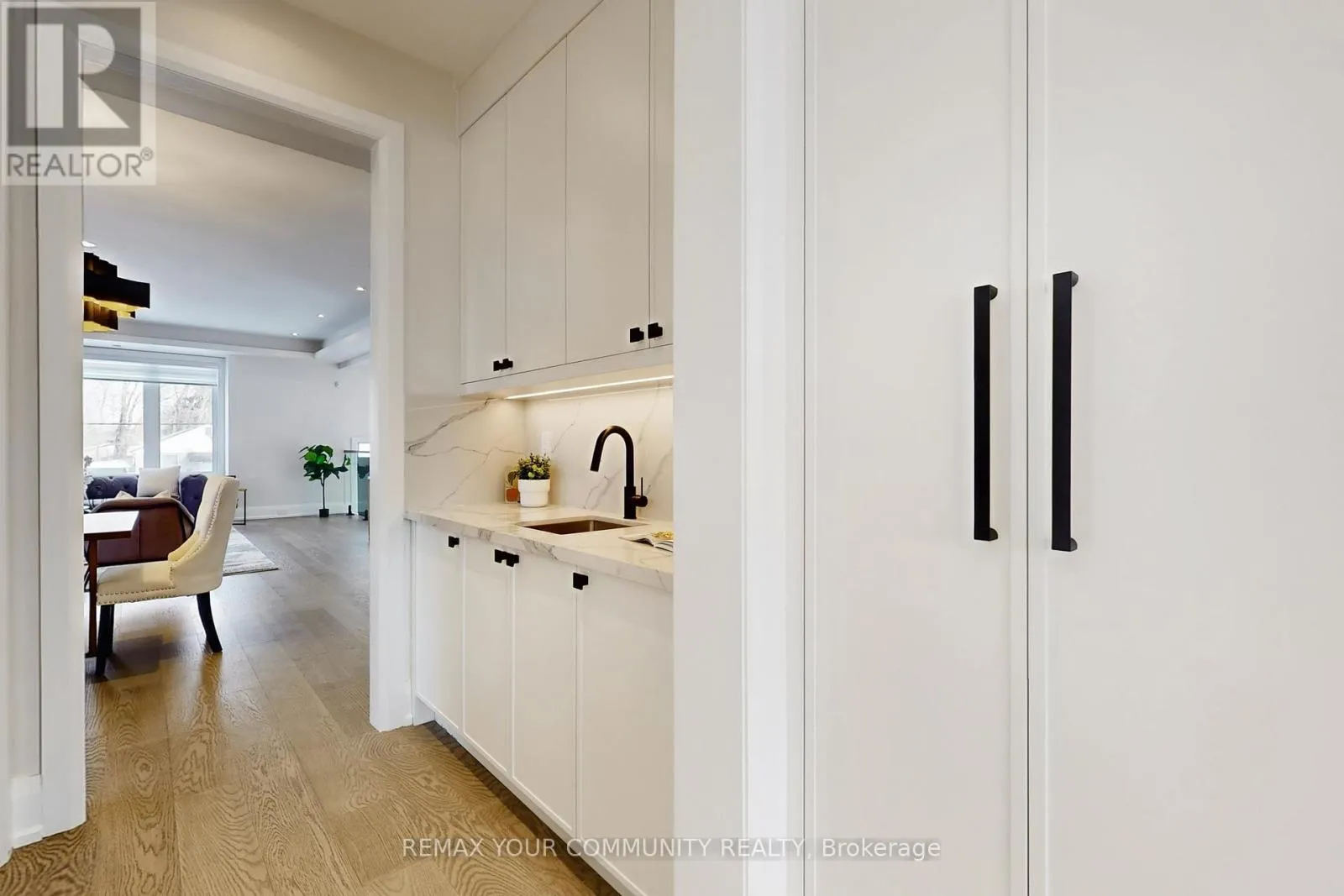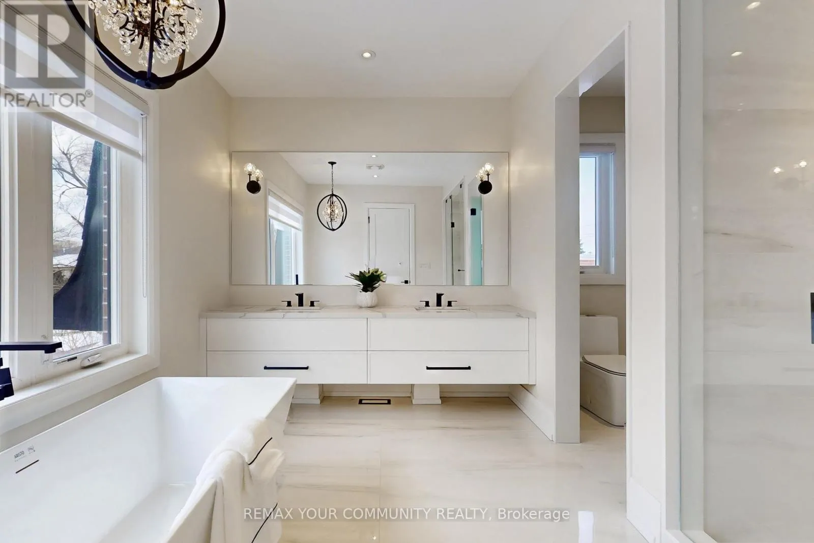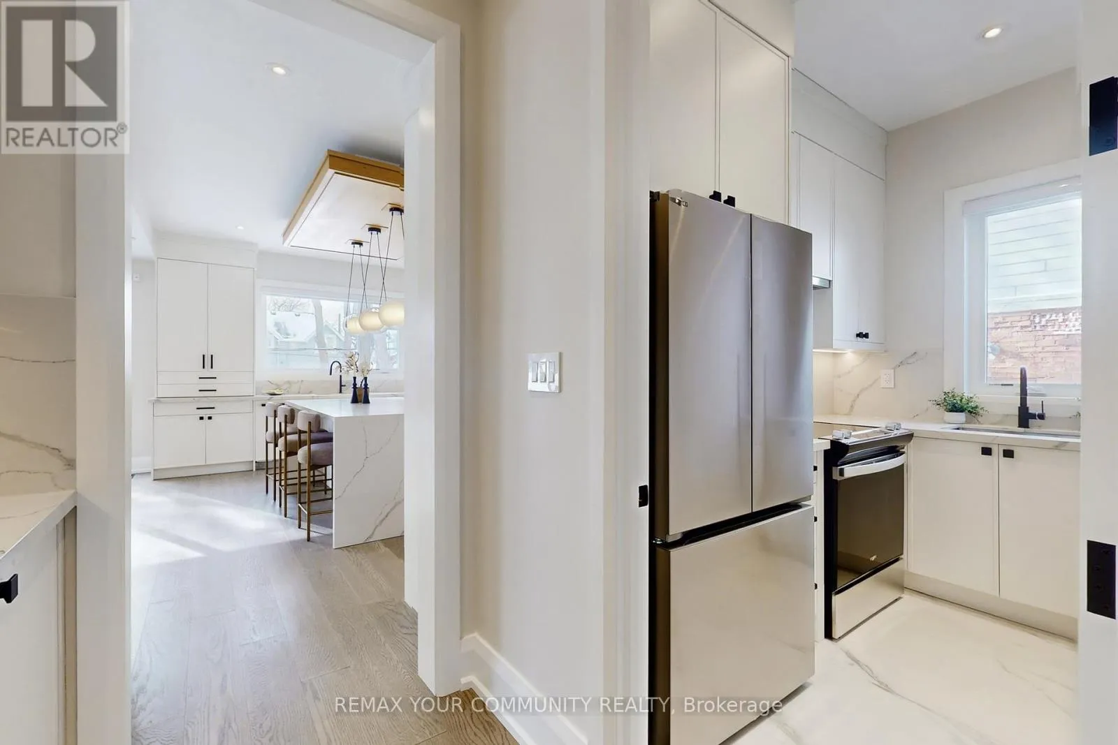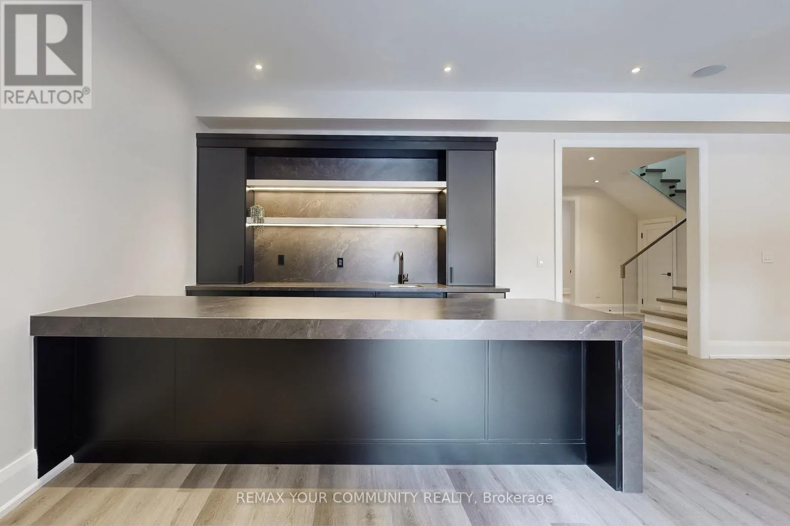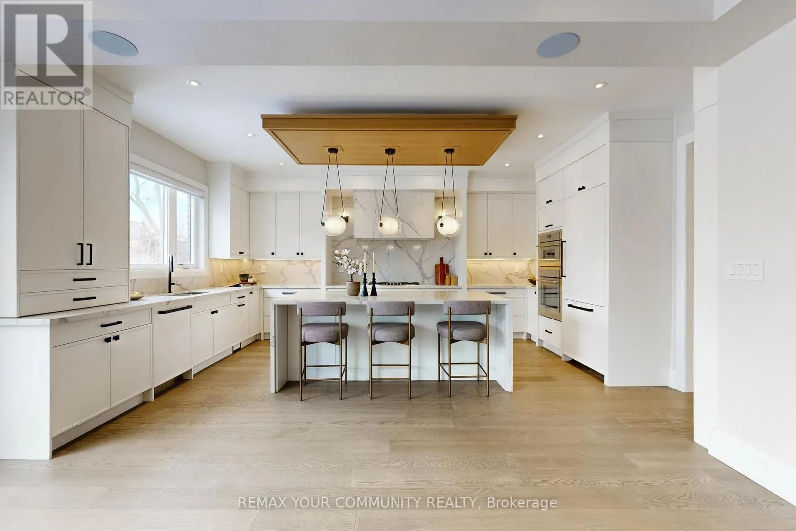 Bathurst St/Lawrence Ave W A truly exceptional custom-built residence in the heart of prestigious Clanton Park-where design, craftsmanship, and modern luxury come together seamlessly. This stunning architectural home offers 4+2 bedrooms and an office, showcasing meticulous attention to detail and upscale finishes throughout. The main level features a sophisticated open-concept layout anchored by a designer chef's kitchen with an oversized waterfall island, premium appliances, and a fully equipped second kitchen on the main floor-perfect for entertaining, catering, or everyday convenience. The grand family room and elegant living space are enhanced by a statement gas fireplace with porcelain slab surround and custom LED-1lit shelving, creating a warm yet refined atmosphere. Expansive windows flood the home with natural light, elevating every space. Upstairs, retreat to luxurious ensuite bedrooms, each thoughtfully designed to provide comfort, privacy, and a boutique hotel experience. The professionally finished lower level offers incredible versatility with 2 additional bedrooms, a spacious recreation area, walk-up access to the backyard, and direct garage entry-ideal for extended family living or potential income. Step outside to a private, south-facing, bathed in sunlight-perfect for relaxing, entertaining, or future outdoor enhancements.Double private drive + built-in garage (parkingfor 6) Bright, sun-filled interiors with oversized windows. situated in desirable Clanton Park, this home is surrounded by top-rated schools, parks, and everyday conveniences. Close to excellent schools such as Faywood Arts-Based Curriculum School, Wilmington Elementary School, and William Lyon Mackenzie Collegiate Institute, making it an ideal choice for families. Enjoy easy access to Yorkdale Shopping Centre, major highways, public transit, and beautiful green spaces like Earl Bales Park-offering. Experience elevated living-this is not just a home, it's a statement. (id:27476)