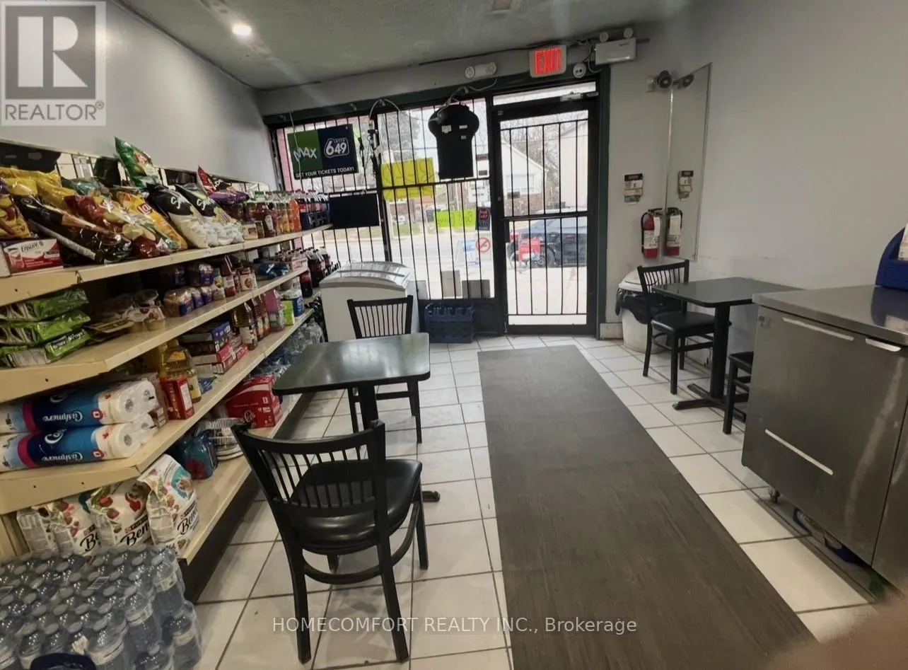 Cross Streets: St Clair/Victoria Pk. ** Directions: on Dawes road. Fully Equipped Restaurant & Convenience Store - Excellent OpportunityTurnkey restaurant and convenience store combined in one high-potential location, surrounded by dense residential buildings. Ideal for expanding food offerings and growing revenue.Key Features:Fully equipped, ready-to-operate restaurant + convenience storeStrong residential foot traffic with excellent growth potential.Very Low monthly rent: $2,800 (includes main floor business + second floor)Second floor includes a newly renovated 2-bedroom apartment (approx. $1,800 market rental value)Current sales: approx. $7,000/week, Lotto income $1600/ month, Additional ATM income: $800/month. Great opportunity to increase food service and boost revenueDon't miss this opportunity - must see! (id:27476)