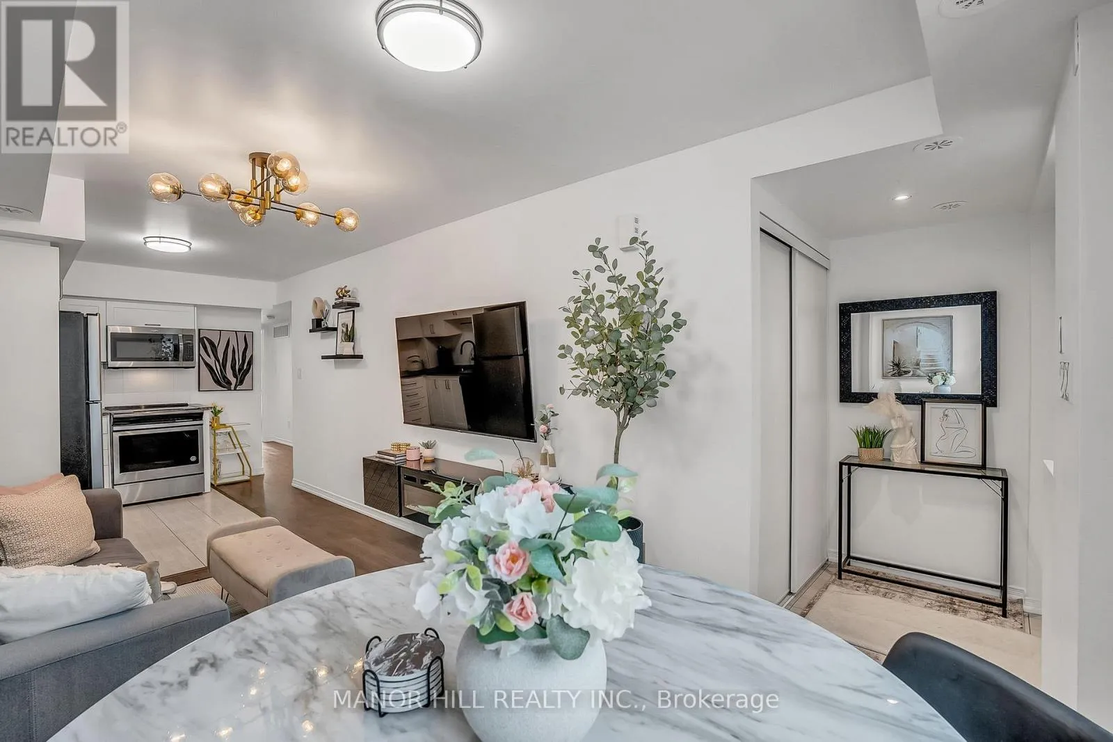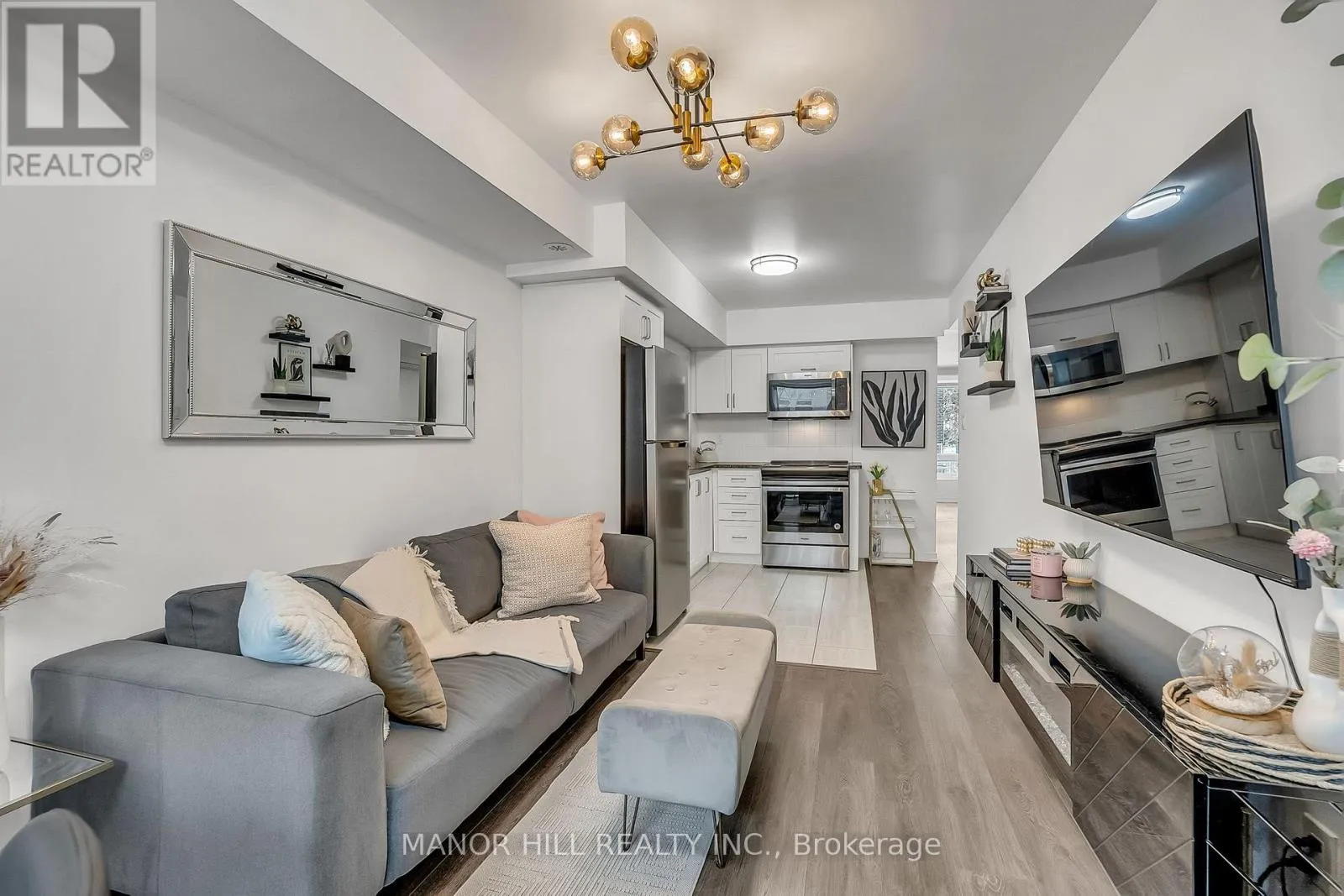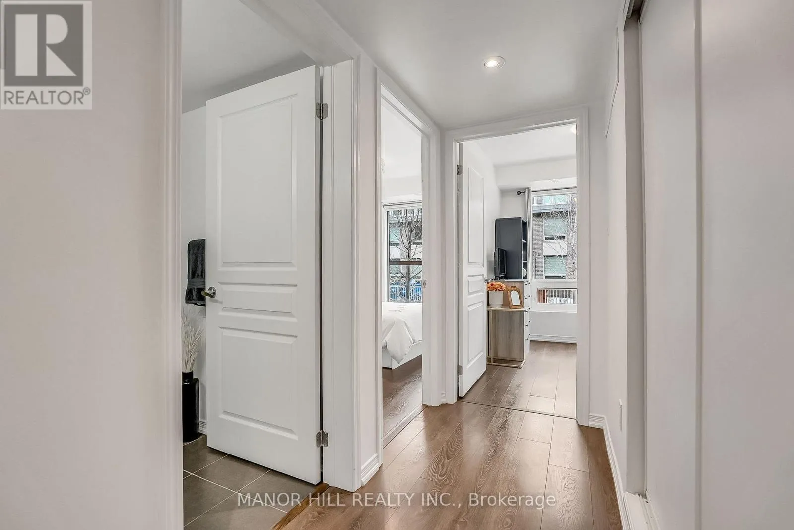 Cross Streets: Burnhamthorpe/427. ** Directions: GPS. Welcome home to this bright and airy above grade 2 bedroom 1 bathroom stacked townhouse. Open concept living space with functional kitchen. Well appointed with white cabinets, granite counters and stainless steel appliances makes this a dream kitchen to cook in. Living room features an electric fireplace with functional wall storage to maximize space. Functional sized bedrooms with ample closet space. Private balcony Low maintenance fees and courtyard outside your front door with underground and parking make this a perfect blend between living in a condo and house. conveniently located close to 427/401/Pearson and TTC (id:27476)