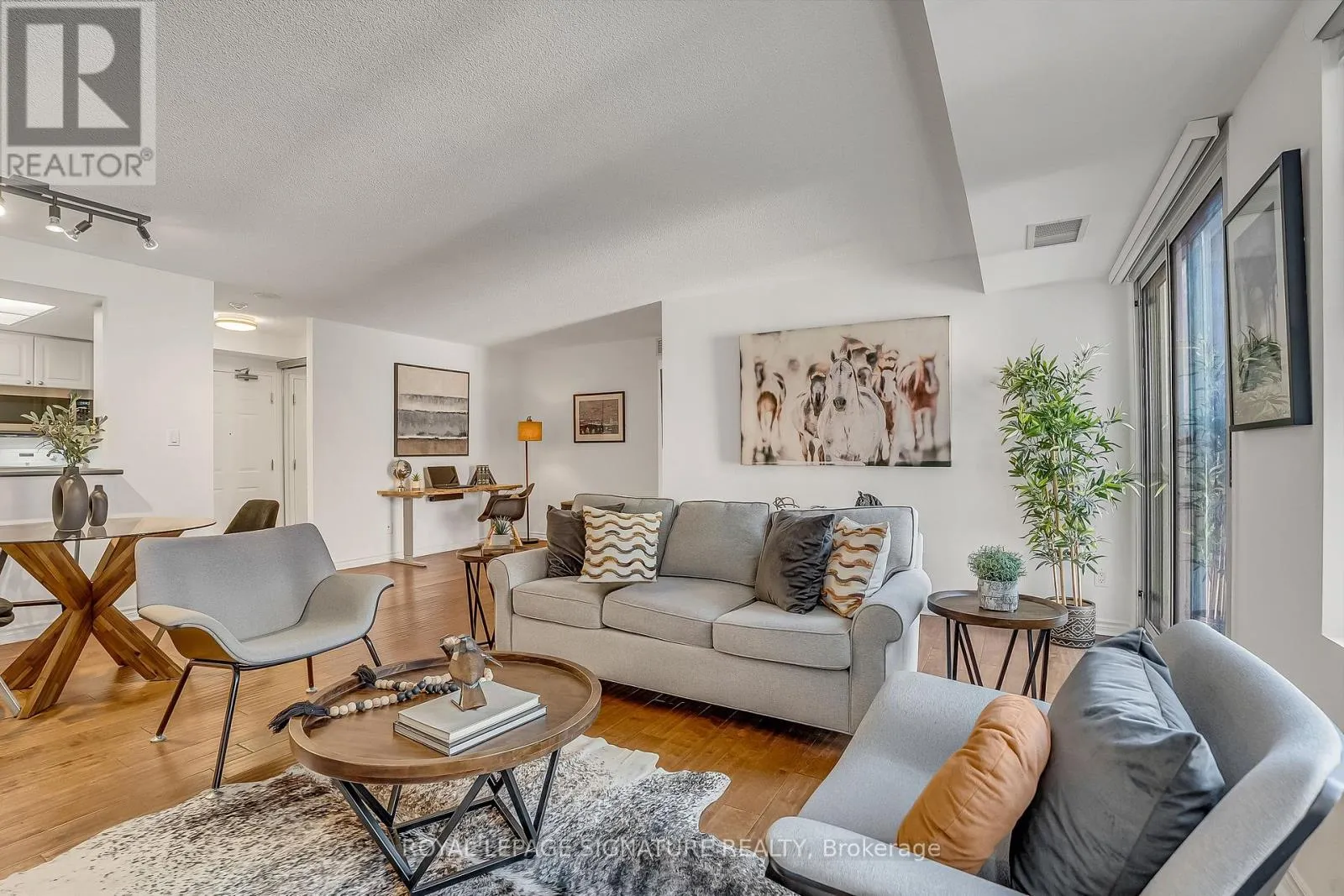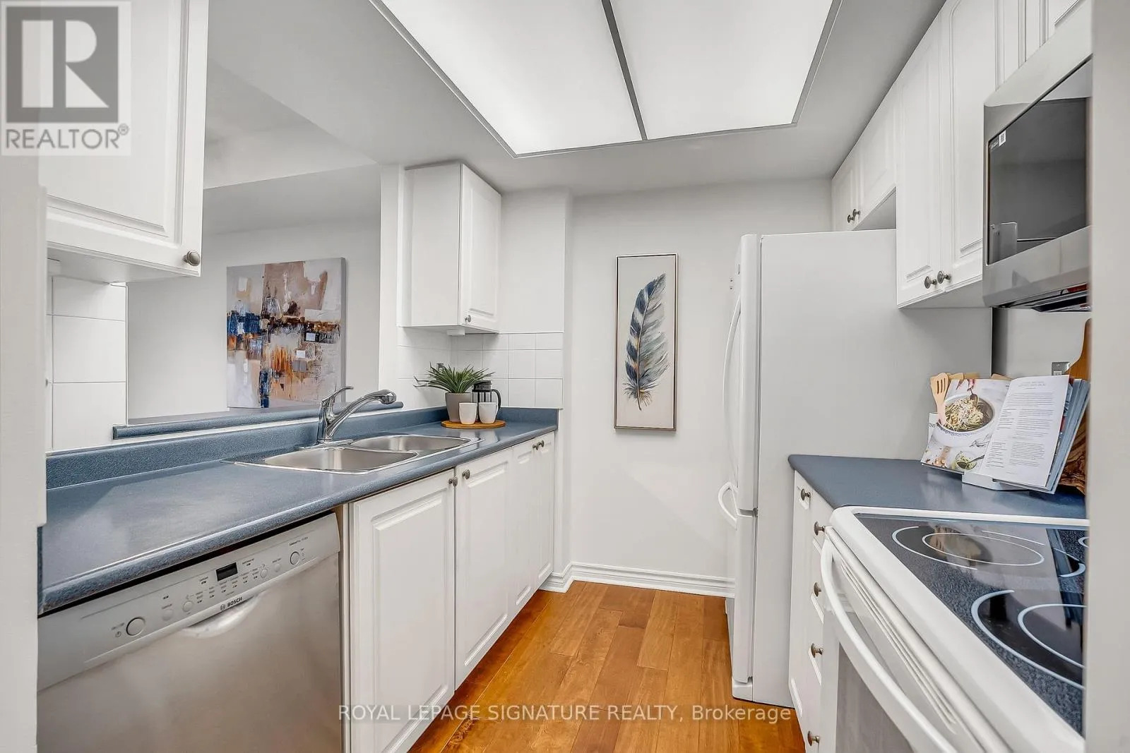 Cross Streets: Wynford and Eglinton. ** Directions: Wynford & Eglinton. Spacious and beautifully designed oversized 1-bedroom suite offering an exceptional floor plan with a versatile open-concept office - perfect for working from home. Engineered hardwood flooring adds warmth and style, while the charming Juliette balcony overlooks a peaceful courtyard setting. Enjoy the convenience of a generously sized laundry room with extra room for storage, plus separate locker and underground parking. Outstanding value with major mechanical components - including the hot water tank and heat pumps - owned and maintained by the condo corporation, meaning no cost to owners for repair or replacement. Suites are individually metered for hydro efficiency so you only pay for what you use, and an ensuite alarm system is wired directly to 24-hour security for added peace of mind. This well-managed building offers truly resort-style amenities including an indoor saltwater pool, whirlpool, fully equipped fitness centre, billiard and card rooms, workshop, guest suite, elegant party room with full kitchen, wet bar, dance floor, gas fireplace and terrace, plus a beautiful library, tennis court, car wash bay, fenced dog run, garden plots and potting room. On-site superintendent, property manager and 24-hour uniformed concierge/security ensure comfort and convenience, while an active social committee hosts cultural events, dinners, BBQs, fitness classes, book club and movie nights. Ideally located within walking distance to groceries, coffee shops, the Aga Khan Museum and CF Shops at Don Mills, with easy access to TTC, the LRT, future access to the Ontario Line to downtown, DVP and Highway 401, plus nearby hiking and biking trails. (id:27476)