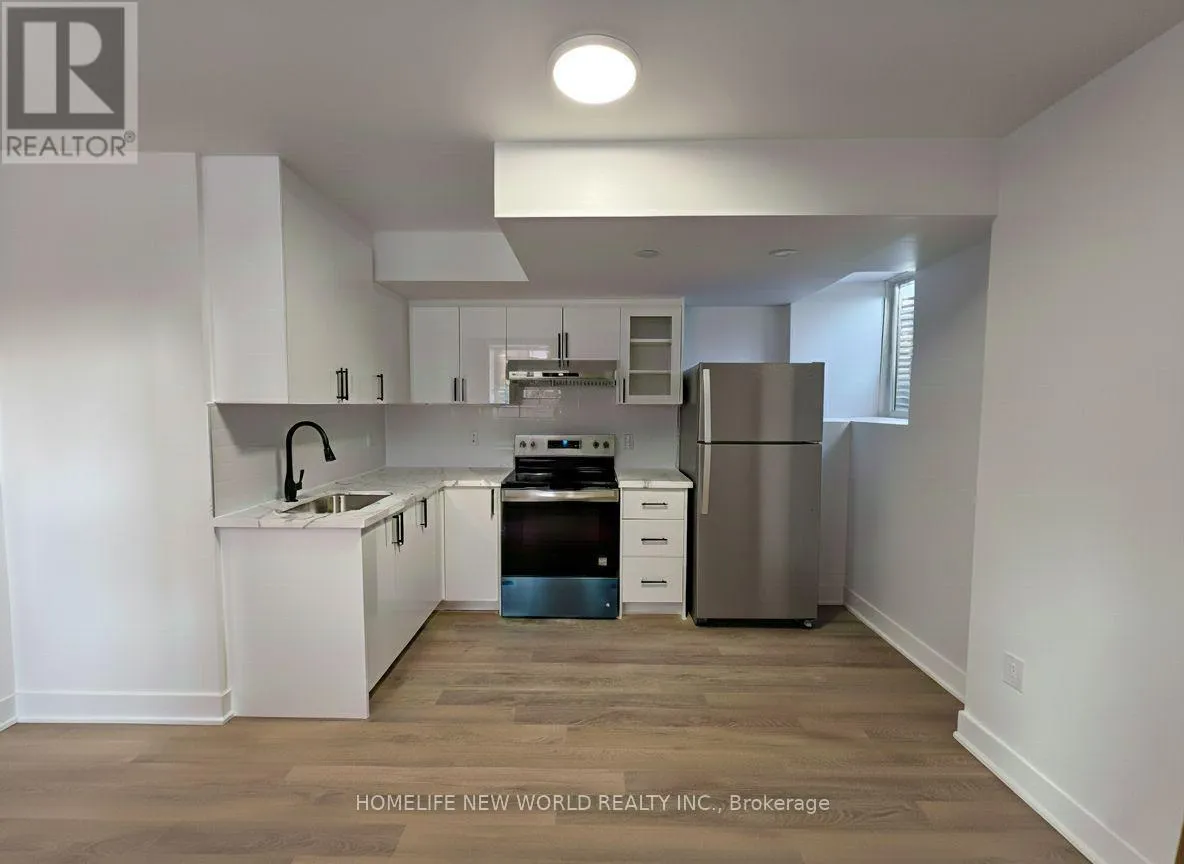 Keele/Wilson/Downsview Park BRAND NEW, never lived in basement unit available for immediate lease. Corner townhouse unit with own private entrance! Includes 1x bedroom with closet, storage space and large window. 4x piece bathroom with shower/bathtub. Brand new kitchen with beautiful sink, countertop, drawers and cabinets. Smooth laminate flooring. New appliances include fridge, stove/oven and range hood! Tenant will have own in-suite laundry with full-sized washer and dryer, and large windows were recently added to provide for additional natural light! Utilities include hydro, heat, water. Convenient location near Metro supermarket, Costco, Hwy 401/TTC (bus/subway station), Yorkdale mall and multiple green space parks. The unit is clean, bright, in excellent condition, and ready for you to move in! 1 Street Parking included ($23+tax per month with city permit). (id:27476)