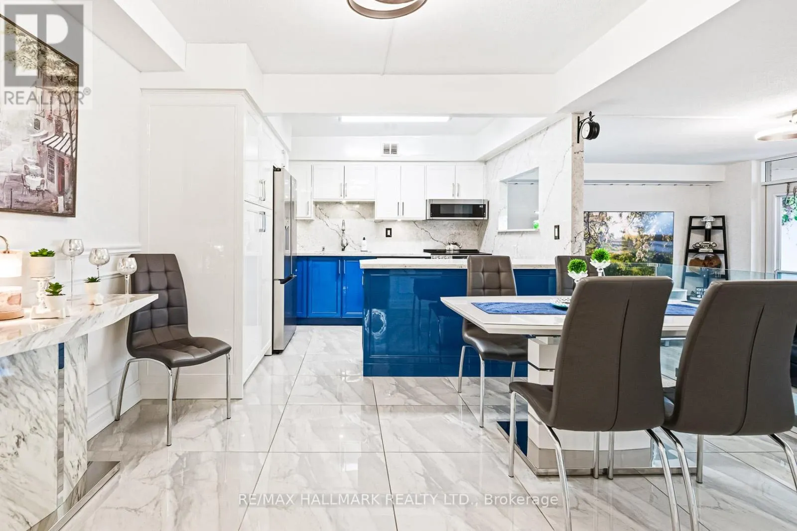 York Mills & Victoria Park Welcome to this stunning oversized 2-bedroom condo, offering a perfect blend of luxury, style, and breathtaking views. This beautifully renovated suite showcases a massive private balcony with unobstructed city skyline vistas - ideal for relaxing or entertaining. Inside, no detail has been overlooked. The unit has been completely transformed from top to bottom, featuring elegant 24"x24" floor tiles and a thoughtfully designed dining room extension accented by a sleep tempered glass railing. The modern kitchen is a showpiece, complete with a centre island, quartz countertops and backsplash, and top-of-the-line appliances.Refined finished continue throughout with custom wainscoting, designer luxury wallpaper, and a spa-inspired bathroom boasting a glass shower with striking gold accents and large-format tiles.This is a rare opportunity to own a truly turnkey, upscale condo with exceptional space, premium upgrades, and unbeatable views. Renos'24, appliances'25 (id:27476)
