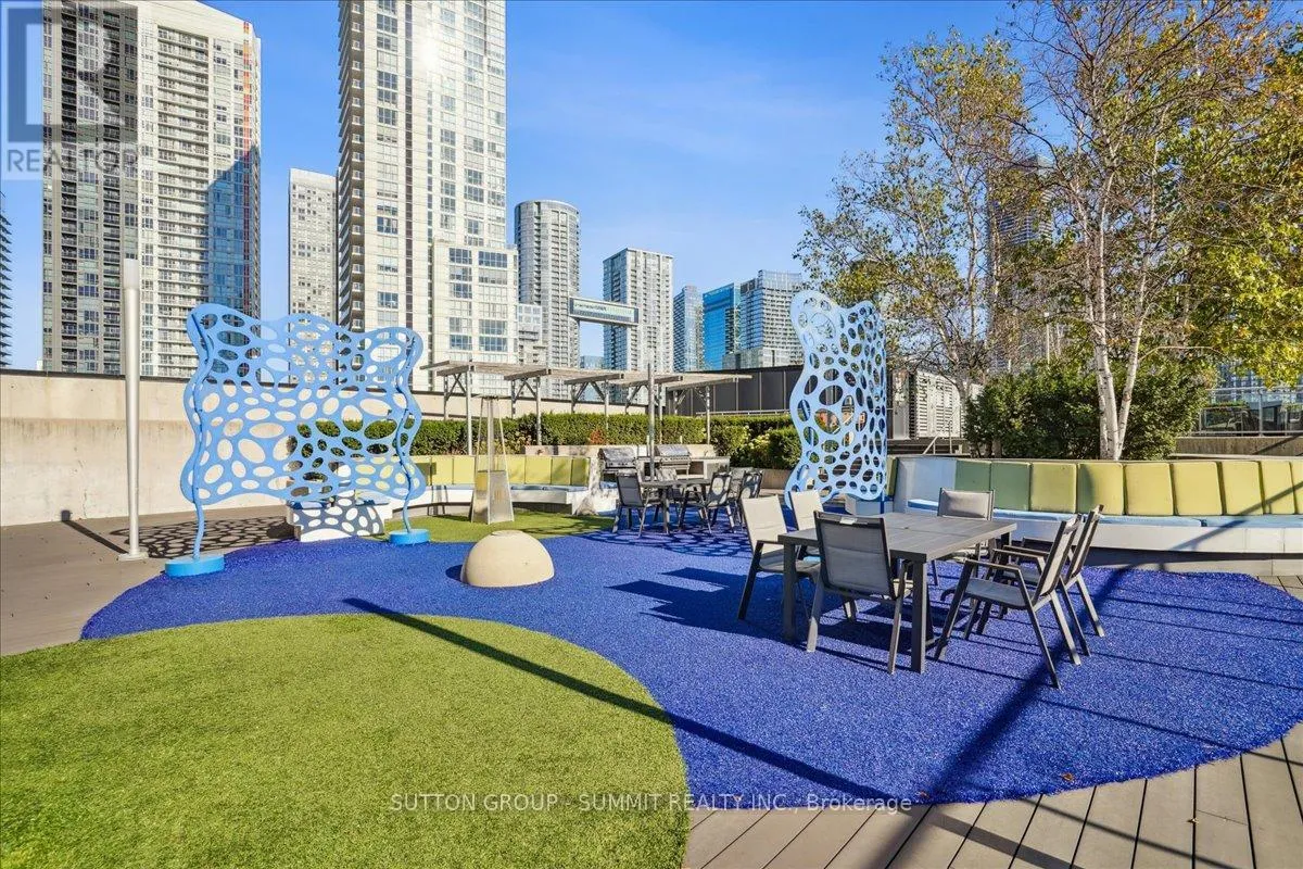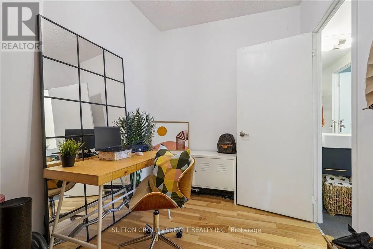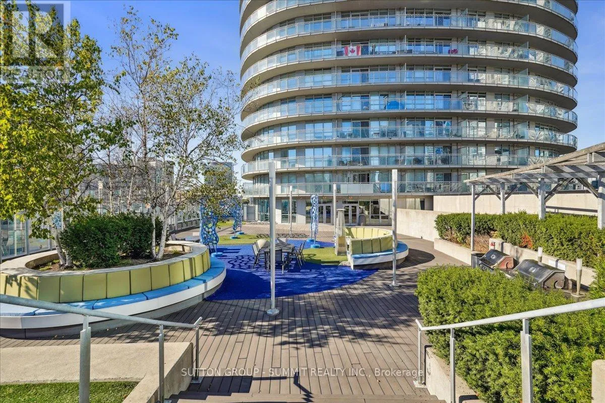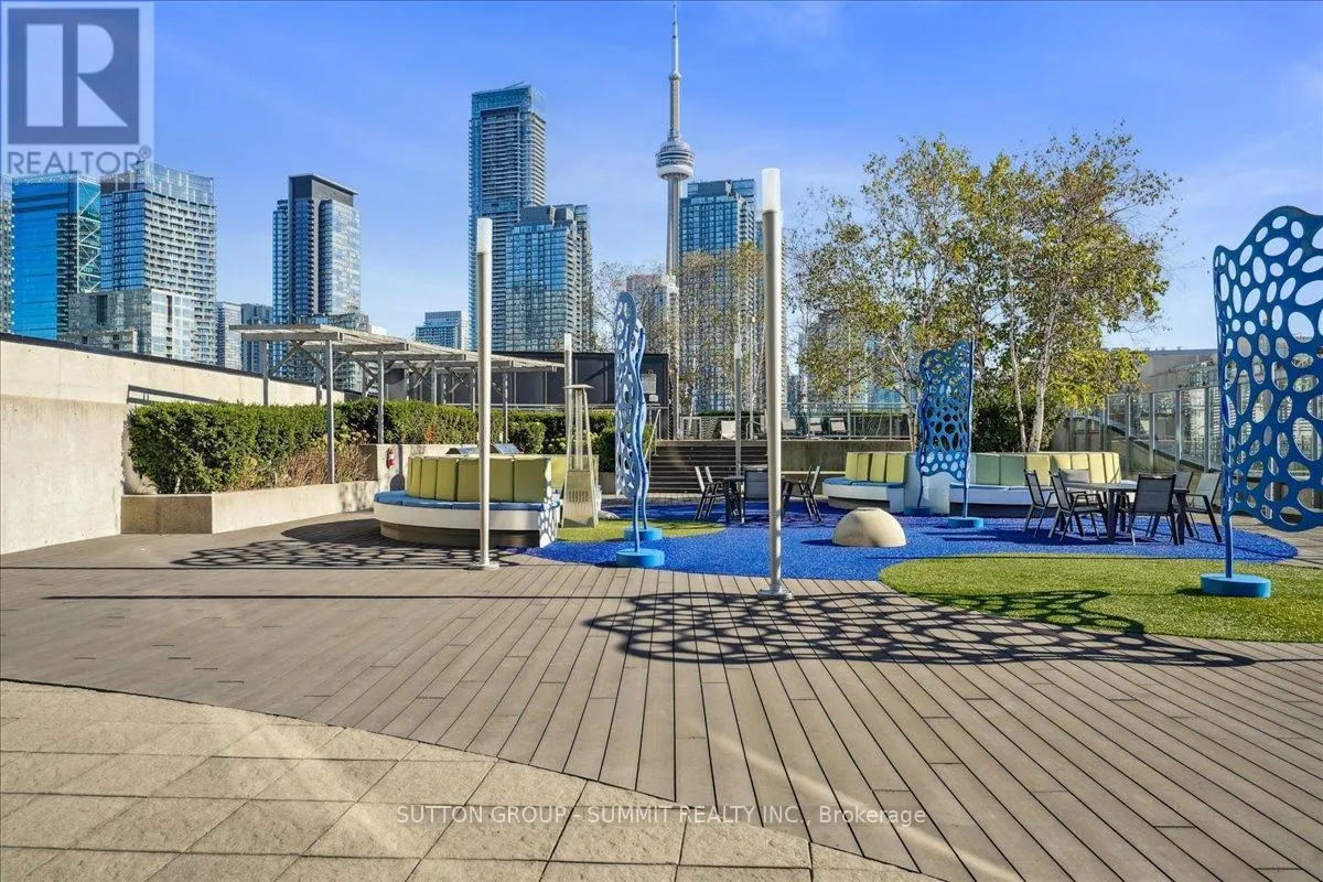 Cross Streets: Lake Shore Rd W/Bathurst. ** Directions: Lake Shore Rd W/Dan Leckie Way - Enter off Housey St. It's rare to find such a well maintained, upgraded One Bedroom Condo Apartment with Owned Parking + Locker that also has an actual separated Den and lower than average condo fees. With over 680 sq ft of living space, this bright + open concept, south-facing unit has been tastefully upgraded and maintained. The Open Concept, designer Italian Kitchen with upgraded quartz counters (2021) + black granite sink (2021) flows seamlessly into the bright Living Room making entertaining a breeze. A private Balcony off the Living Room allows for easy outdoor enjoyment. Building amenities include the eighth floor luxury outdoor terrace with roof top patio, alfresco bar, hot-tub, BBQ pit, fireplace + showers. Additional amenities include a large gym, guest suites, saunas, party room, boardroom + theatre. No Airbnb or short term rentals building. Pets allowed. Engineered hardwood throughout (2021), all-in-one washer-dryer (2022), Bosch dishwasher (2025). Located near Bathurst and Lakeshore, city amenities are easily accessible - Billy Bishop Airport, Groceries across the street, TTC at your doorstep, Entertainment District, Fort York, Financial District, Exhibition Place, BMO Field, Rogers Centre all nearby. (id:27476)