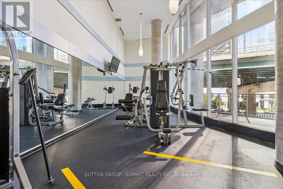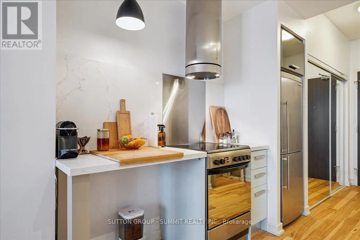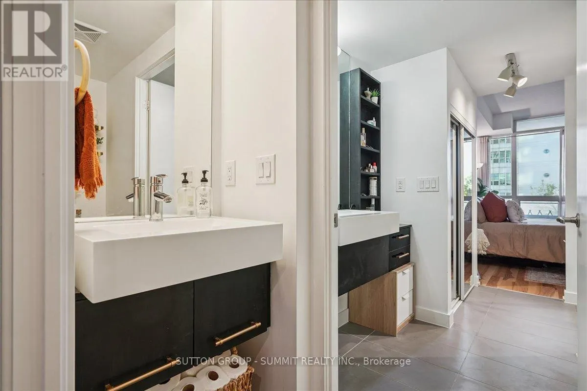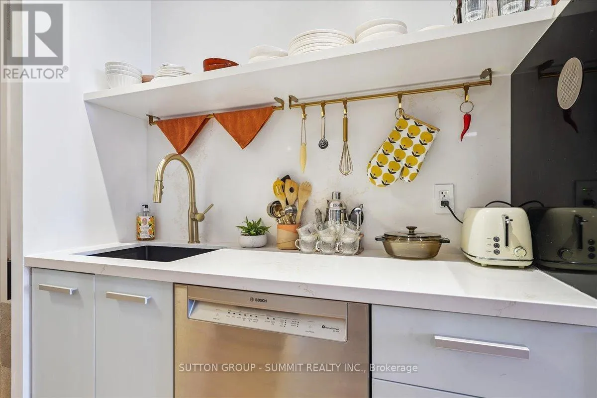 Cross Streets: Lake Shore Rd W/Bathurst. ** Directions: Lake Shore Rd W/Dan Leckie Way - Enter off Housey St. It's rare to find such a well maintained, upgraded One Bedroom Condo Apartment with Owned Parking + Locker that also has an actual separated Den and lower than average condo fees. With over 680 sq ft of living space, this bright + open concept, south-facing unit has been tastefully upgraded and maintained. The Open Concept, designer Italian Kitchen with upgraded quartz counters (2021) + black granite sink (2021) flows seamlessly into the bright Living Room making entertaining a breeze. A private Balcony off the Living Room allows for easy outdoor enjoyment. Building amenities include the eighth floor luxury outdoor terrace with roof top patio, alfresco bar, hot-tub, BBQ pit, fireplace + showers. Additional amenities include a large gym, guest suites, saunas, party room, boardroom + theatre. No Airbnb or short term rentals building. Pets allowed. Engineered hardwood throughout (2021), all-in-one washer-dryer (2022), Bosch dishwasher (2025). Located near Bathurst and Lakeshore, city amenities are easily accessible - Billy Bishop Airport, Groceries across the street, TTC at your doorstep, Entertainment District, Fort York, Financial District, Exhibition Place, BMO Field, Rogers Centre all nearby. (id:27476)