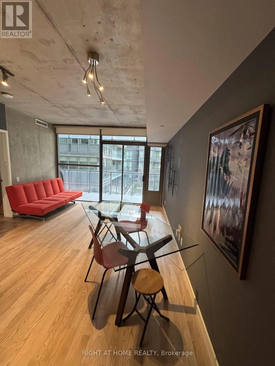 Cross Streets: King St/Spadina. ** Directions: King St W to Spadina, north to Oxley. Welcome To Trendy King St. West, One Of Toronto's Most Desirable Locations. This Fully Furnished Luxury 1 Bedroom Condo Suite Features A very Functional Layout With 520 Sf Of Living Space Plus A Large 155 Sf Balcony. 9 Foot Exposed Concrete Ceilings, Floor-To-Ceiling Windows. Engineered Hardwood Floors Throughout, S/S Appliances, Gas Cooking, Gas Bbq On balcony. Deep Soaker Tub With Glass Shower Enclosure, Professionally Installed Closet Organizers, Window Solar Blinds. Walk To Entertainment, Fashion & Financial District, Restaurant Row. Public Transit At Your Door. 1 Parking Spot Included. (id:27476)