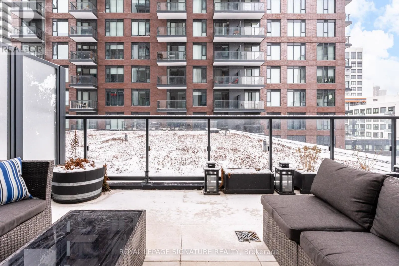 Cross Streets: Dundas St. E. & River St. ** Directions: Located on the northwest corner of Dundas St E & River St. Welcome to #507 at Artworks Tower! One-bedroom condo with one of only a handful of oversized private terraces in the building. A well-regarded Daniels-built residence, located in revitalized Regent Park. 541 square feet of thoughtfully laid-out living space. West-facing, with walk-out to huge terrace (large enough to entertain, dine outdoors, or simply relax in the open air). Open-concept living, dining, kitchen w/ stainless steel appliances, & quartz countertops. Storage locker included. BUILDING AMENITIES: Gym/fitness room with cardio equipment, free weights, separate yoga/fitness studio, and outdoor workout area. Co-working room. Gardening room. Party room. Dining room. Caterer's kitchen. Arcade room with pinball, classic arcade games, ping-pong, billiards, and basketball - all free to use! Kids' room with play structure and giant Lite-Brite. Outdoor terrace with BBQs and kids' play structure. Bike storage. Visitor parking. 24-hour concierge. GREAT LOCATION: Steps to the Regent Park Aquatic Centre, Regent Park, and the neighbourhood's active green spaces. Dundas streetcar right at your door for easy downtown access. Close the DVP & Gardiner. Short walk to Corktown, Cabbagetown, Leslieville, and some of Toronto's best cafes, restaurants, and shops. Easy access to everything the city has to offer. (id:27476)