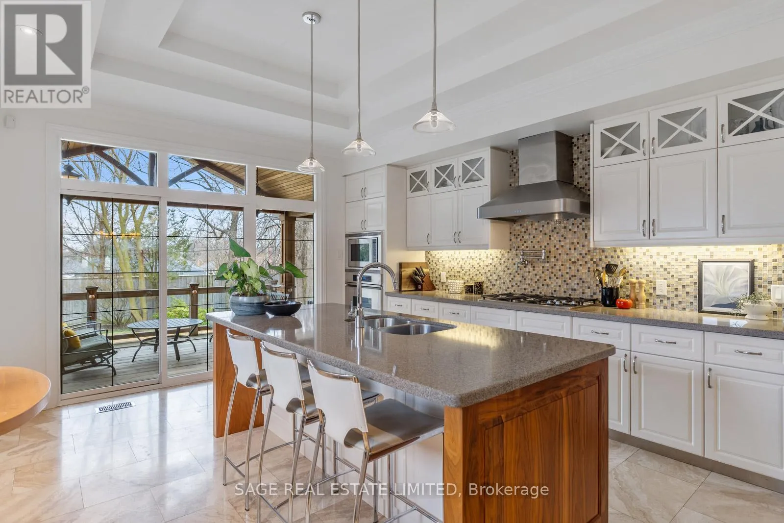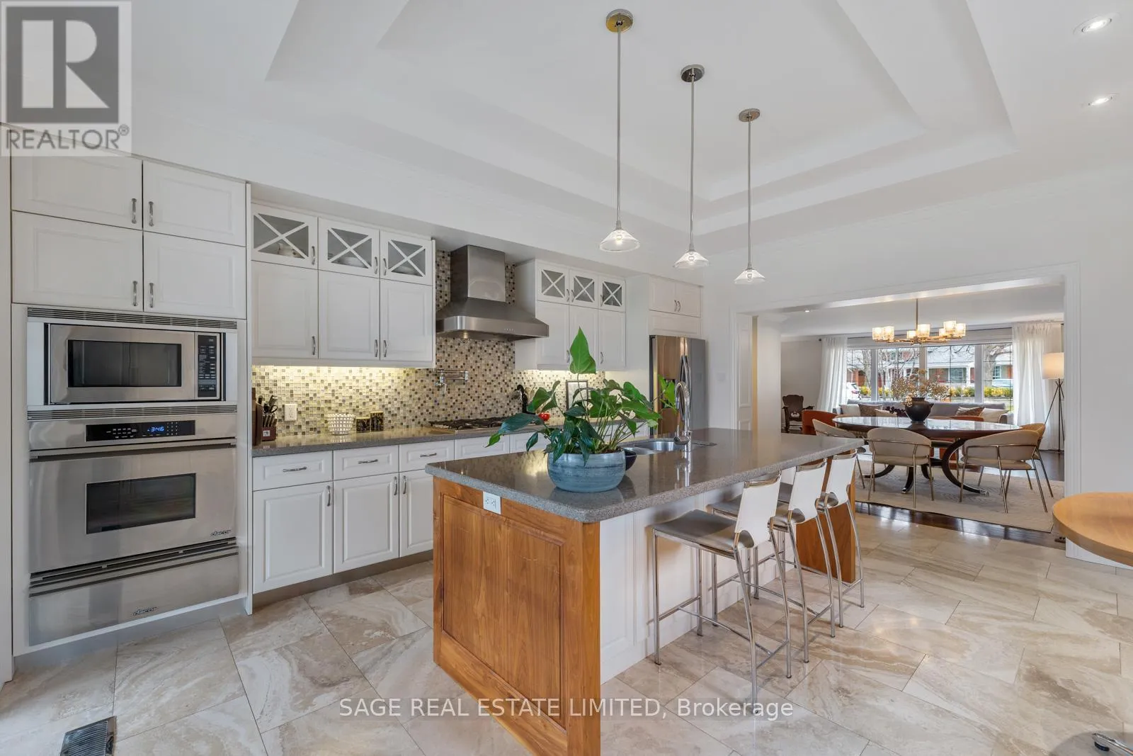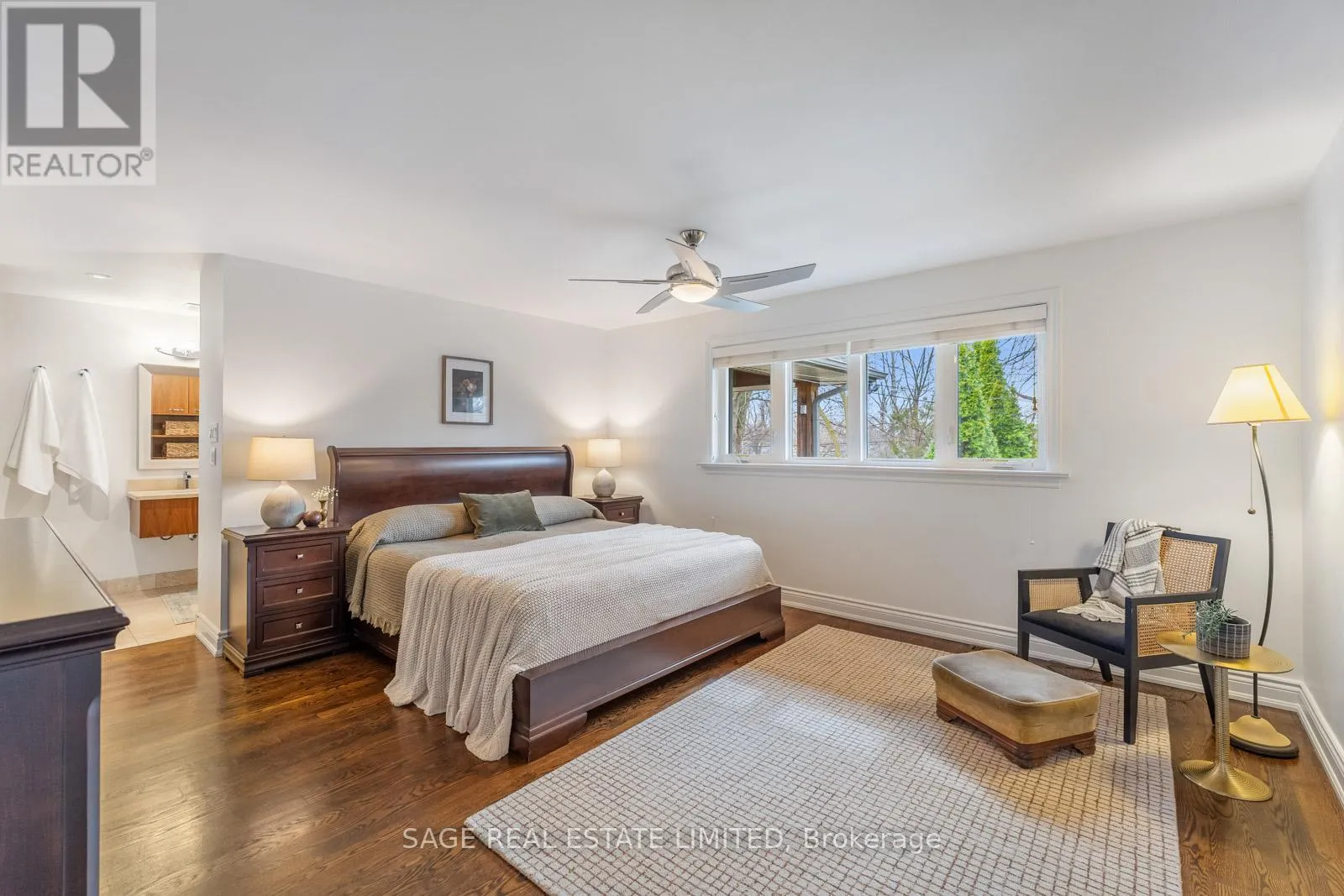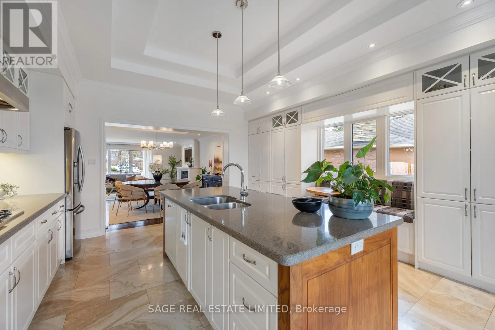 Cross Streets: Princess Margaret/Kipling. ** Directions: Google/Waze 31 Ashwood Crescent. A private retreat in the heart of the city-where Muskoka-inspired living meets everyday Toronto convenience. 31 Ashwood Crescent is a highly desired detached bungalow with 3+1 bedrooms, 3-bathrooms , ideally situated in the exceptional community known as "The Manor." Professionally designed, beautifully updated, and meticulously maintained, this 4400+ square foot home sits on a generous pie-shaped lot, offering an impressive sense of space both indoors and out. The backyard is a true sanctuary, complete with a large covered deck, outdoor fireplace, hot tub, towering 8-foot fence, and a large shed, a space perfect for relaxing evenings or effortless entertaining. Inside, the stunning kitchen is both refined and functional, featuring stainless steel appliances, a gas stove, travertine flooring, tons of built-in storage, a well-appointed breakfast bar, and elegant high ceilings. It flows seamlessly into bright, inviting living and dining areas, highlighted by a stylish hosting bar and a striking gas fireplace that anchors the space. The primary suite is a serene escape, offering a large walk-in closet and a luxurious five-piece ensuite with a deep soaker tub and walk-in rain shower. Completing the main level are two more large bedrooms and a well-appointed 4-piece bathroom. The lower level adds incredible versatility, featuring a private office ideal for working or hosting clients from home, a huge family room, and an additional bedroom for guests or extended family. A large, bright laundry room with multiple sinks, cold storage room, and a dedicated home gym complete this expansive lower level. With a rare two-car heated garage/workshop with storage, parking for up to six vehicles, and the added peace of mind of a Generac generator, this home delivers both comfort and practicality in one of the area's most sought-after communities. A refined blend of elegance, lifestyle, and space-this is Muskoka living in the city. Some outdoors photos altered using AI. (id:27476)
