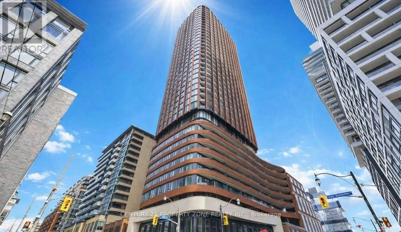 Cross Streets: Front St & Sherbourne St. ** Directions: Front St & Sherbourne St. Experience elevated urban living in this brand new 1-bedroom plus den, 2-bathroom condo locatedat the prestigious intersection of Front Street and Shelborne in Toronto. Perched on the 41stfloor of a 43-storey tower, this stunning suite offers a spacious living area and a privatebalcony with breathtaking, unobstructed views of Lake Ontario. Thoughtfully designed, the unitfeatures laminate or luxury vinyl flooring throughout the main living spaces, complemented byporcelain tile in the bathrooms and laundry area. The modern kitchen is outfitted withbrand-name appliances, including a fridge, stove, dishwasher, and an in-suite stacked EnergyStar washer and dryer, along with custom two-tone cabinetry, quartz countertops, and a sleekporcelain slab backsplash. Energy-efficient, thermally insulated windows and asmartphone-enabled thermostat ensure year-round comfort, while the solid-core entry door withdesigner hardware and smart access adds an extra layer of sophistication and security.Residents enjoy access to premium amenities including a 24-hour concierge, fully equippedfitness centre, yoga studio, party room, co-working space, media theatre, kids' playroom, petspa, and a beautifully designed garden café-offering a perfect blend of luxury, comfort, andconvenience. (id:27476)