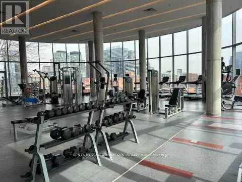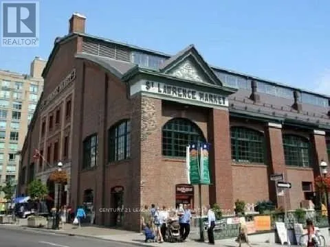 Jarvis/Front St. Experience elevated urban living at Market Wharf in this bright and spacious one-bedroom luxury condo. Featuring stunning south-facing lake views, this suite is filled with natural light through its floor-to-ceiling windows and showcases a rare two-storey high open balcony-perfect for relaxing or entertaining. Elegant wood flooring runs throughout, complementing the thoughtfully designed layout. Ideally located just steps from St. Lawrence Market, the Sony Centre, the lakefront, Union Station, and the Financial District, you'll enjoy unmatched convenience in the heart of the city. Residents benefit from exceptional building amenities, including a 24-hour concierge, all within a meticulously maintained residence. (id:27476)
